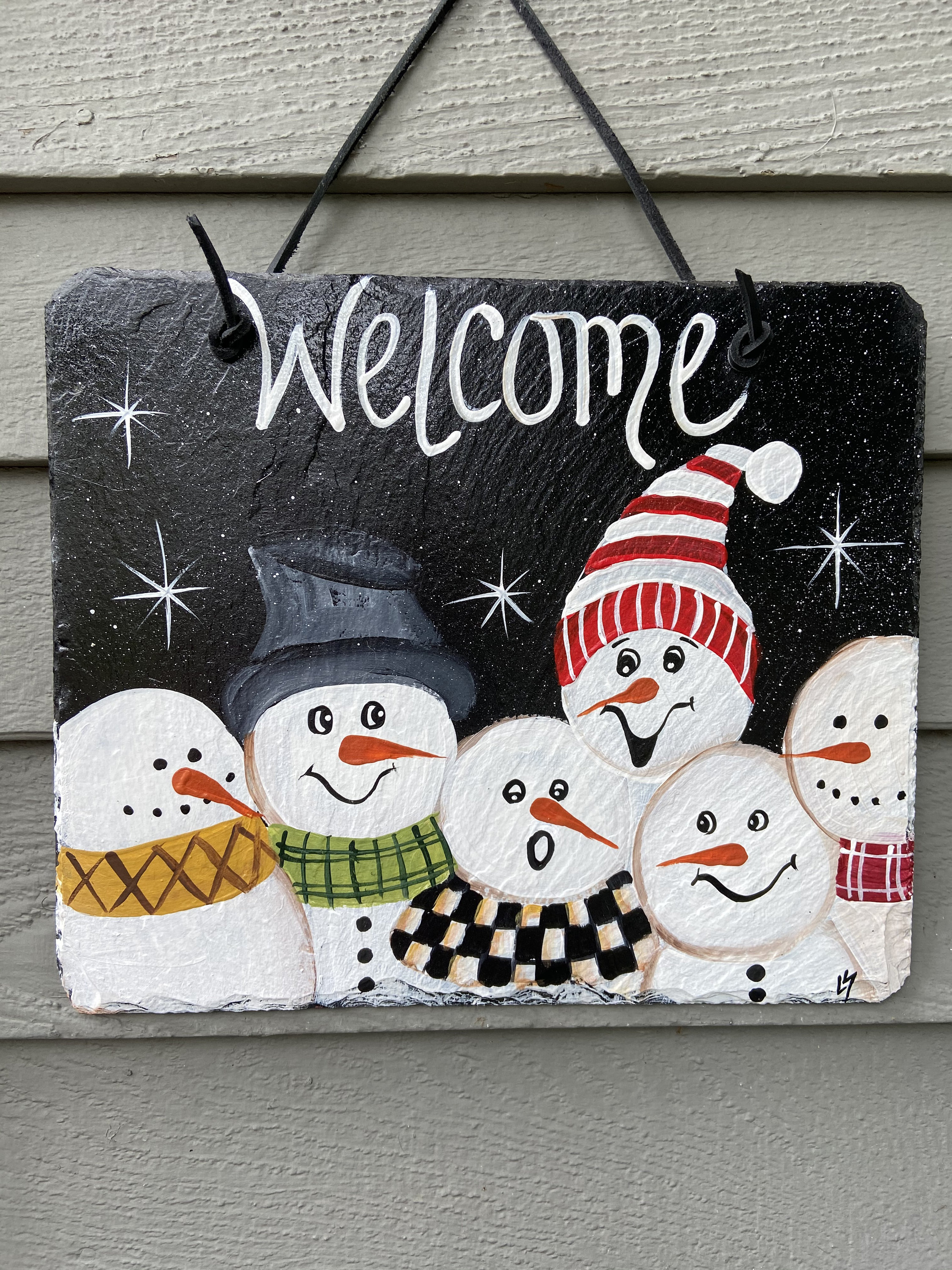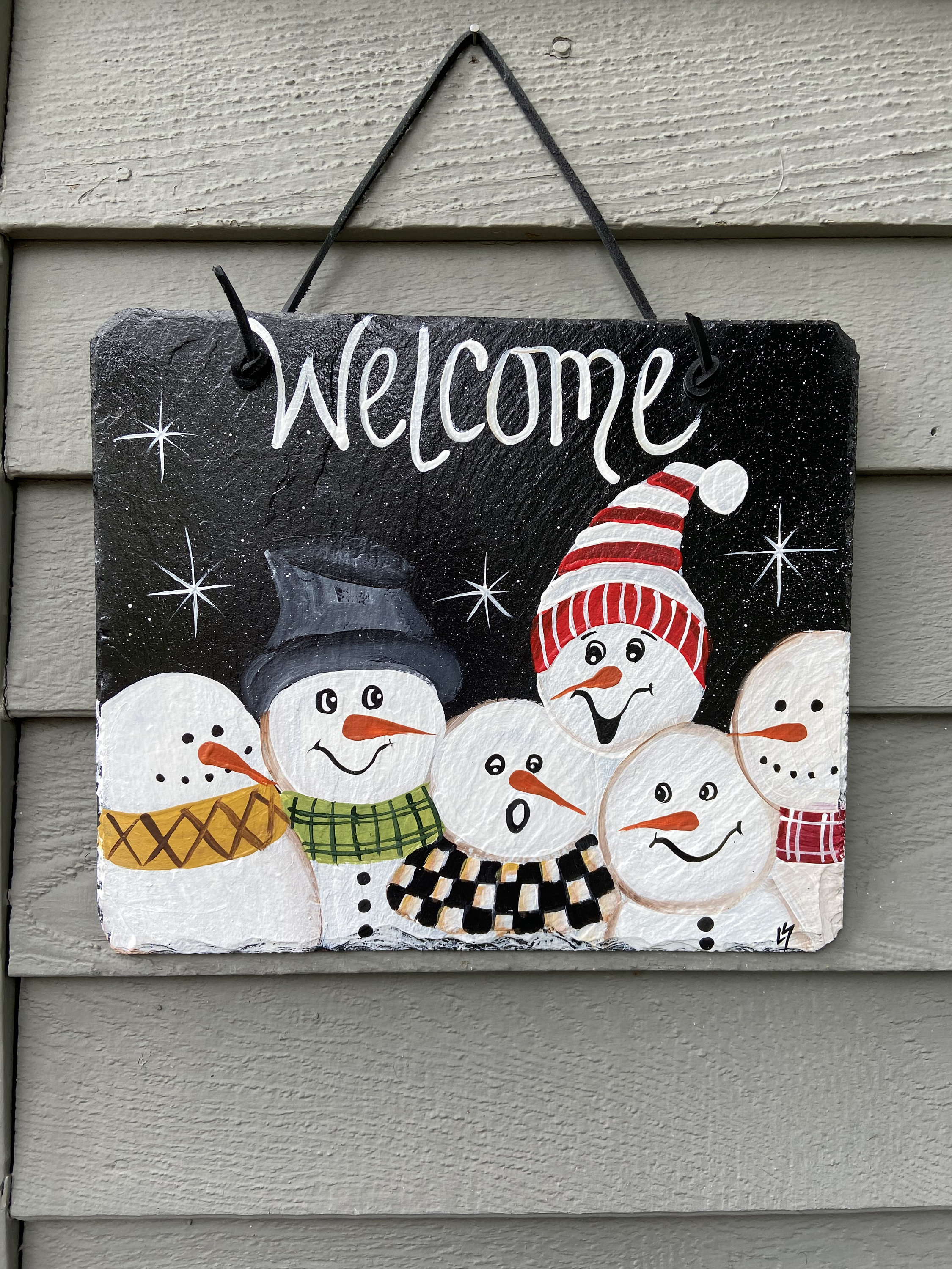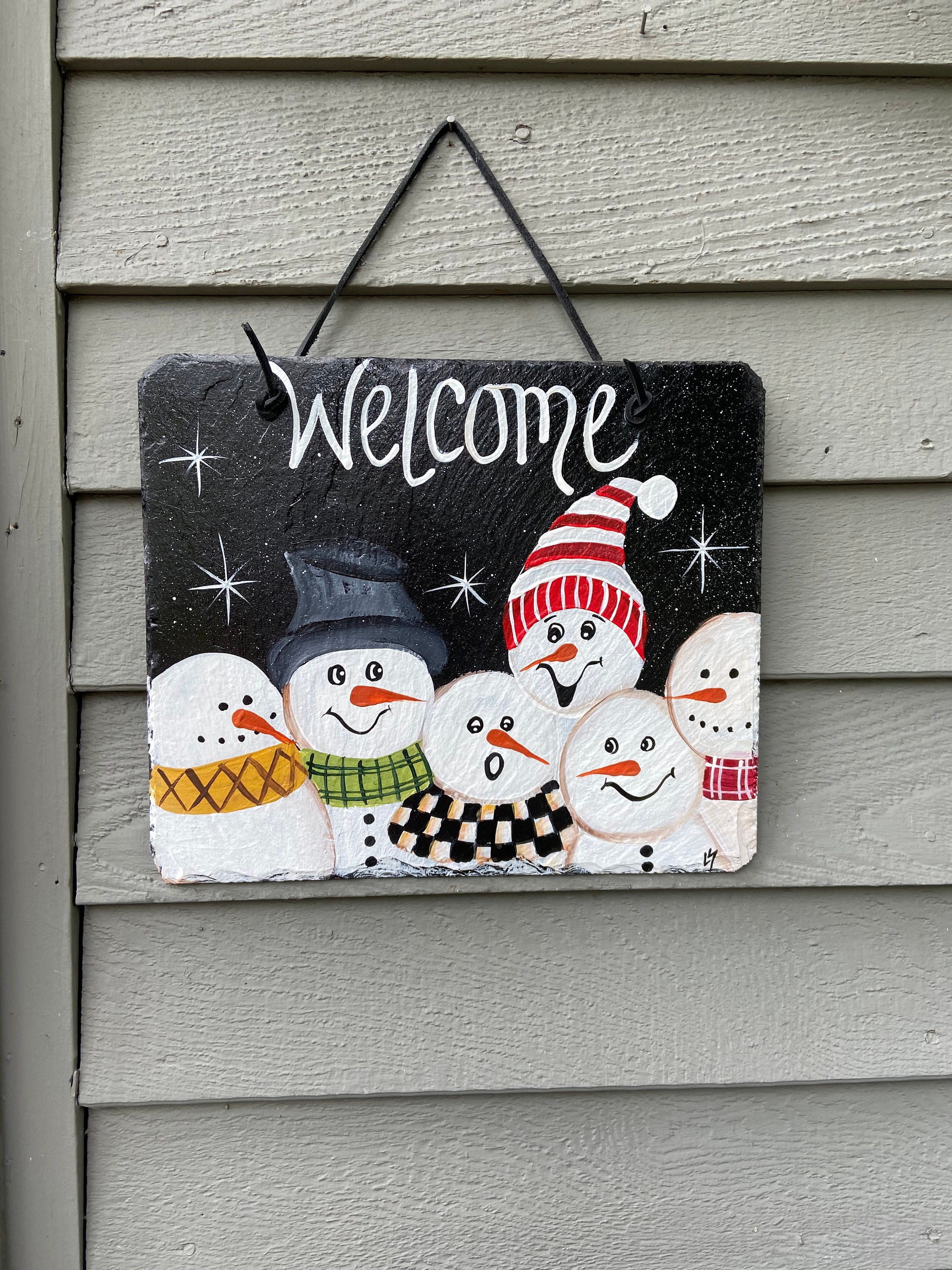 Customized Slate welcome sign, welcome plaque, winter door hanger, Snowmen slate sign, Winter sign, welcome sign, Painted slate, slate sign, porch decor