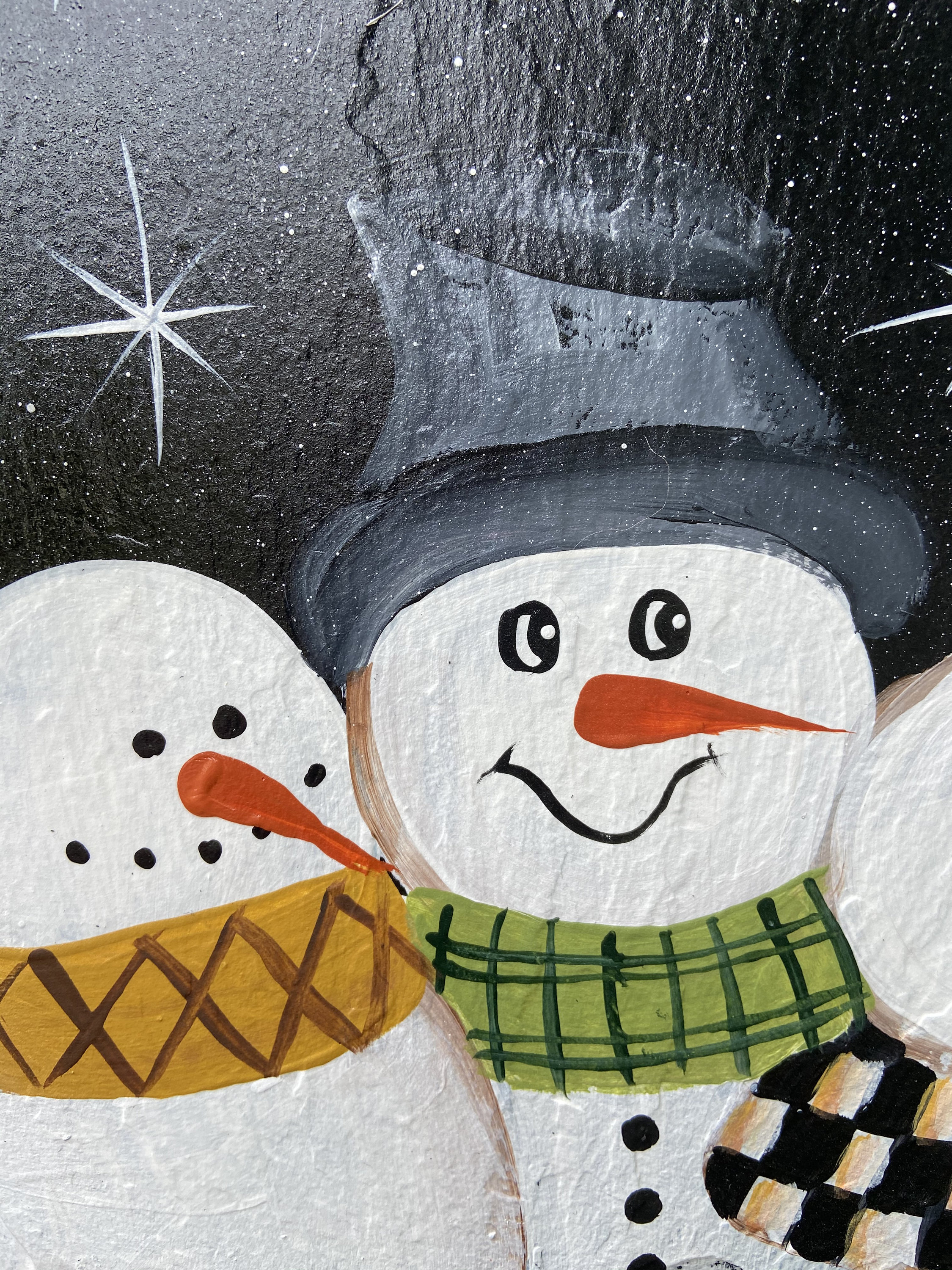 YOU TELL ME HOW MANY IN YOUR FAMILY!! Up to 6 snowmen. You can let me know how many boys , girls, Mom , dads etc and even pick out your color scarves! Just make a note on the order! Or you can purchase as shown with Welcome, Welcome Friends, Let it Snow or whatever you would like written on it.