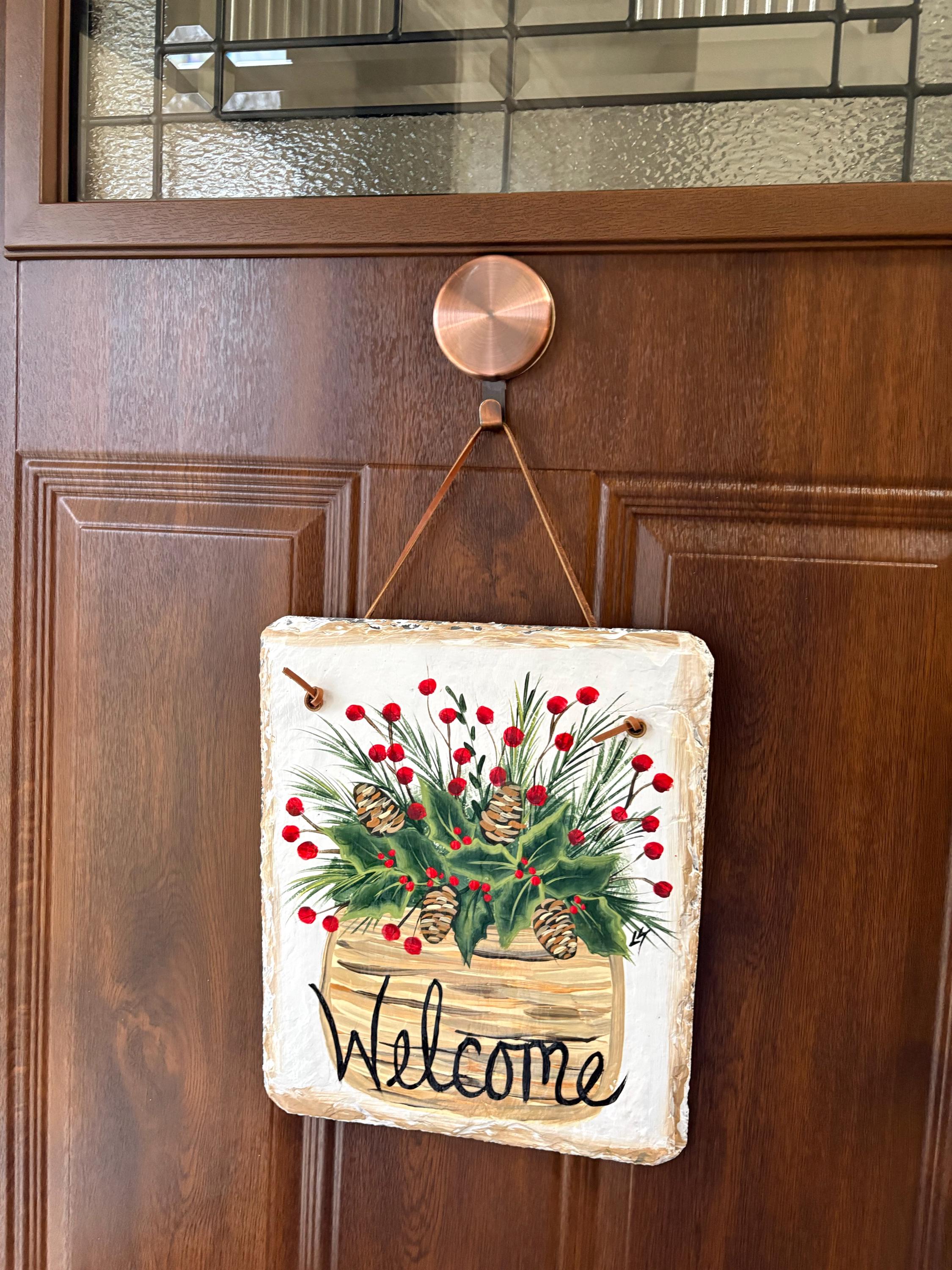 Winter Welcome sign, Winter Door hanger, Painted Slate, Winter Slate Sign, Holiday door hanger, Christmas welcome sign, Slate welcome plaque