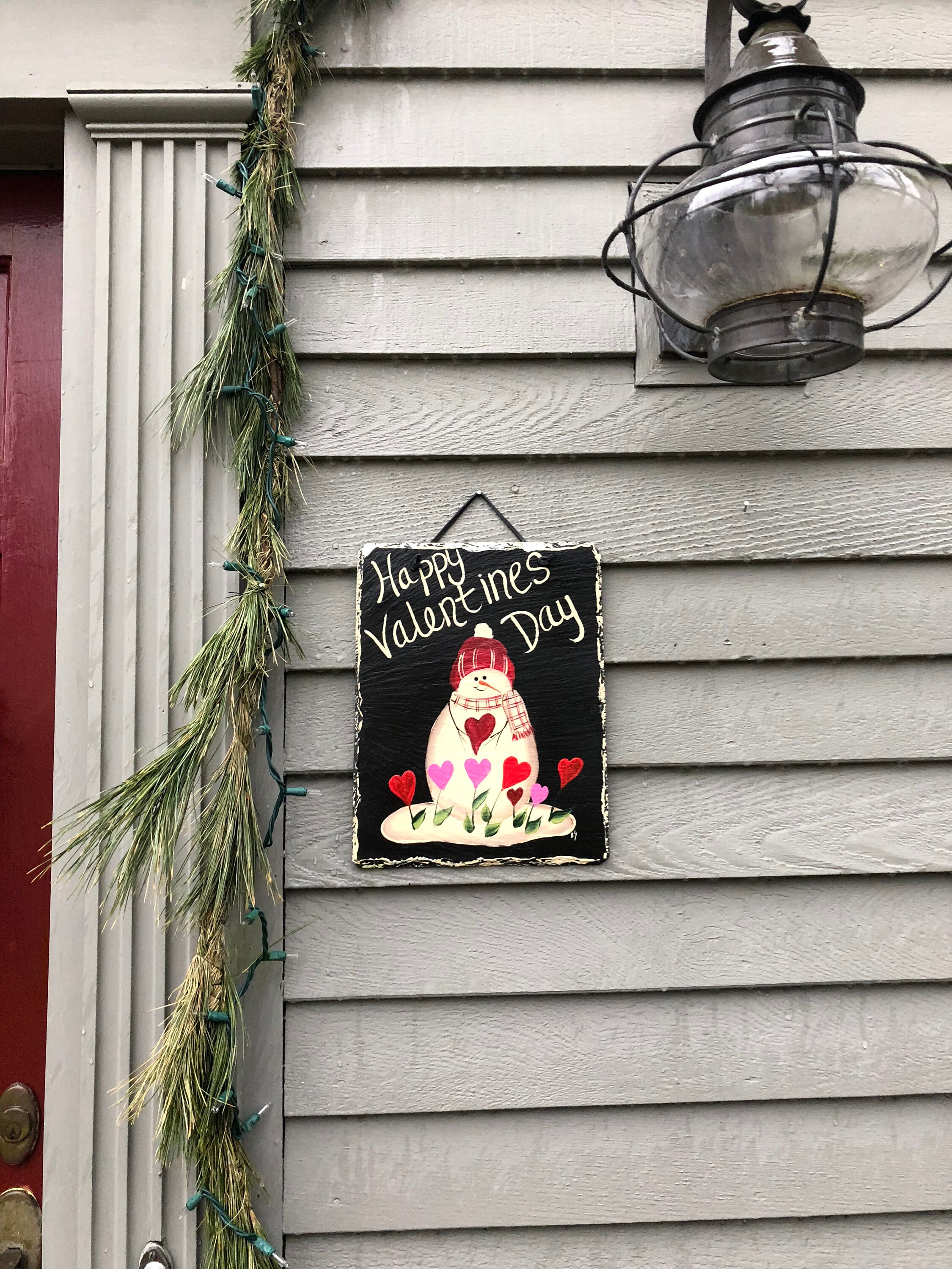 Valentine's Day Slate Heart painting, Painted Slate, Front door decor, Hand painted slate, 12 x 10 recycled roof slate, Welcome sign