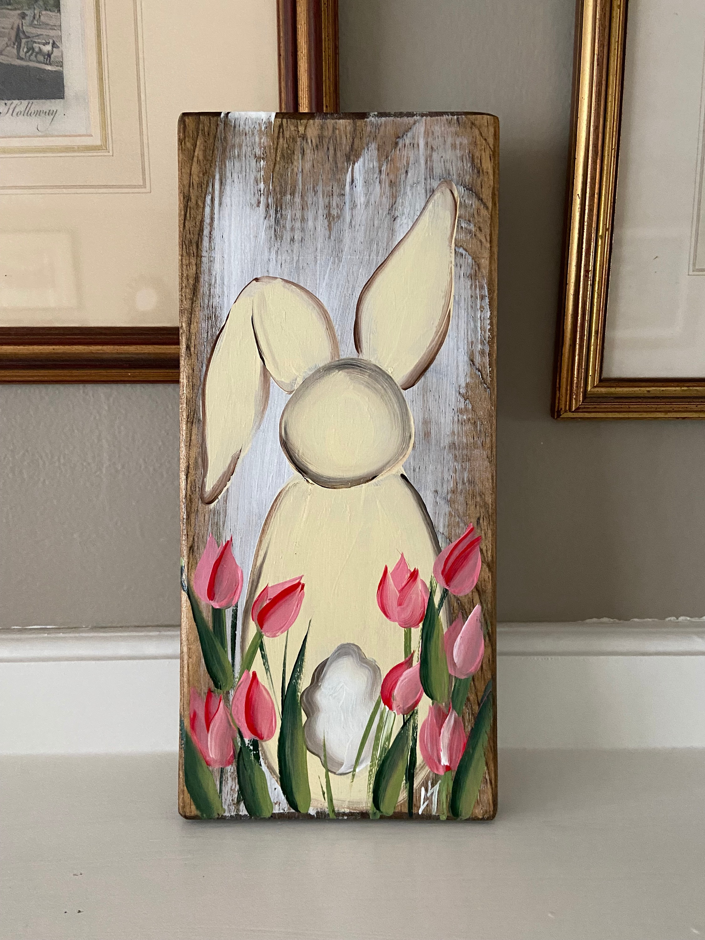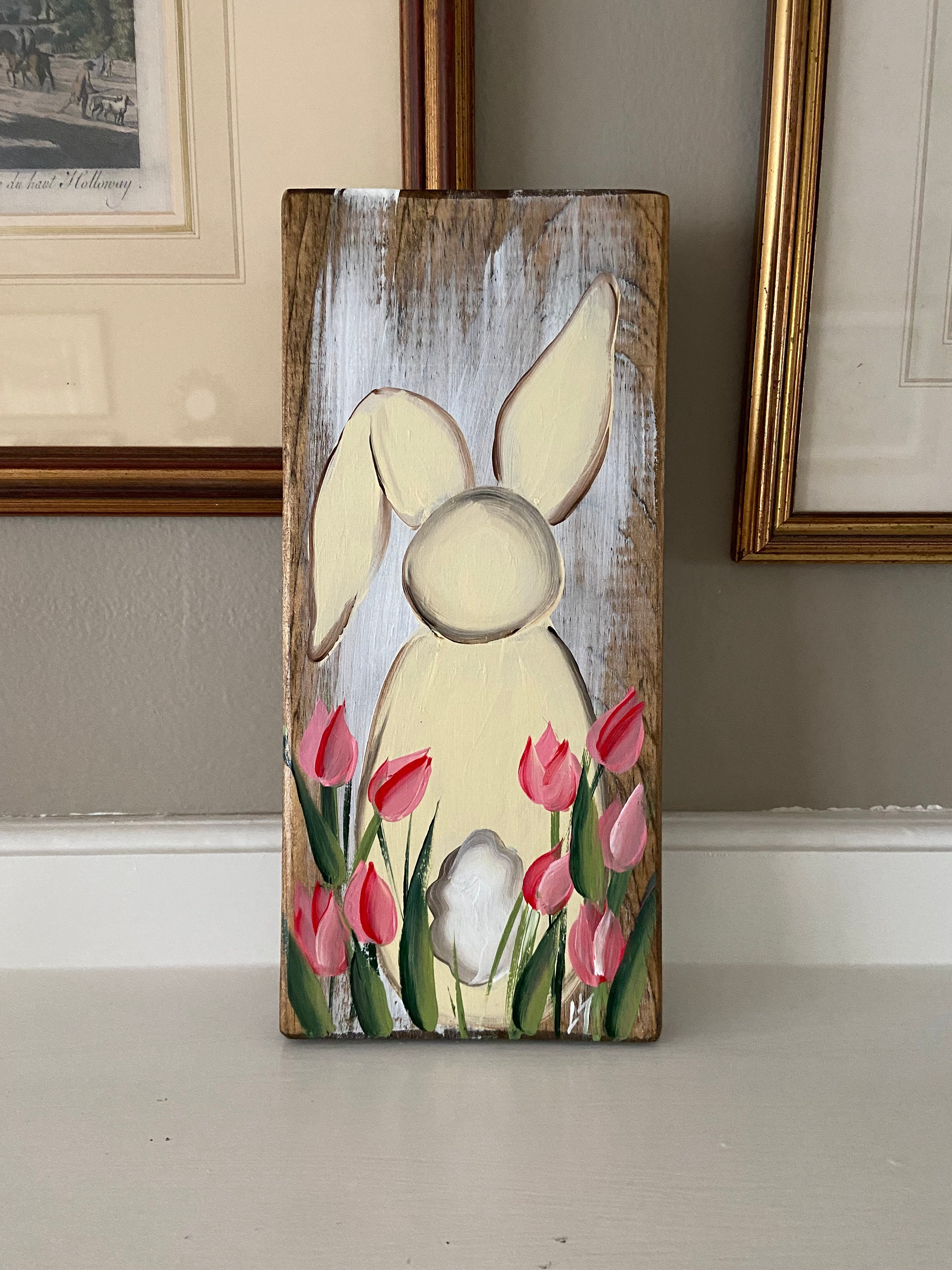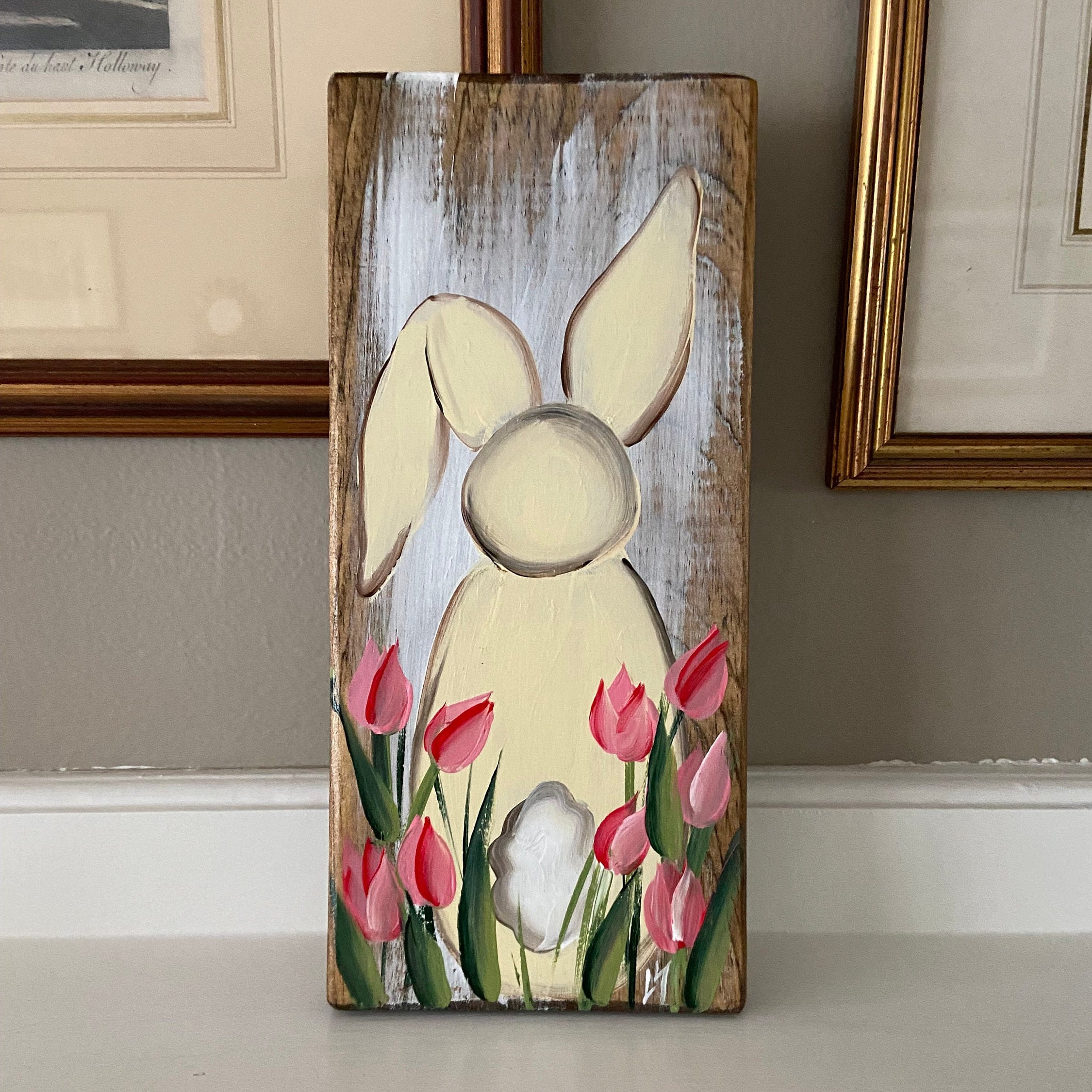 Painted wood Easter Bunny wall hanging, Rustic bunny painting on wood, Easter shelf sitter, Easter wood painting, rustic wood porch decor