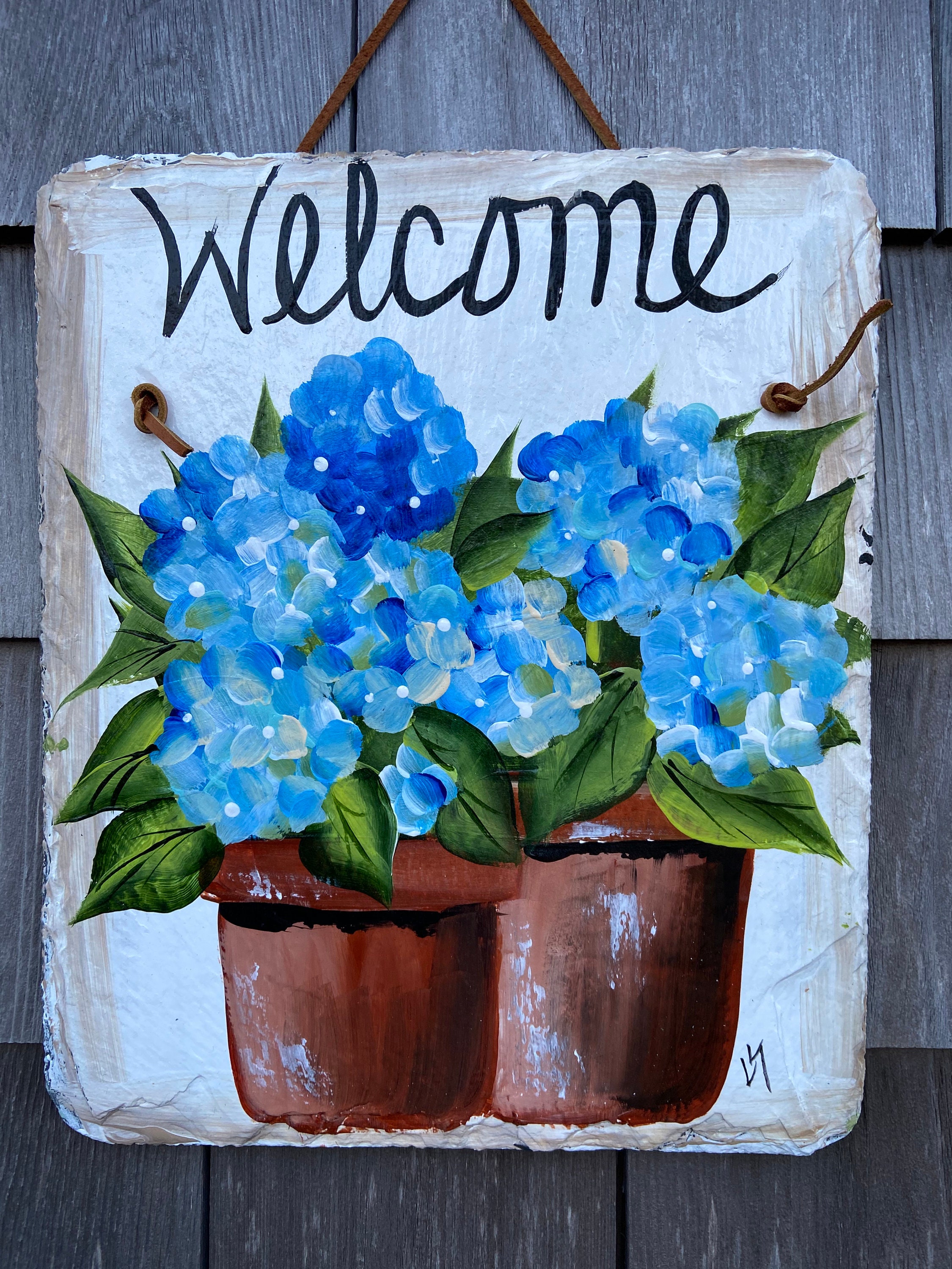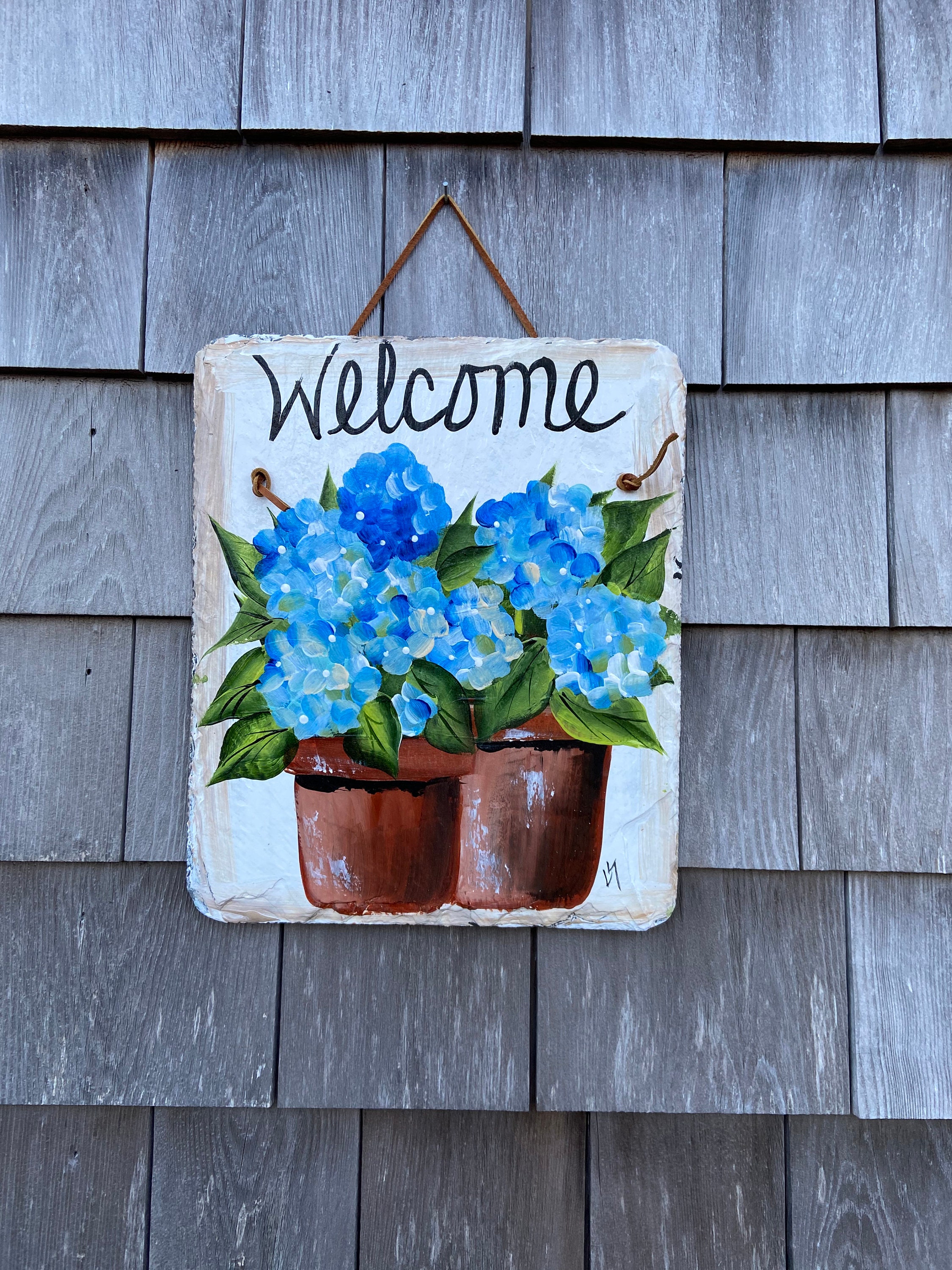 Hand Painted Slate sign, Spring Welcome sign, Front door Slate, Spring Slate Sign, door hanger, Spring slate, Slate welcome plaque