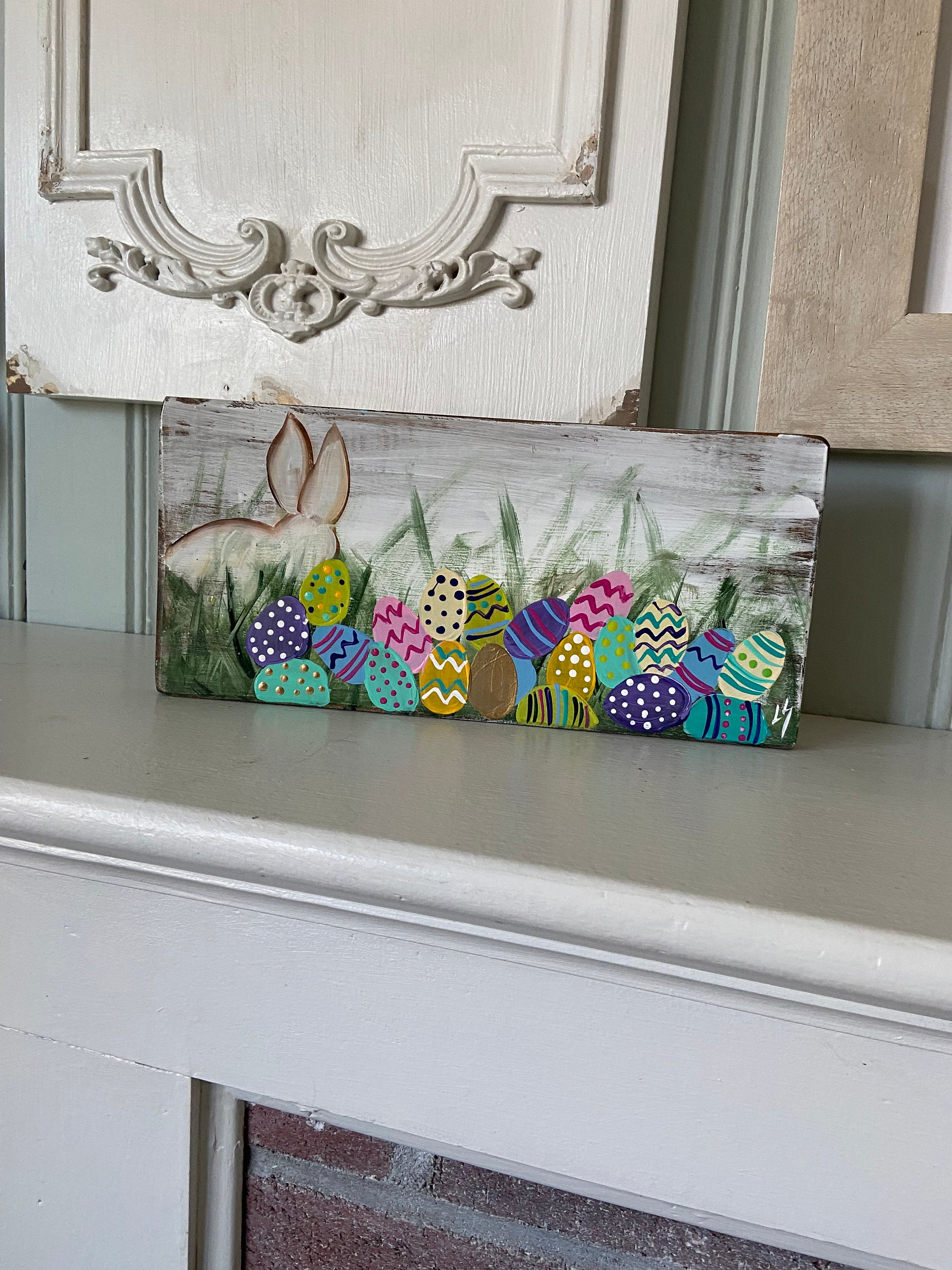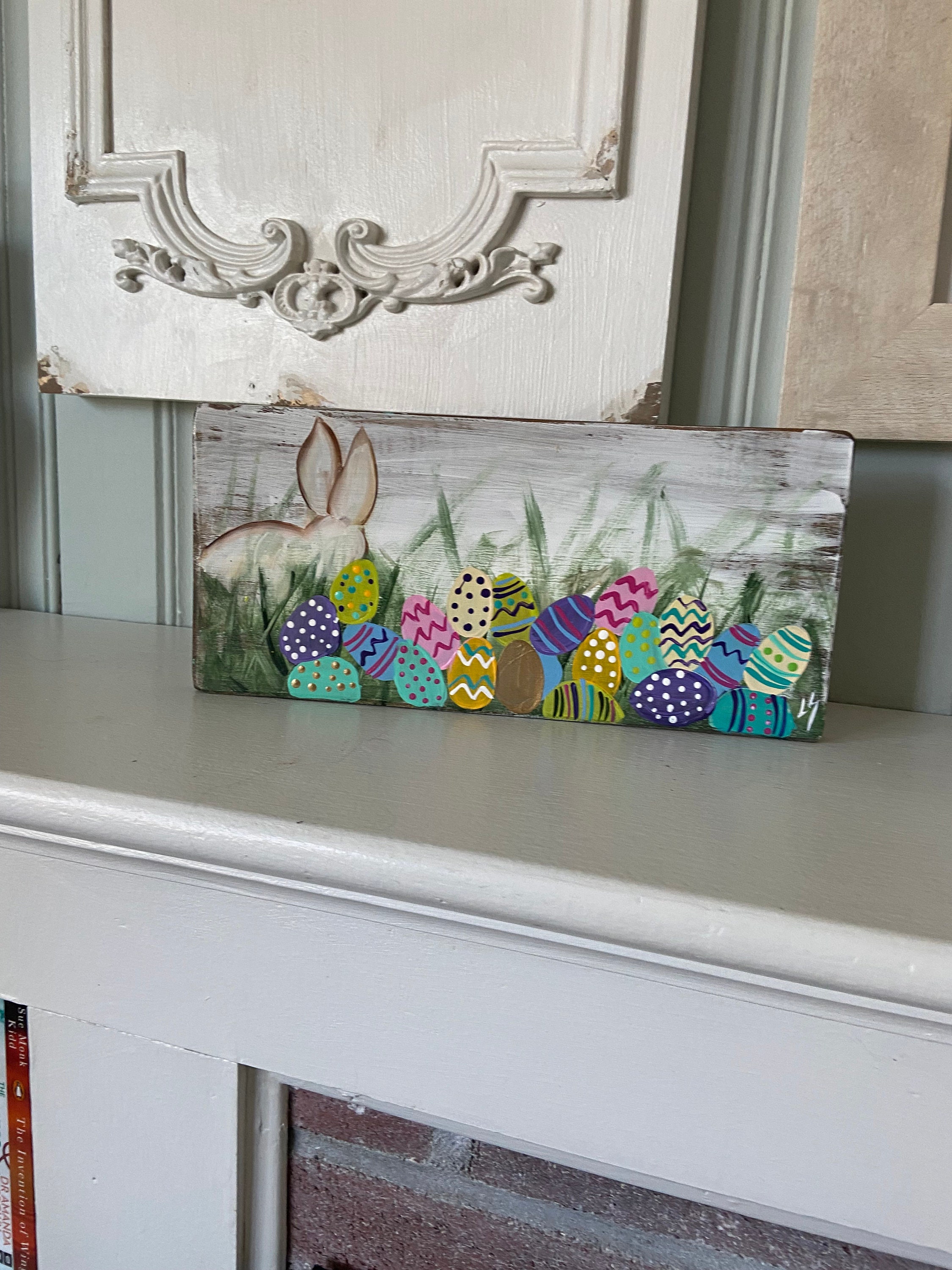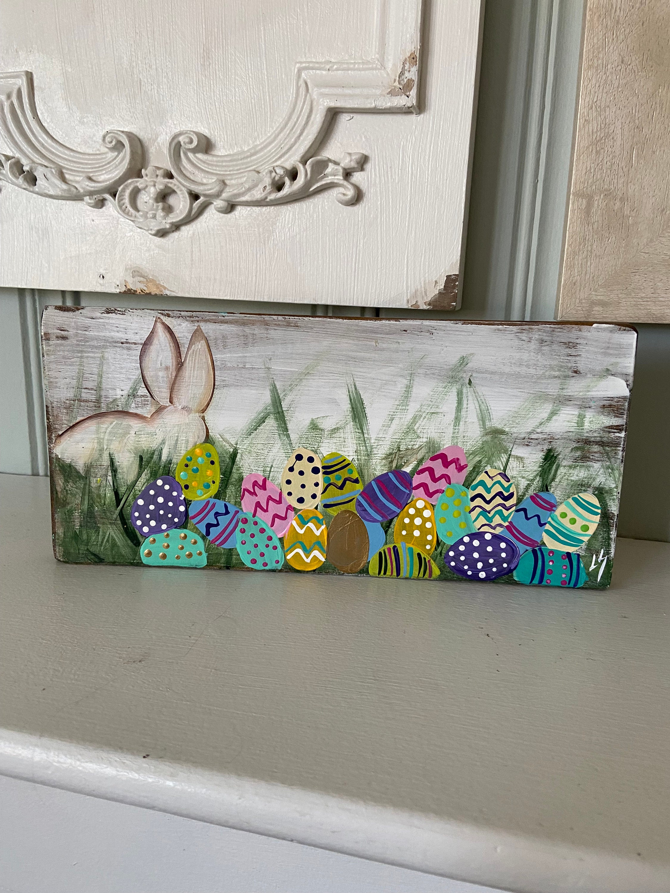 Painted wood Easter Bunny wall hanging, Rustic bunny painting on wood, Easter shelf sitter, Easter wood painting, rustic wood porch decor