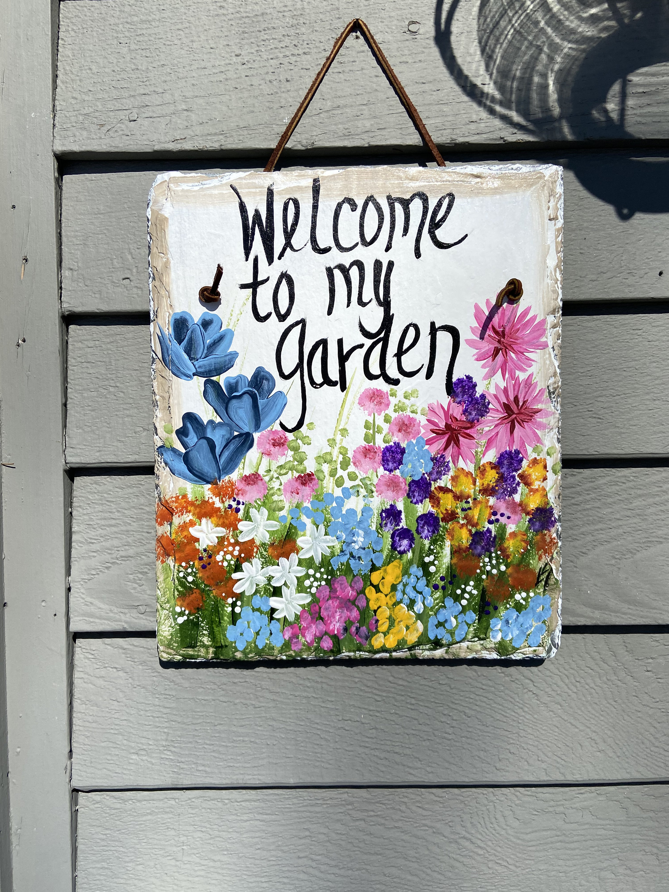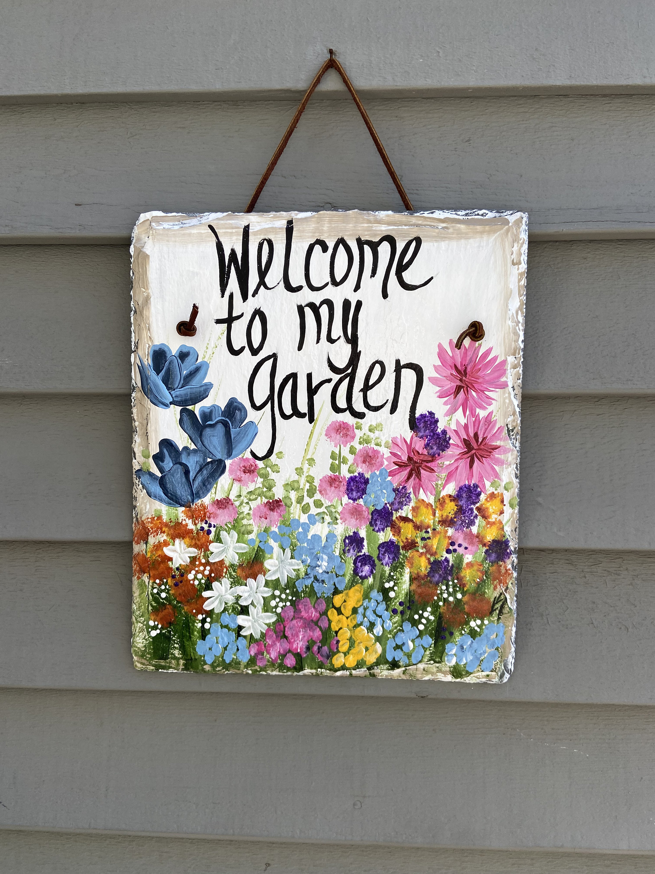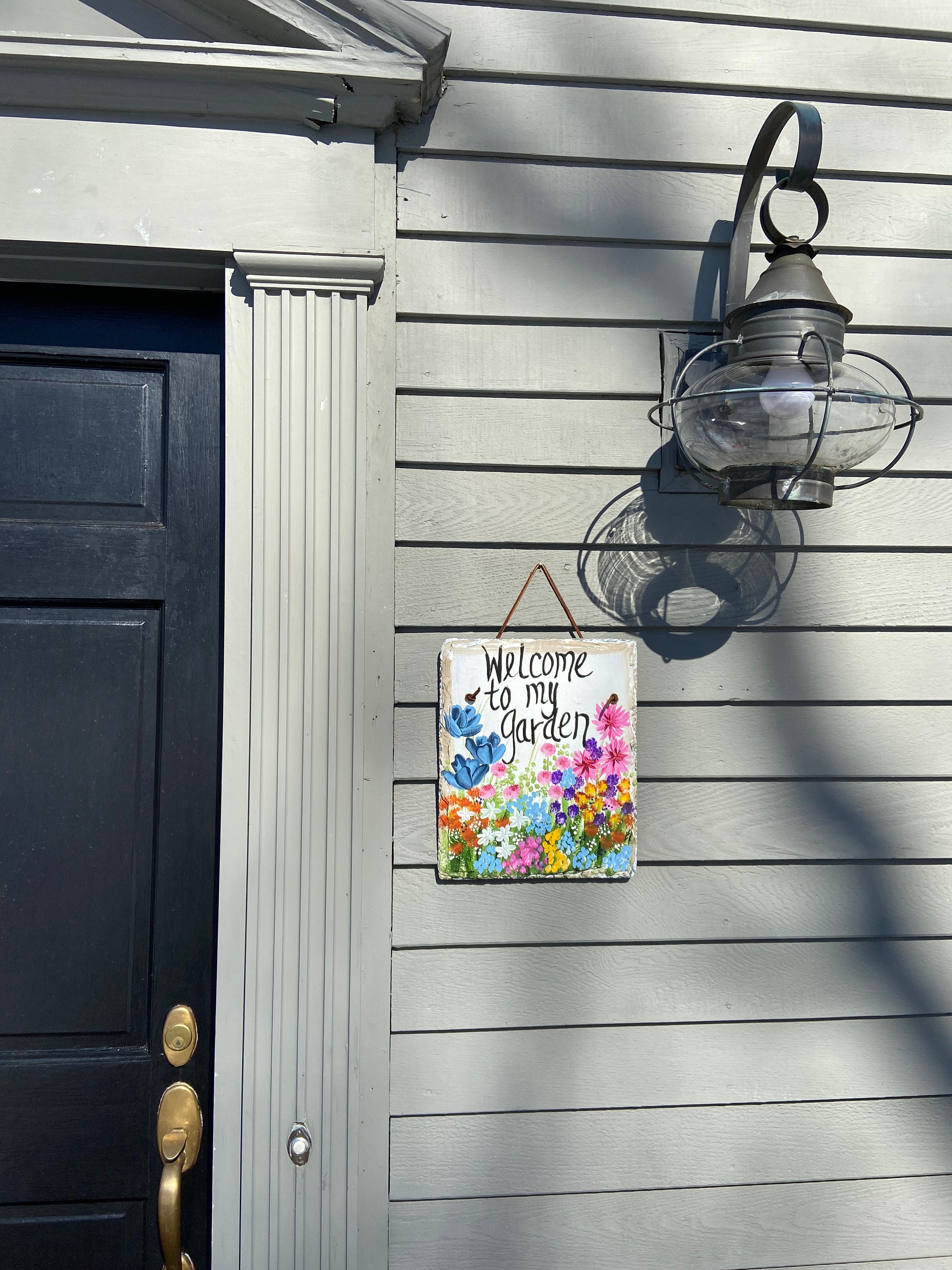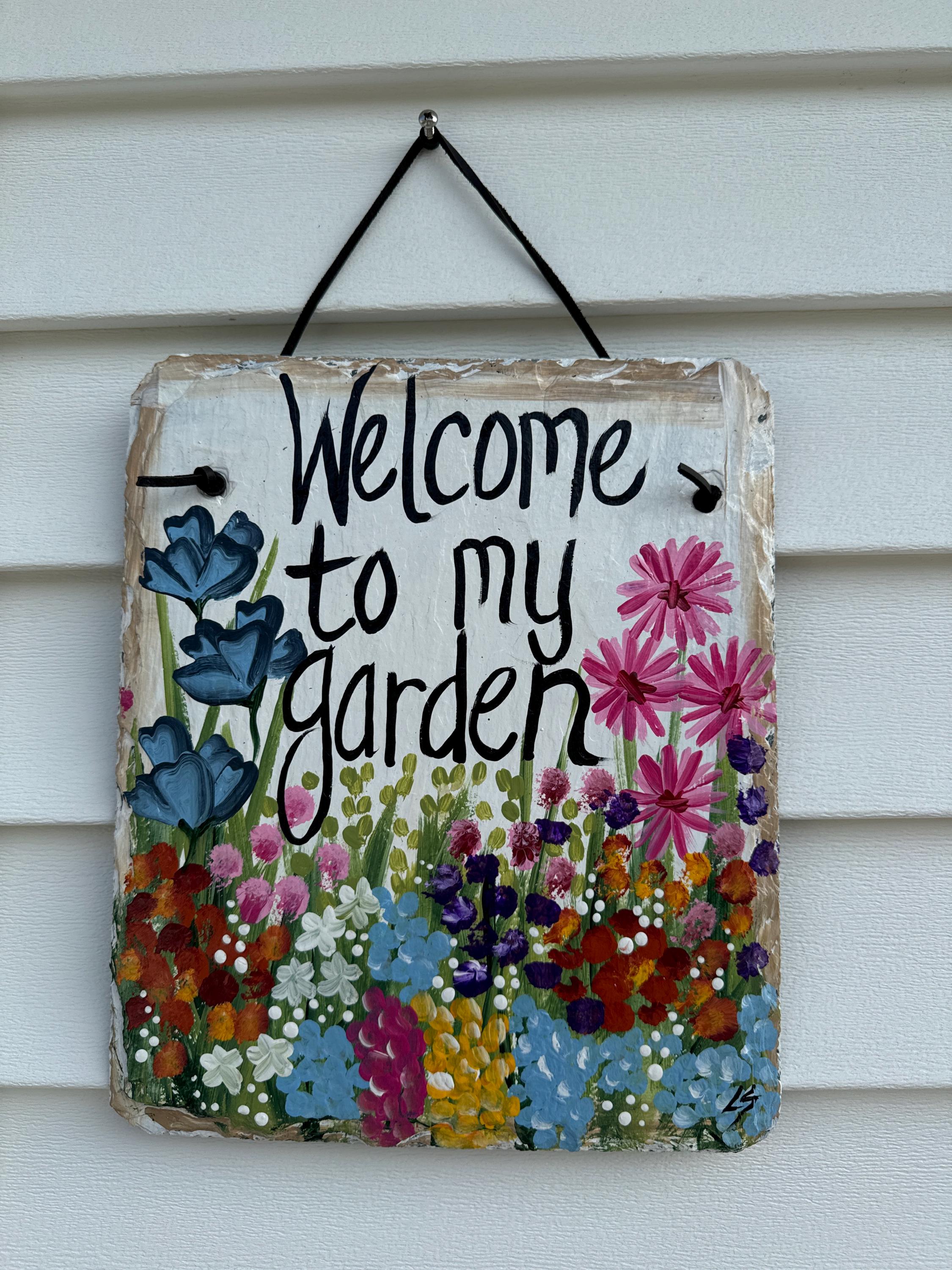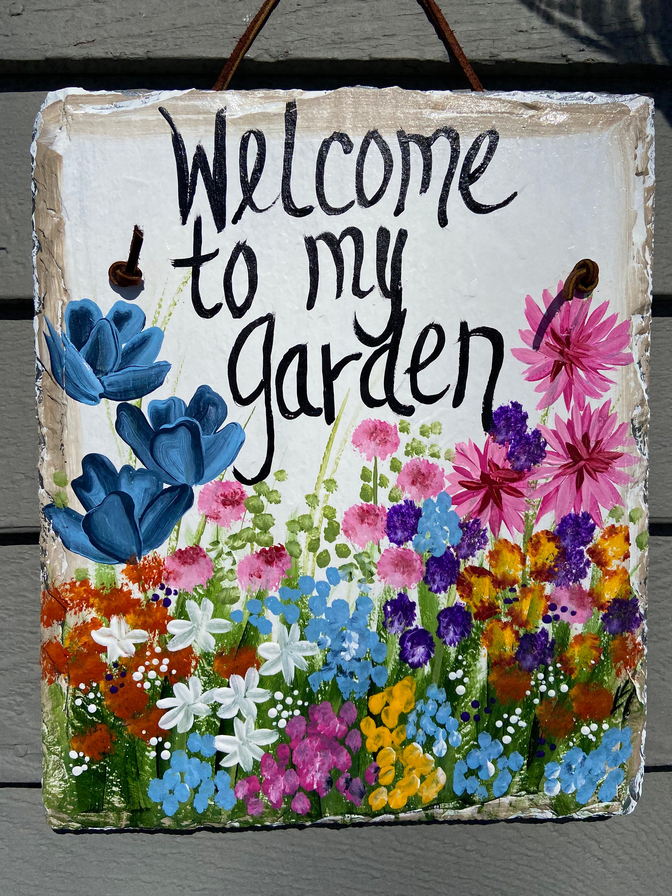 Hand Painted Slate sign, Spring Welcome sign, Front door Slate, Spring Slate Sign, door hanger, Spring slate, Slate welcome plaque