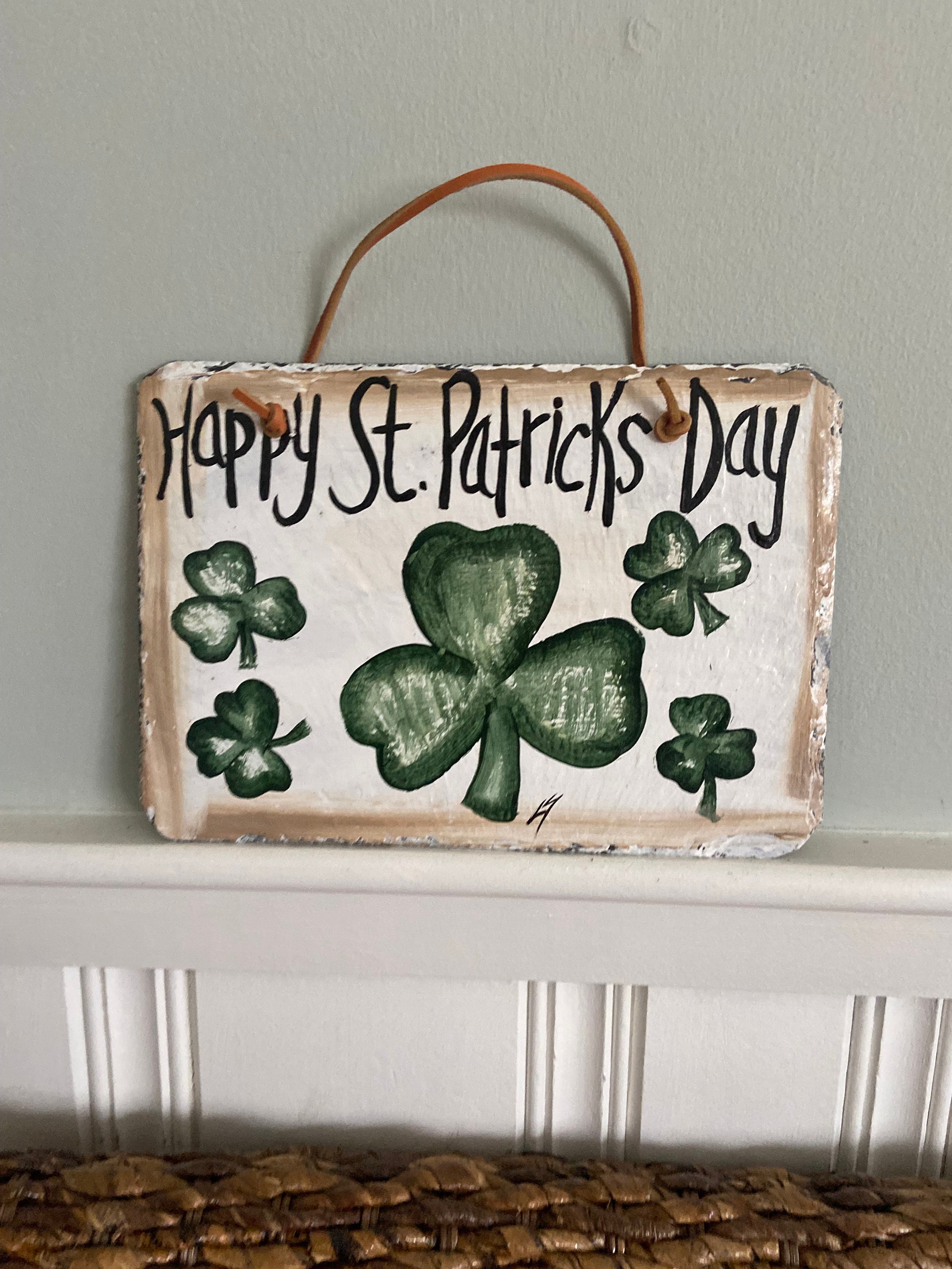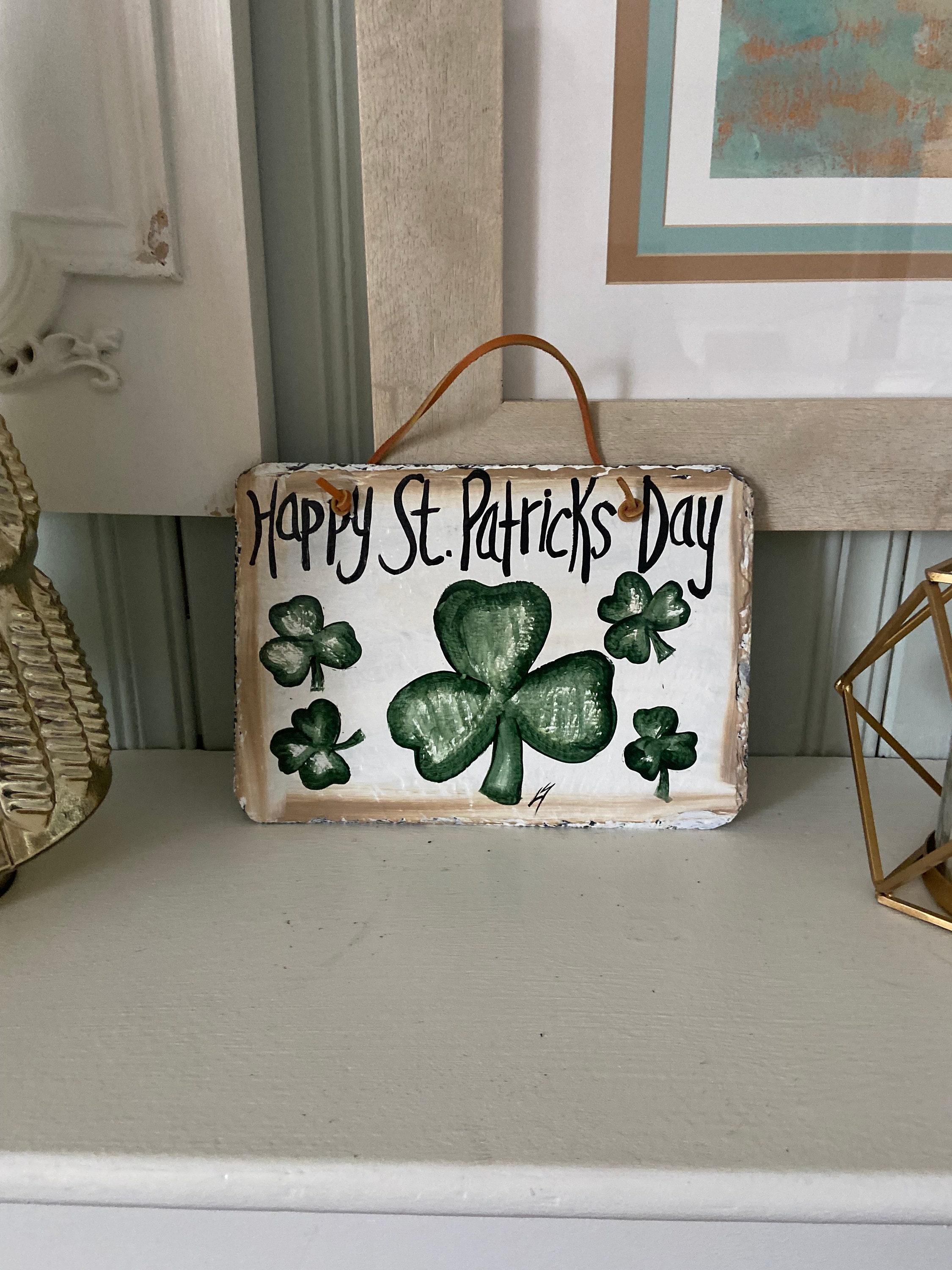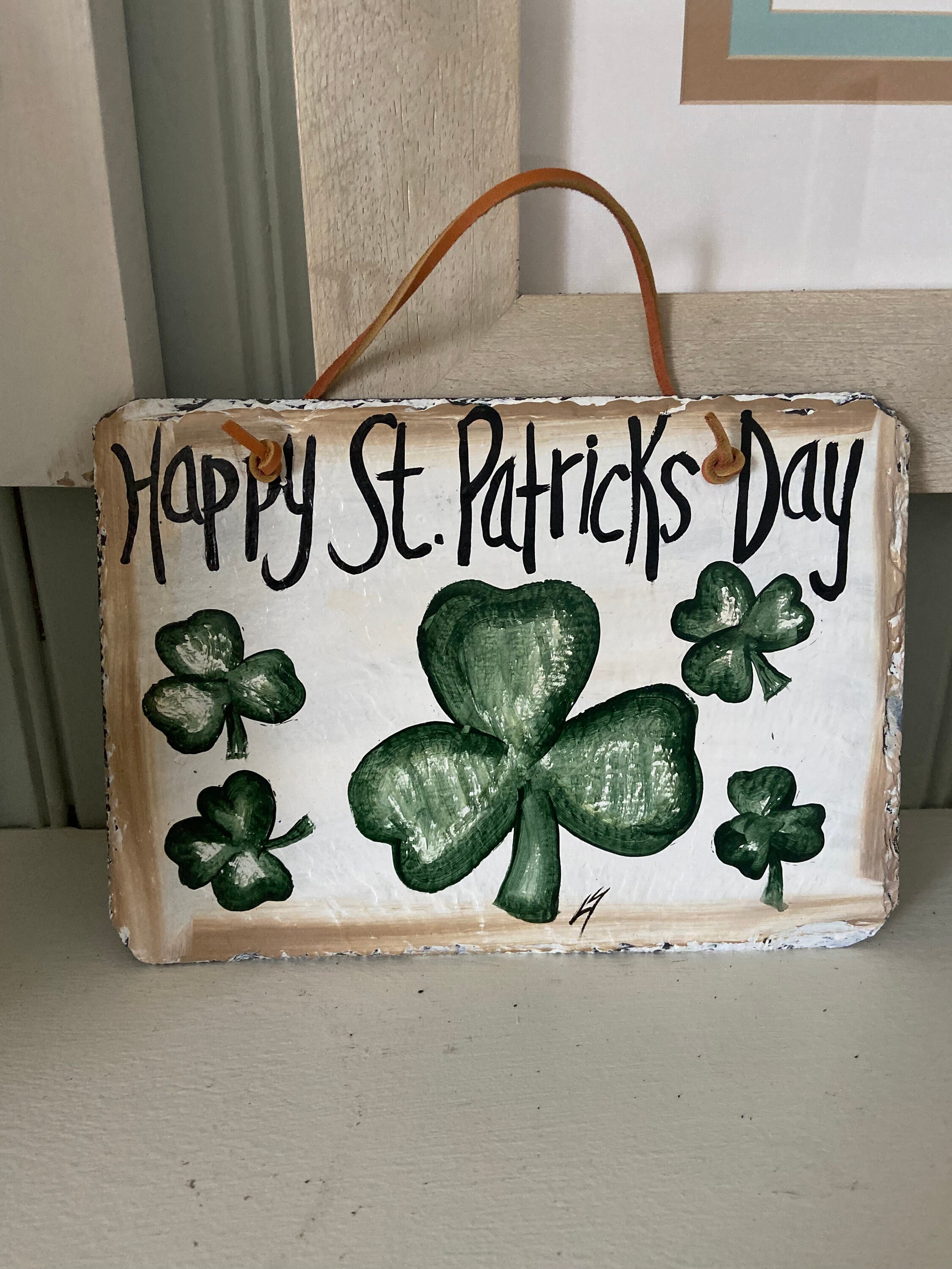Painted St. Patricks Day slate sign, Painted slate Irish clovers, painted Irish slate sign, St. Patricks Day sign, Irish decor. Irish sig