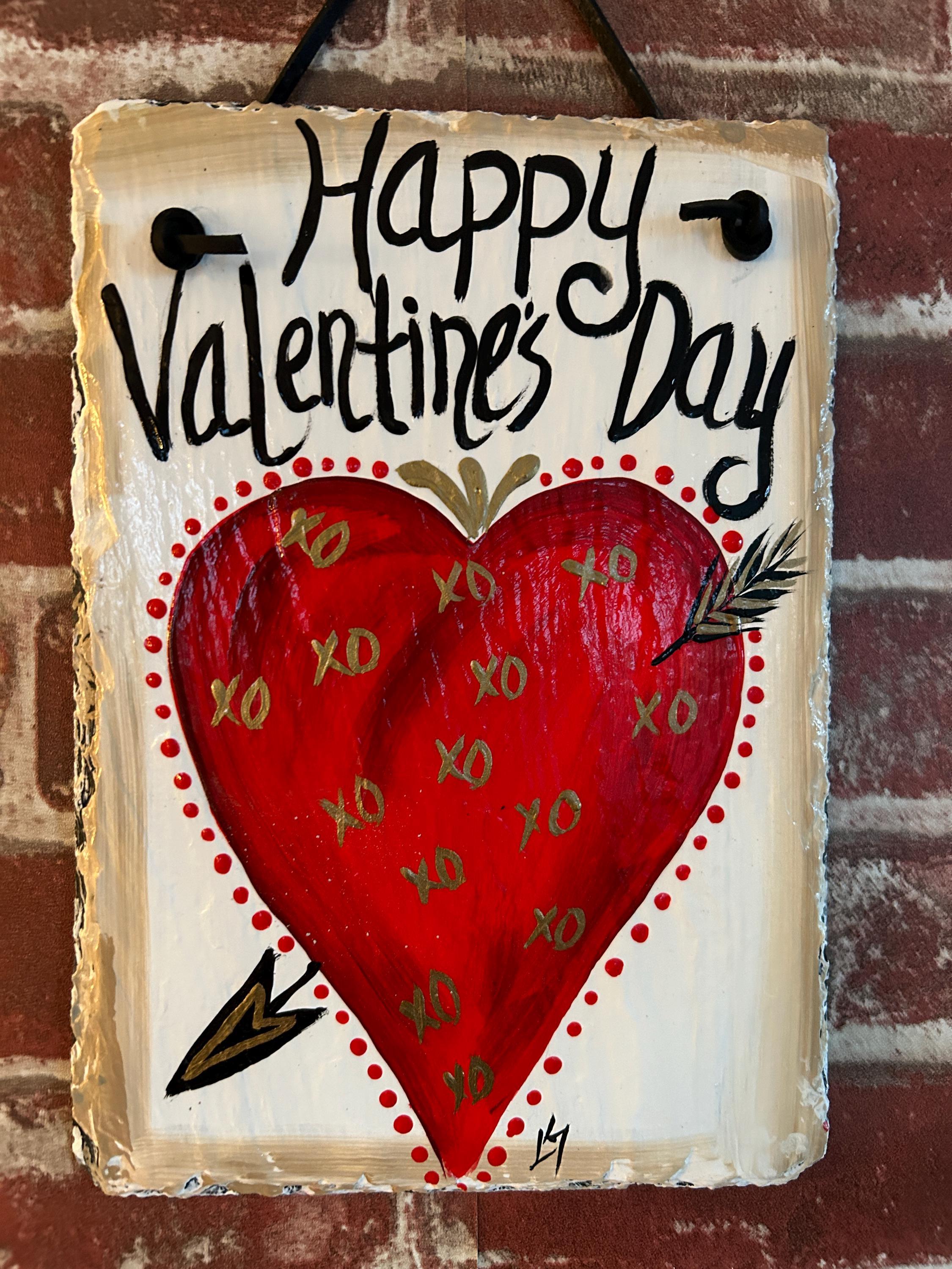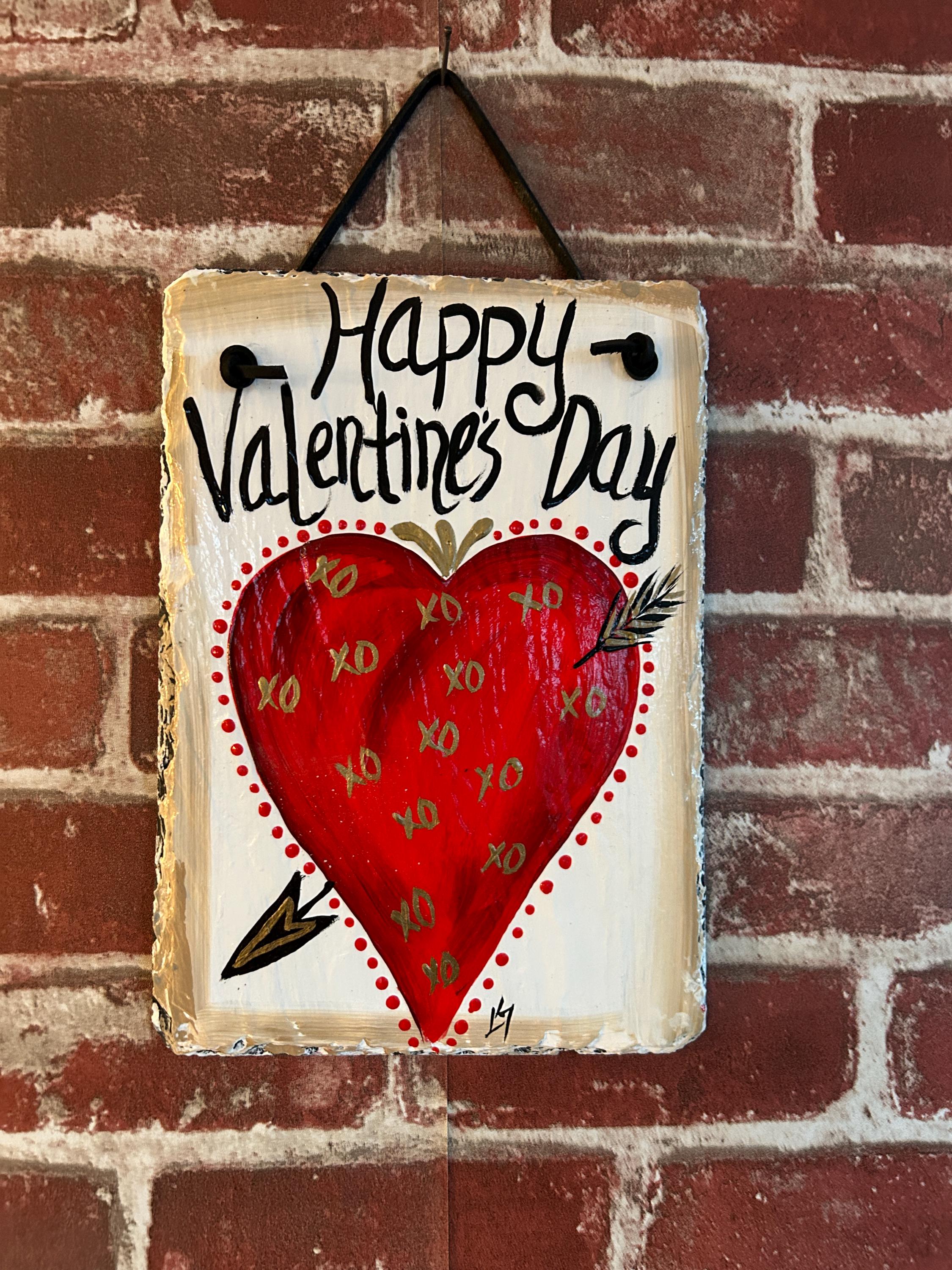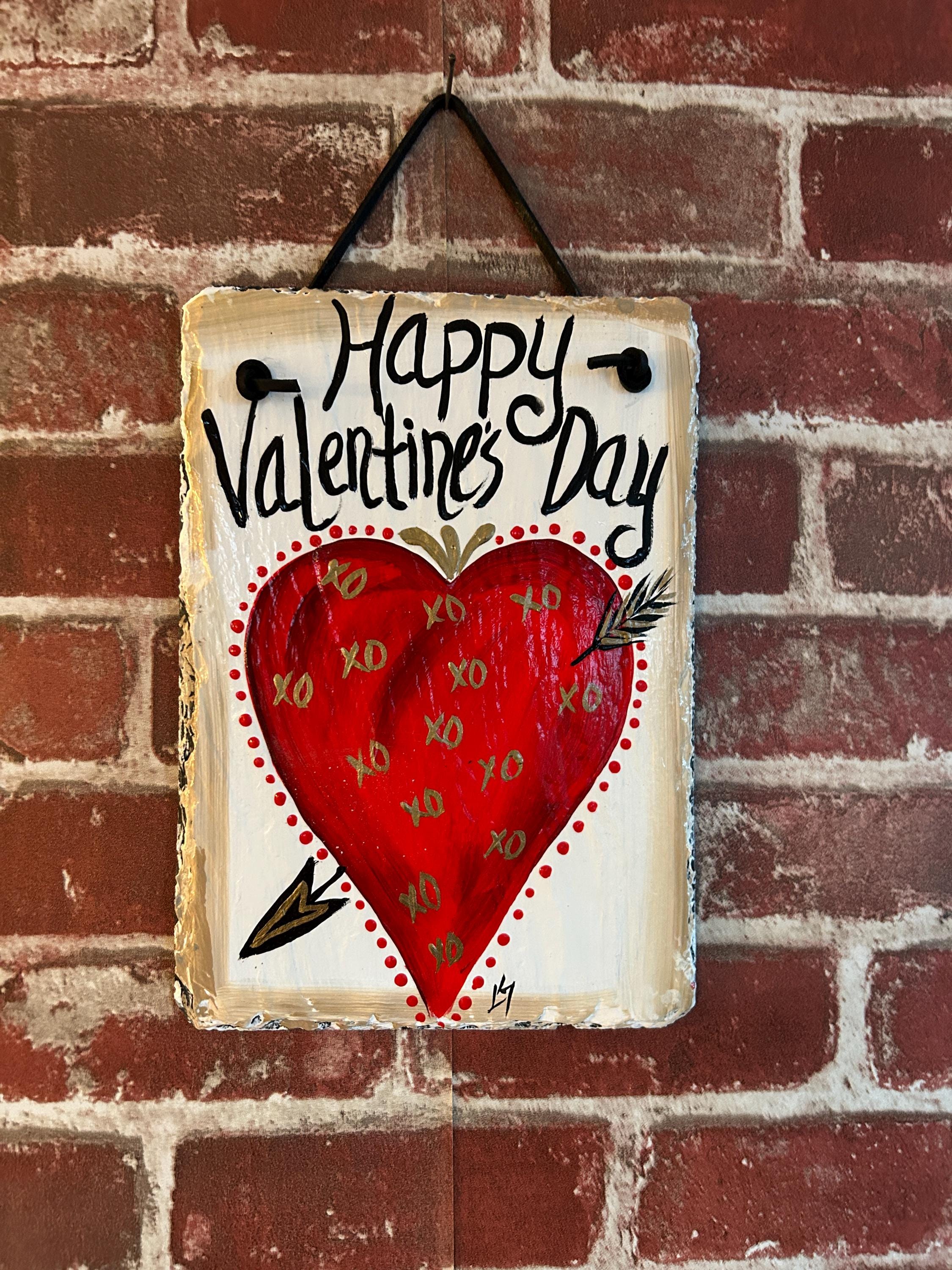 Painted Valentine Snowman, Painted slate sign, Valentine gift, painted Valentine sign, Happy Valentines Day sign, Valentines Day decor