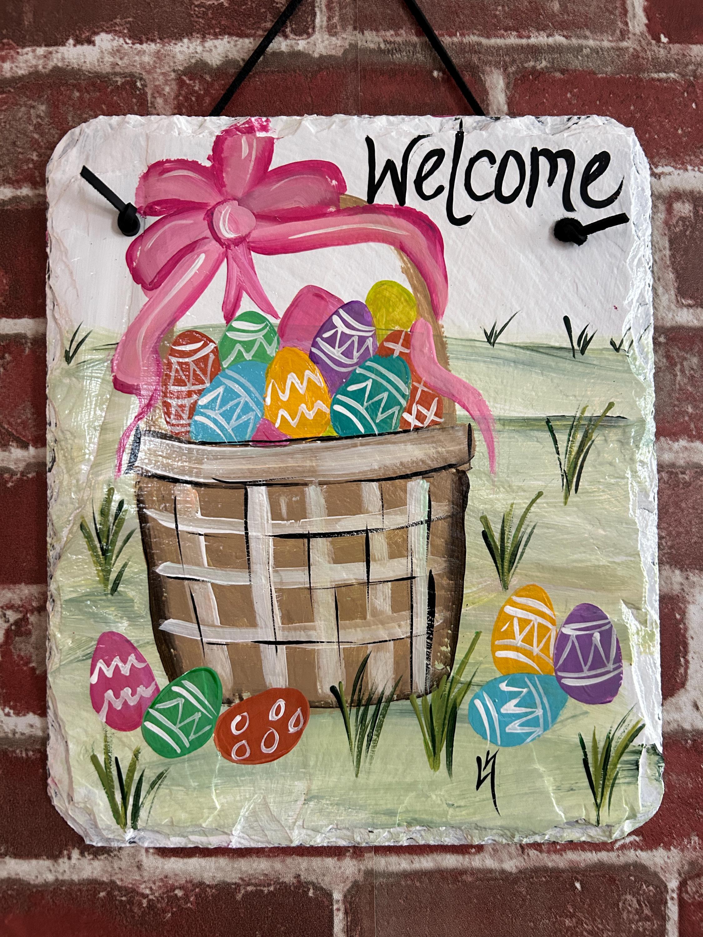 Easter Decorations, Easter Door hanger, Easter, Slate door hanging,Painted Slate, Easter Welcome sign, Easter door decor, Easter Decor