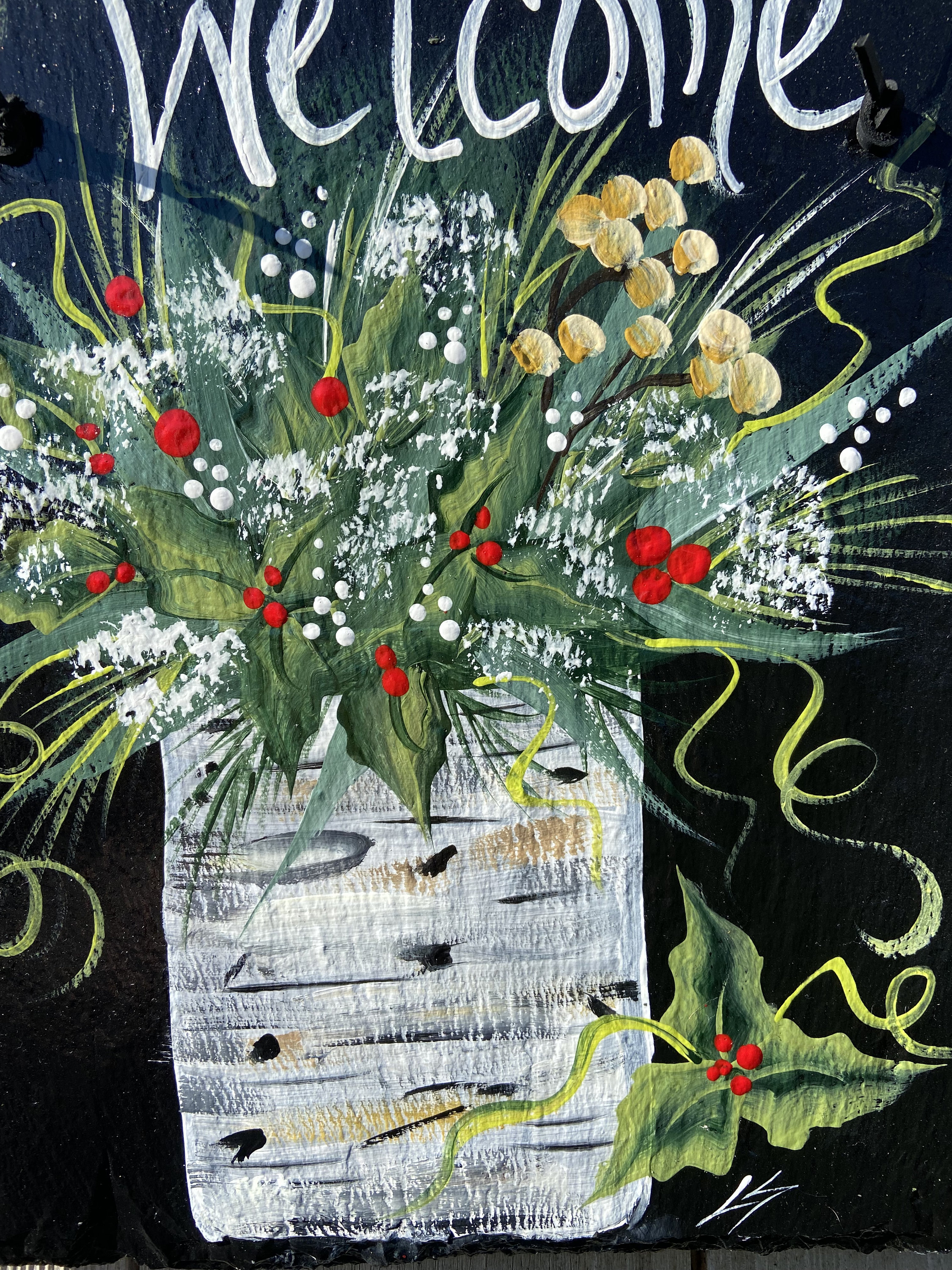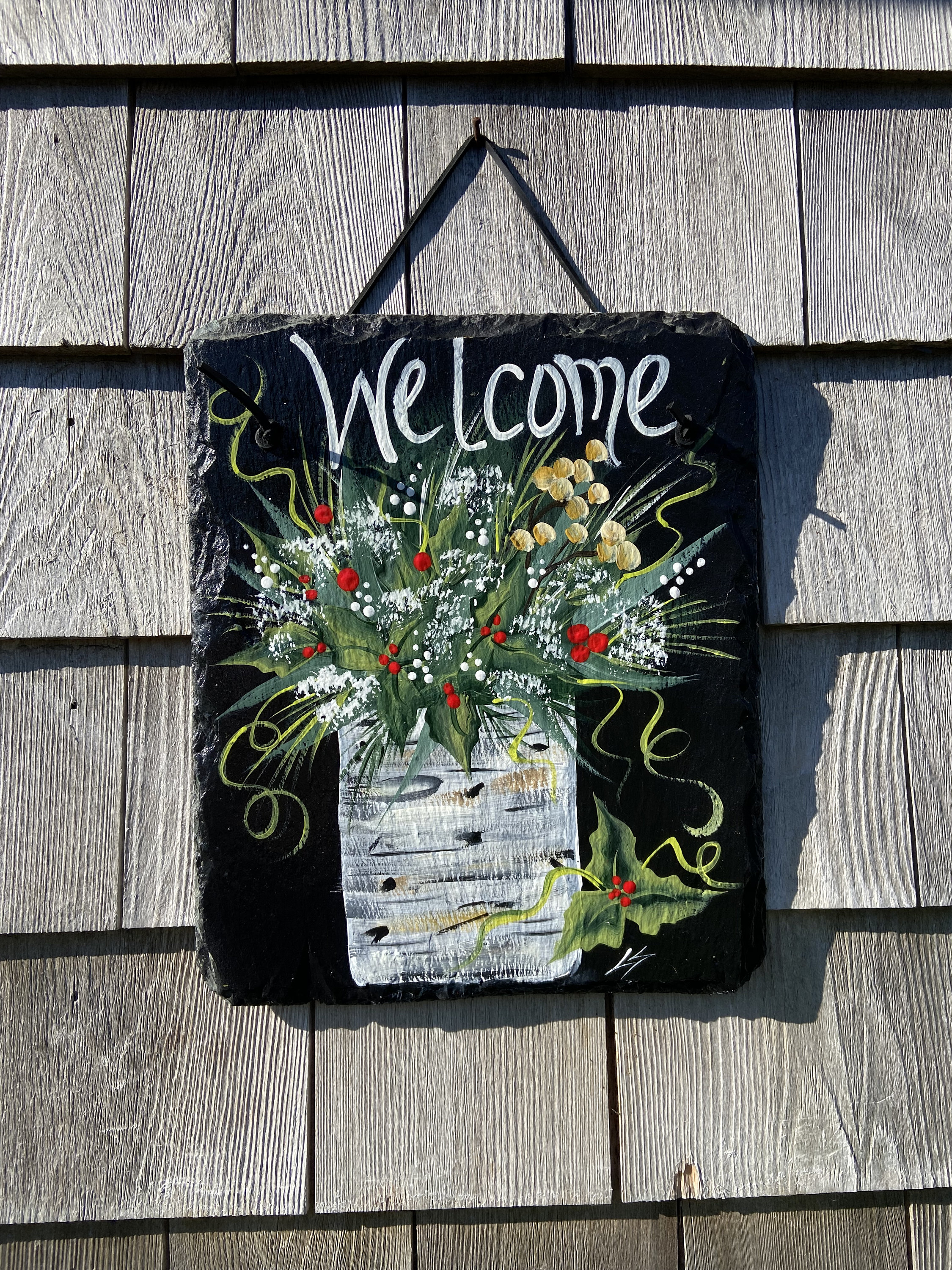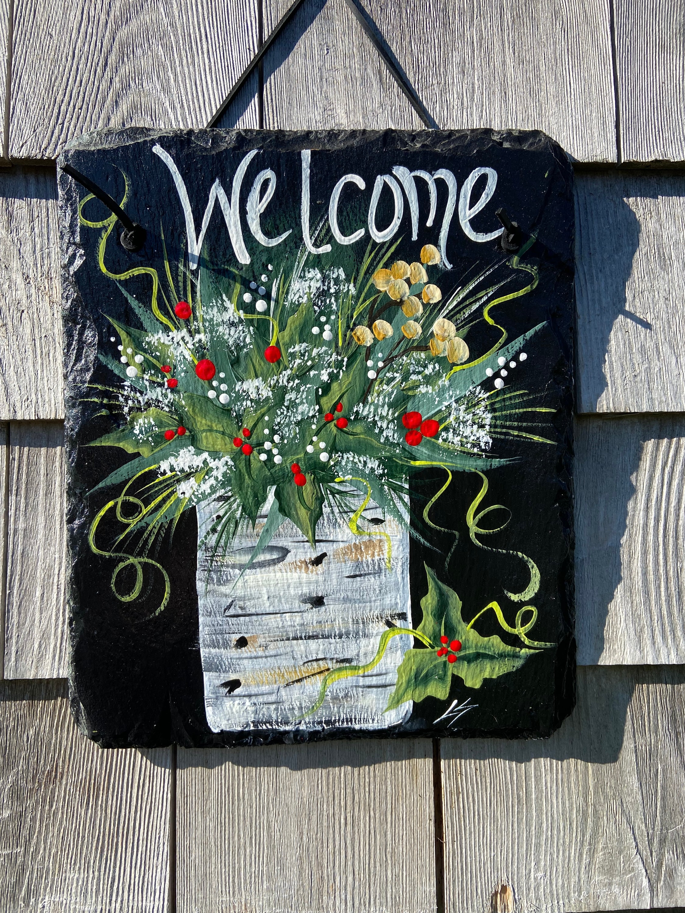 Winter Welcome sign, Winter Door hanger, Painted Slate, Winter Slate Sign, Holiday door hanger, Christmas welcome sign, Slate welcome plaque