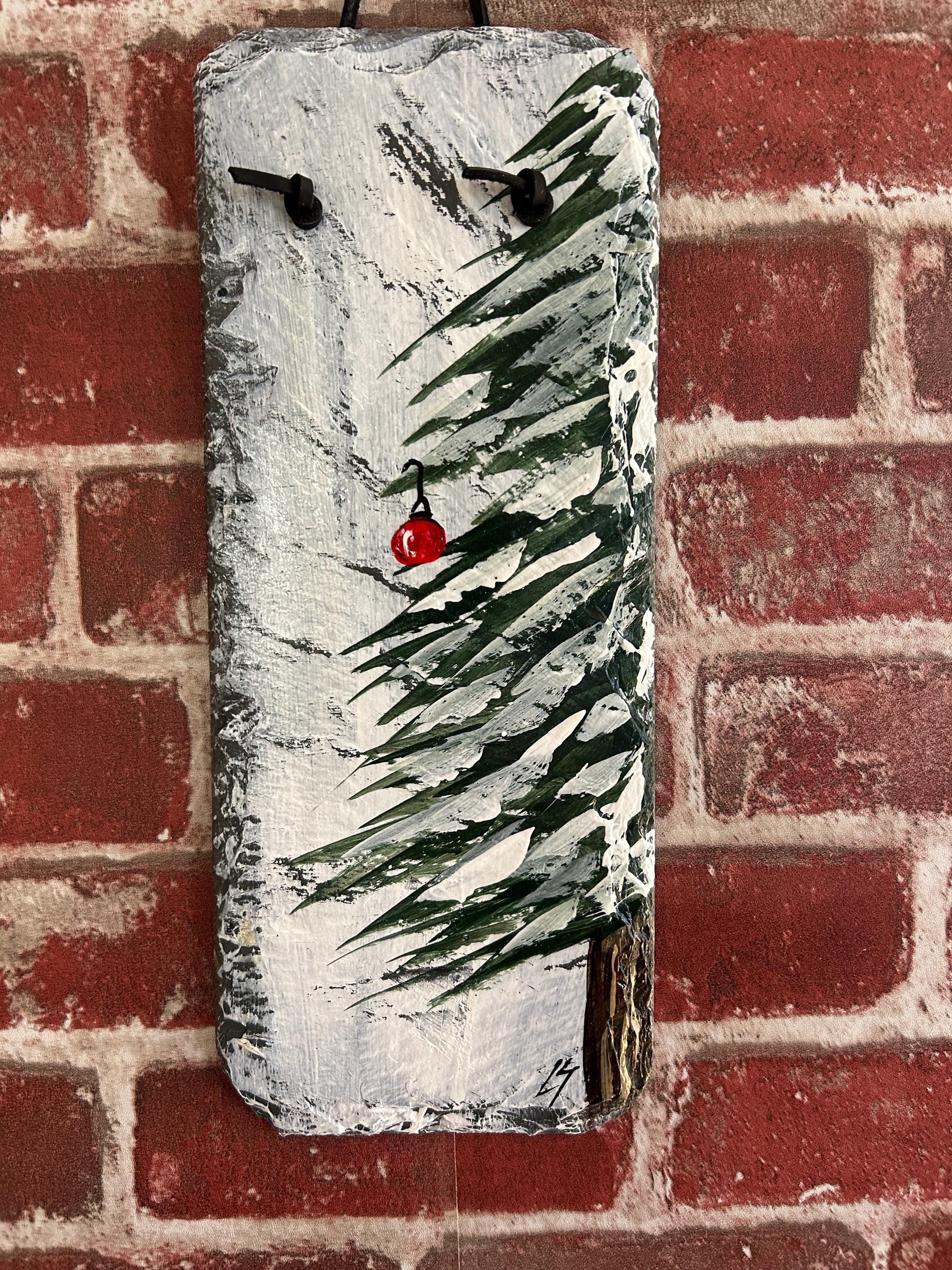 Hand Painted Christmas Tree Slate: Rustic Winter Wall Decor, Holiday door hanger