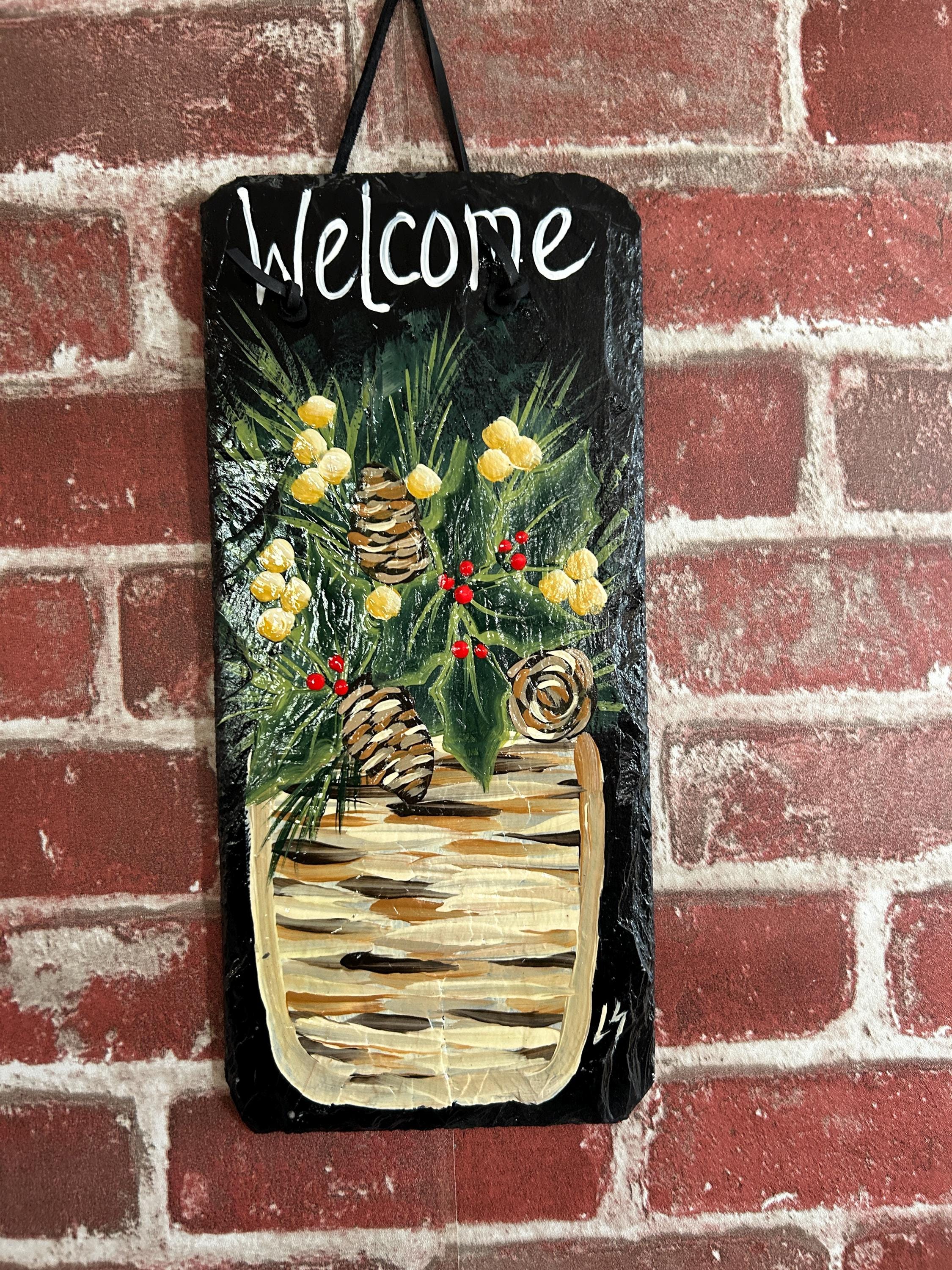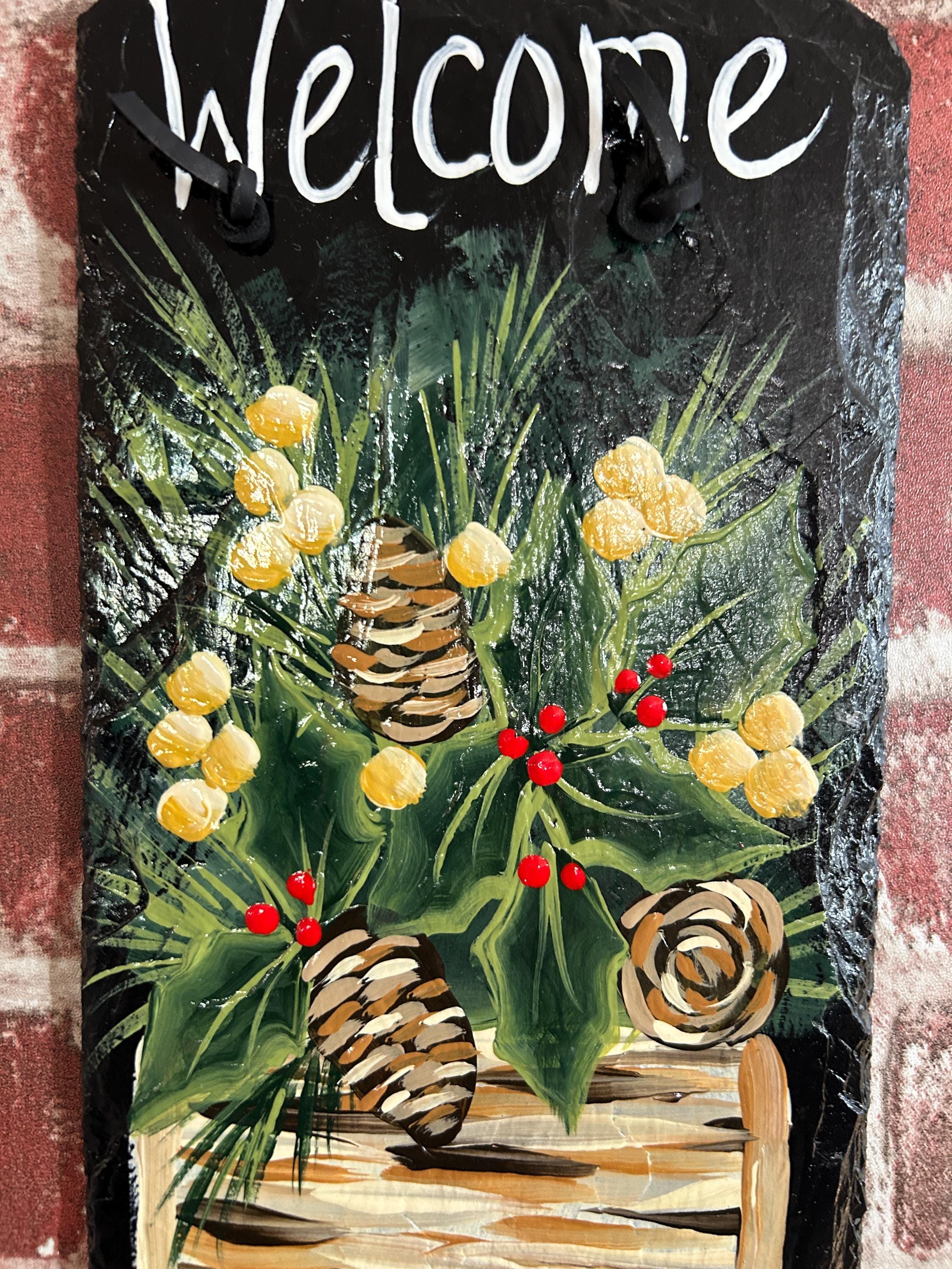 Winter Welcome sign, Winter Door hanger, Painted Slate, Winter Slate Sign, Holiday door hanger, Christmas welcome sign, Slate welcome plaque