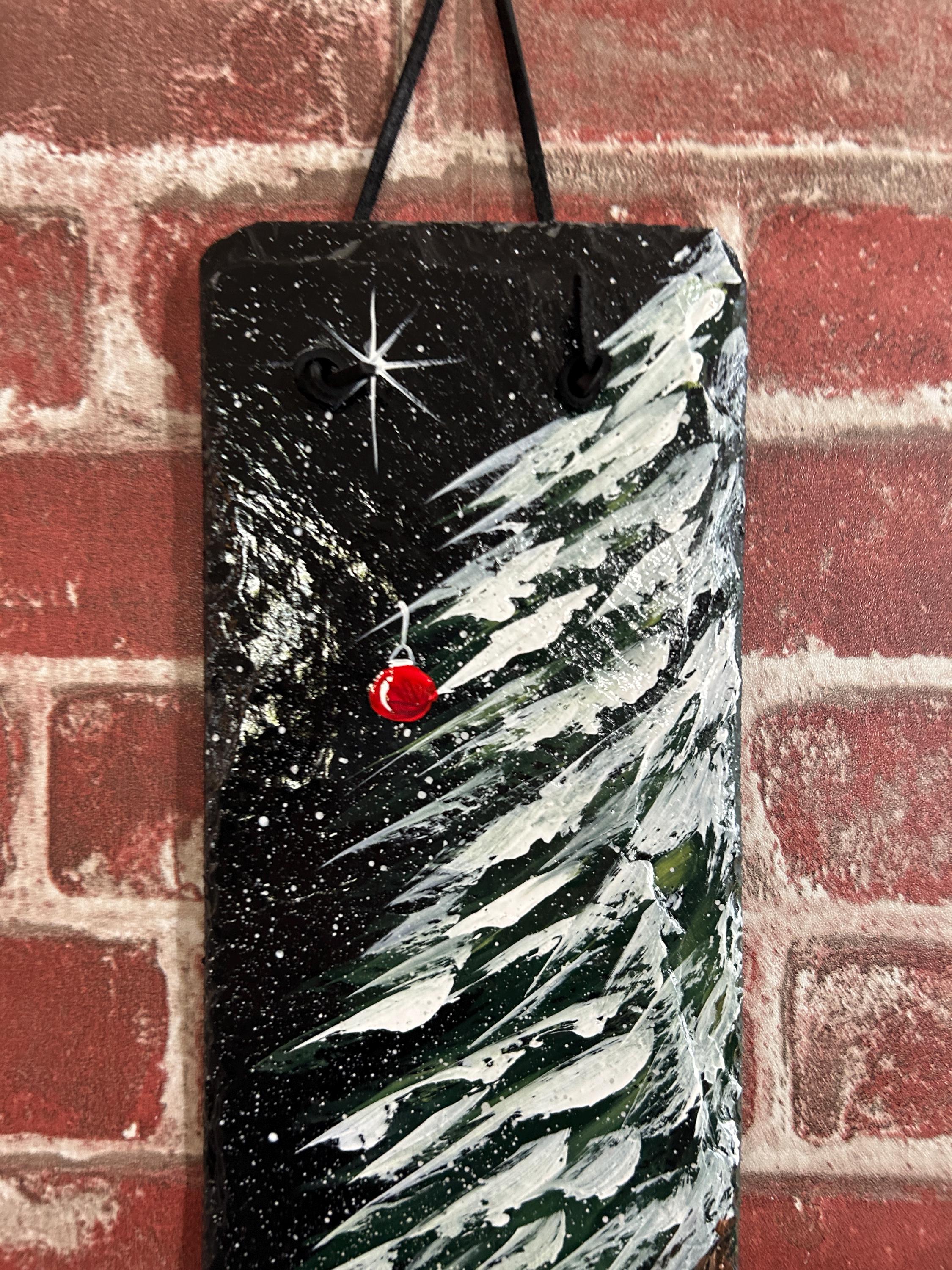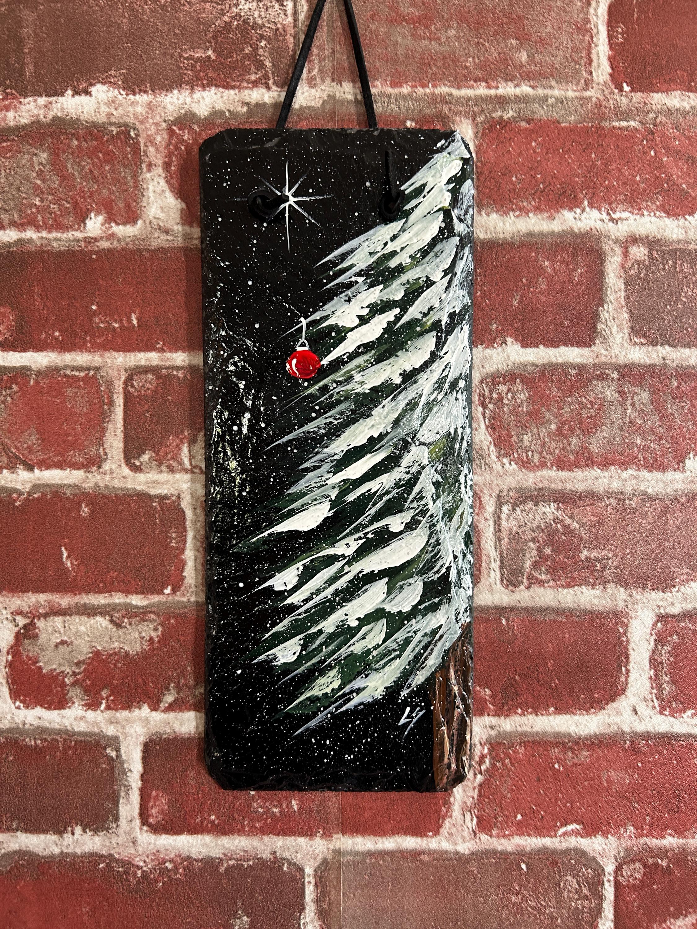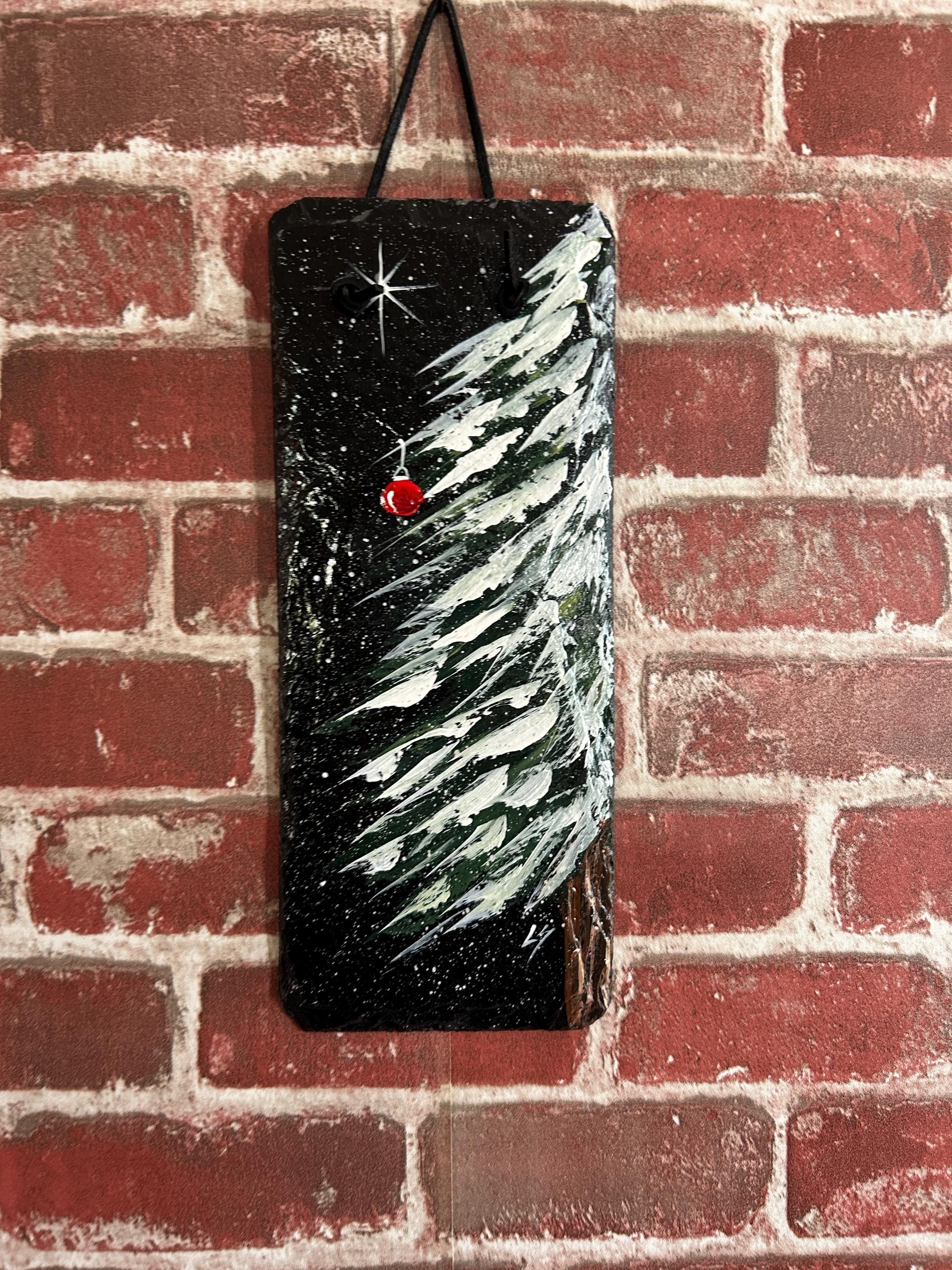 Hand Painted Christmas Tree Slate: Rustic Winter Wall Decor, Holiday door hanger