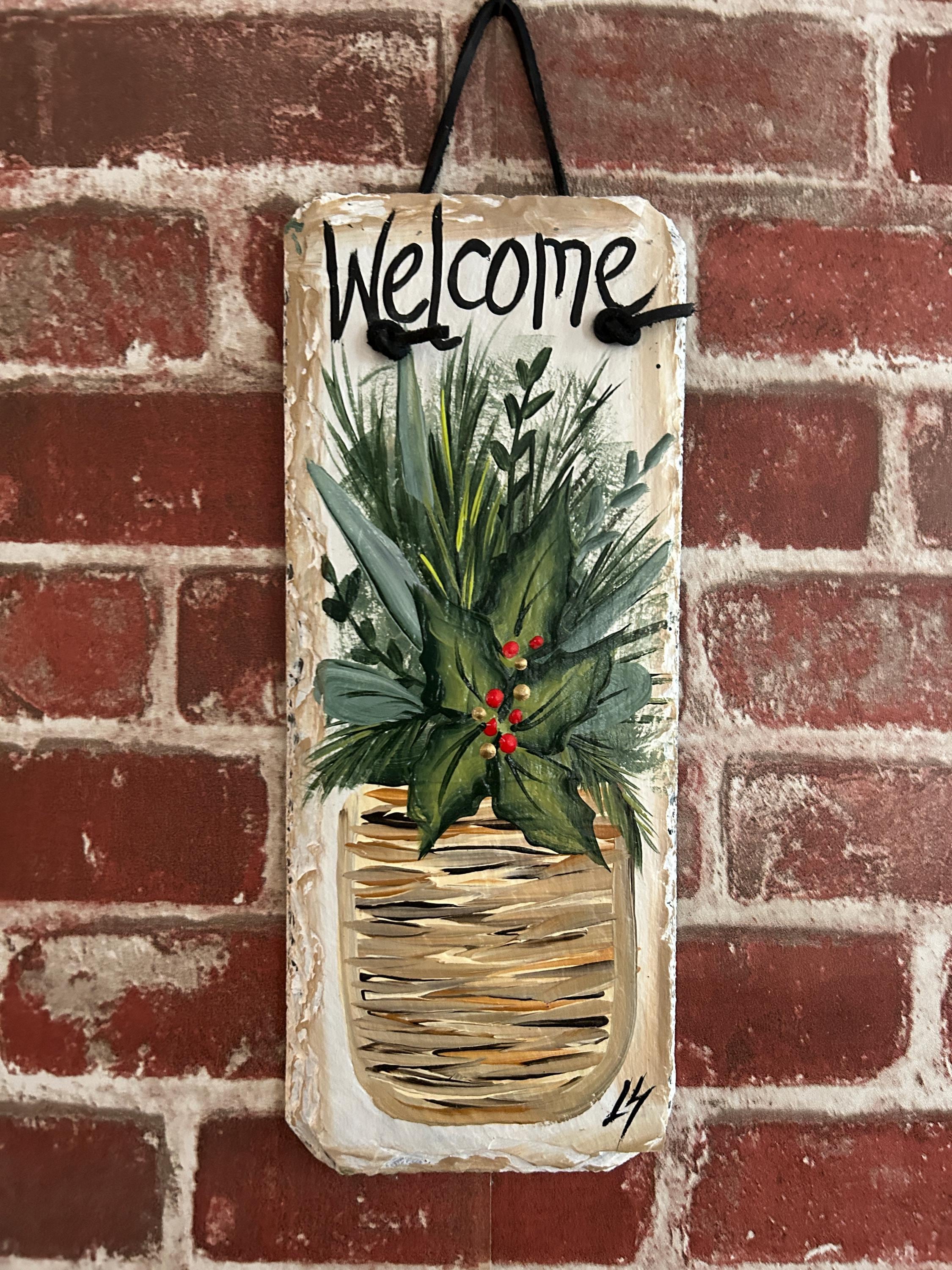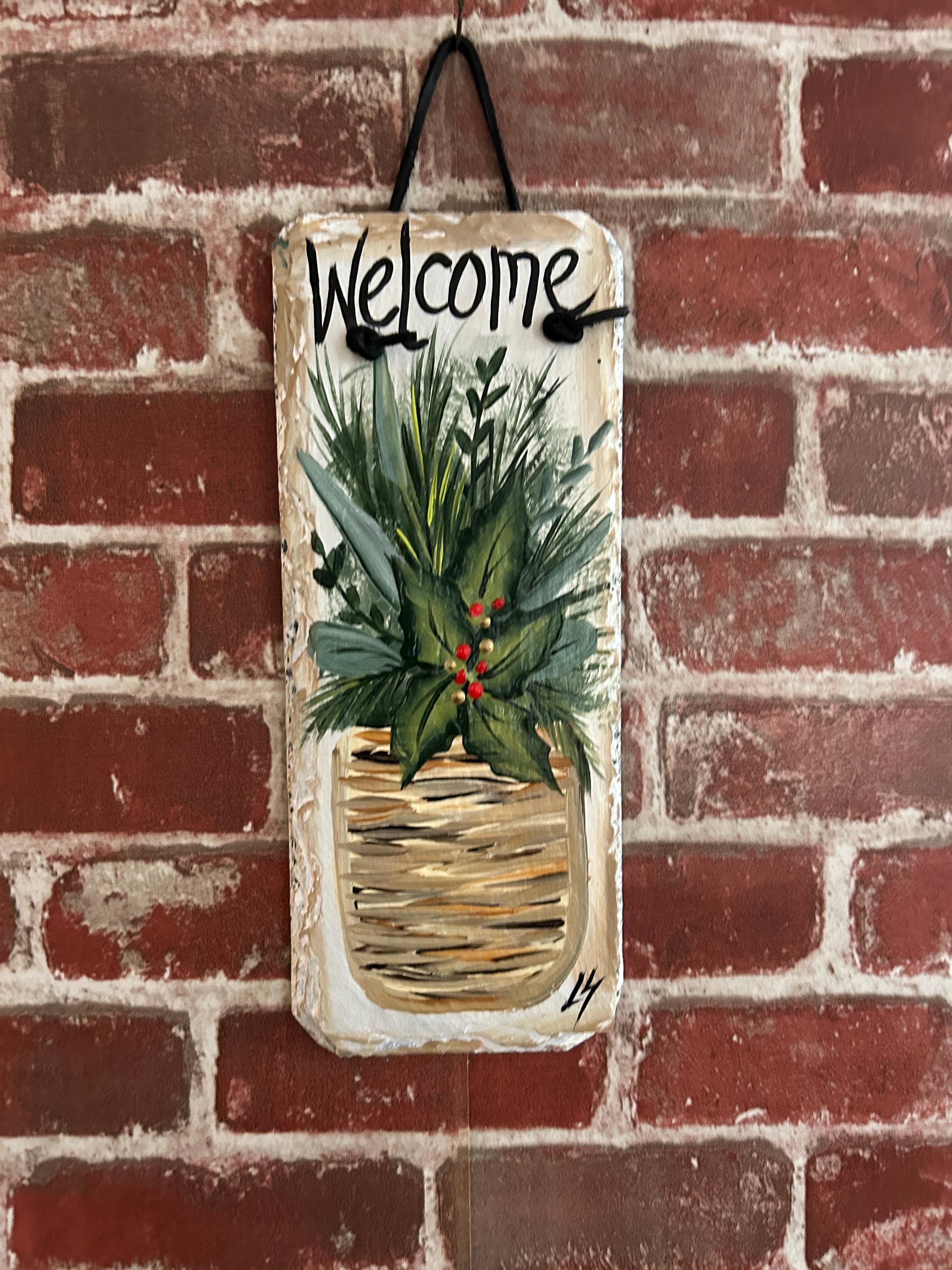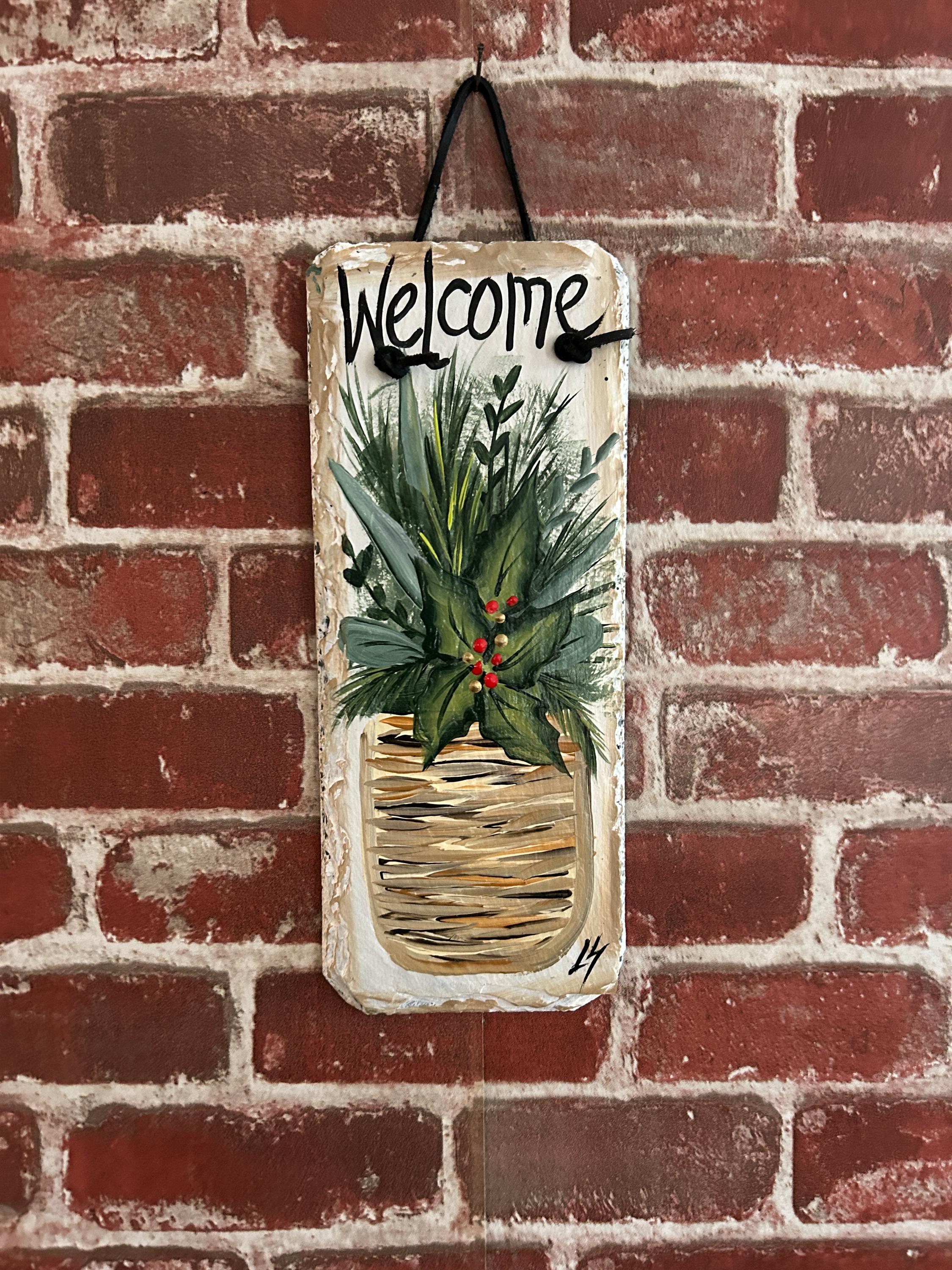 Winter Welcome sign, Winter Door hanger, Painted Slate, Winter Slate Sign, Holiday door hanger, Christmas welcome sign, Slate welcome plaque