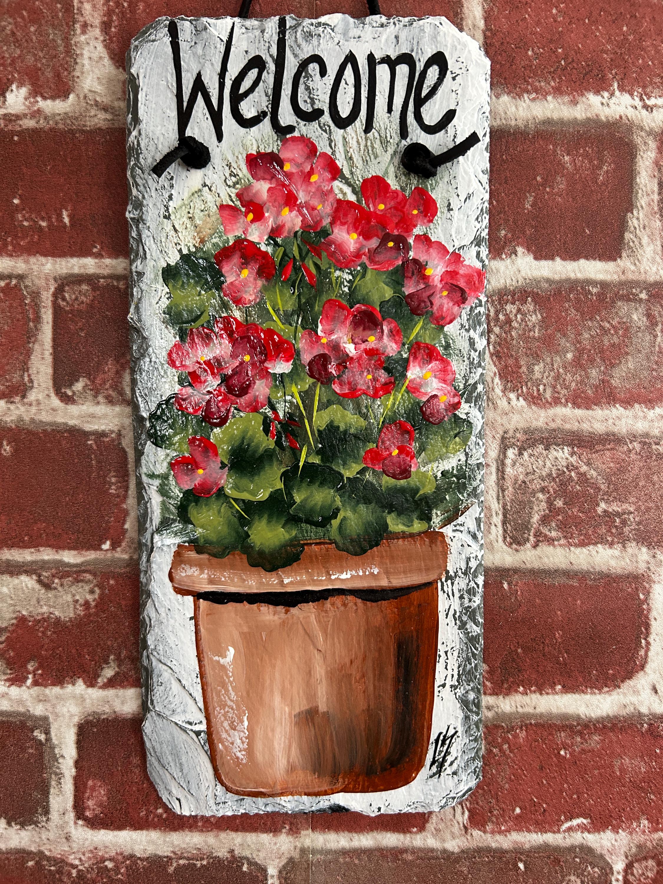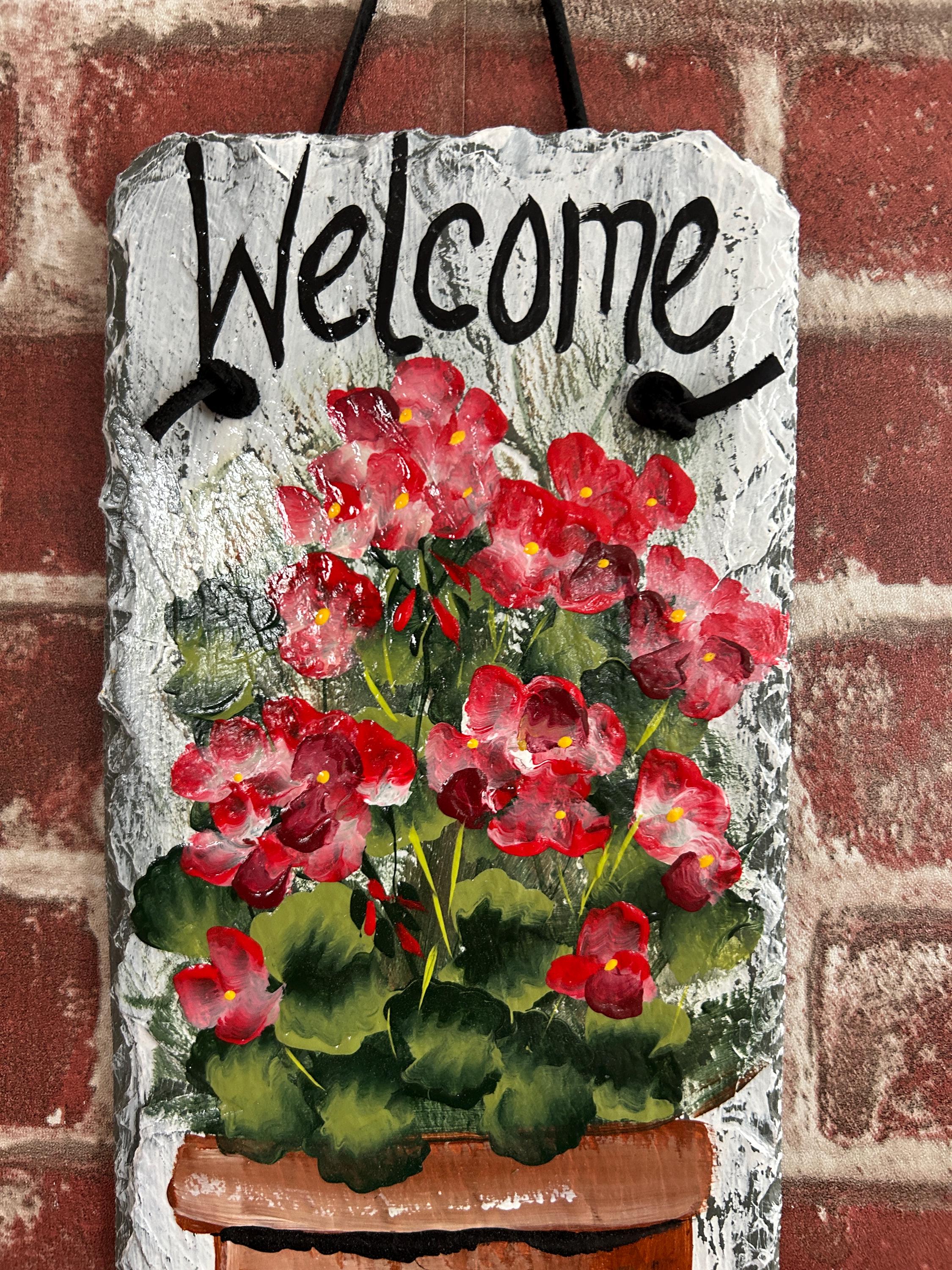 Painted slate welcome sign, 5.x 12 slate sign, welcome plaque, Porch decor, door hanger, welcome sign for apartment, small slate sign