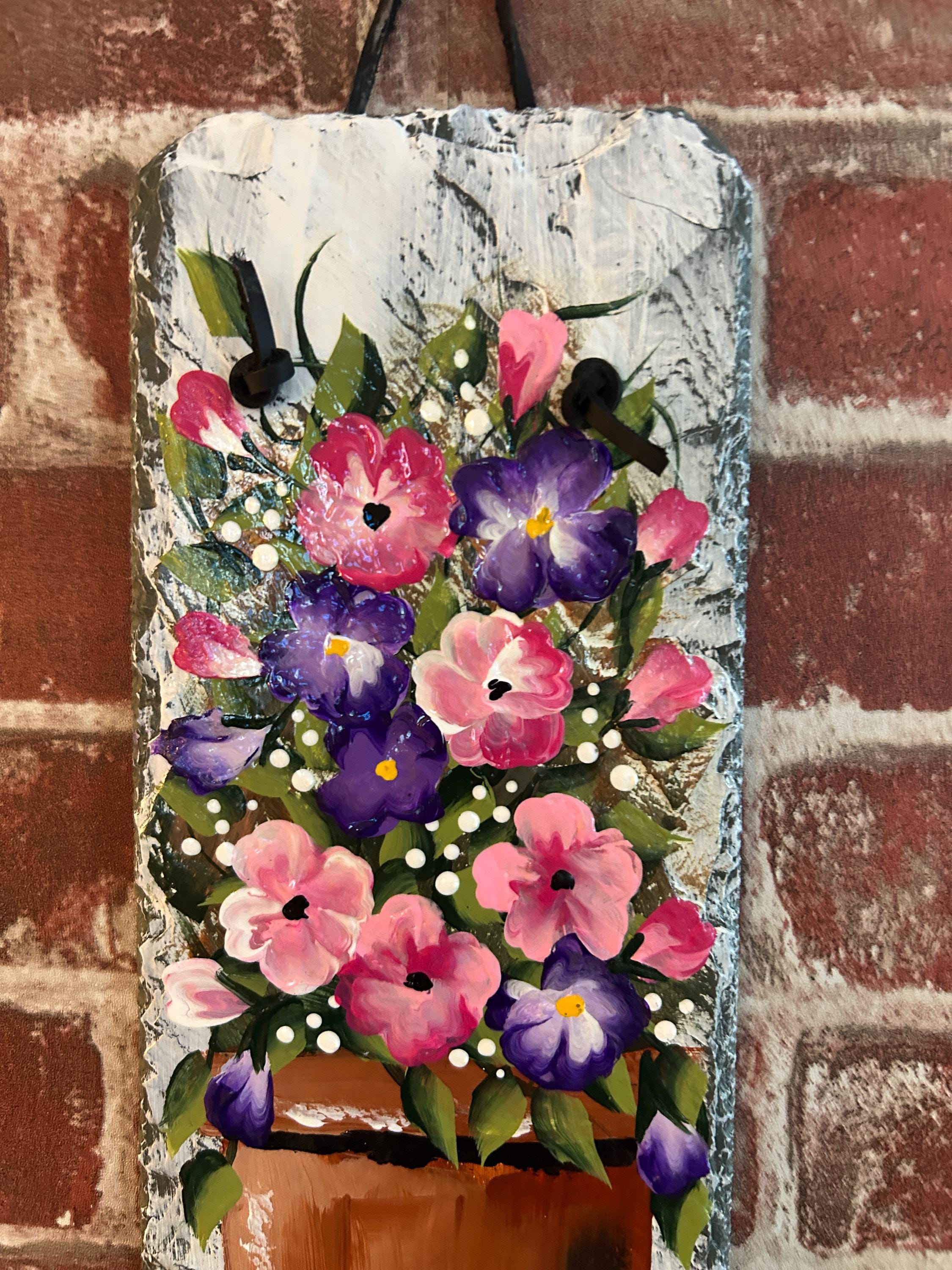 I hand select each slate and thoroughly clean and prepare them to meet my quality standards and become ready to paint. They are heavy and sturdy. Can be hung outdoors as well as inside.