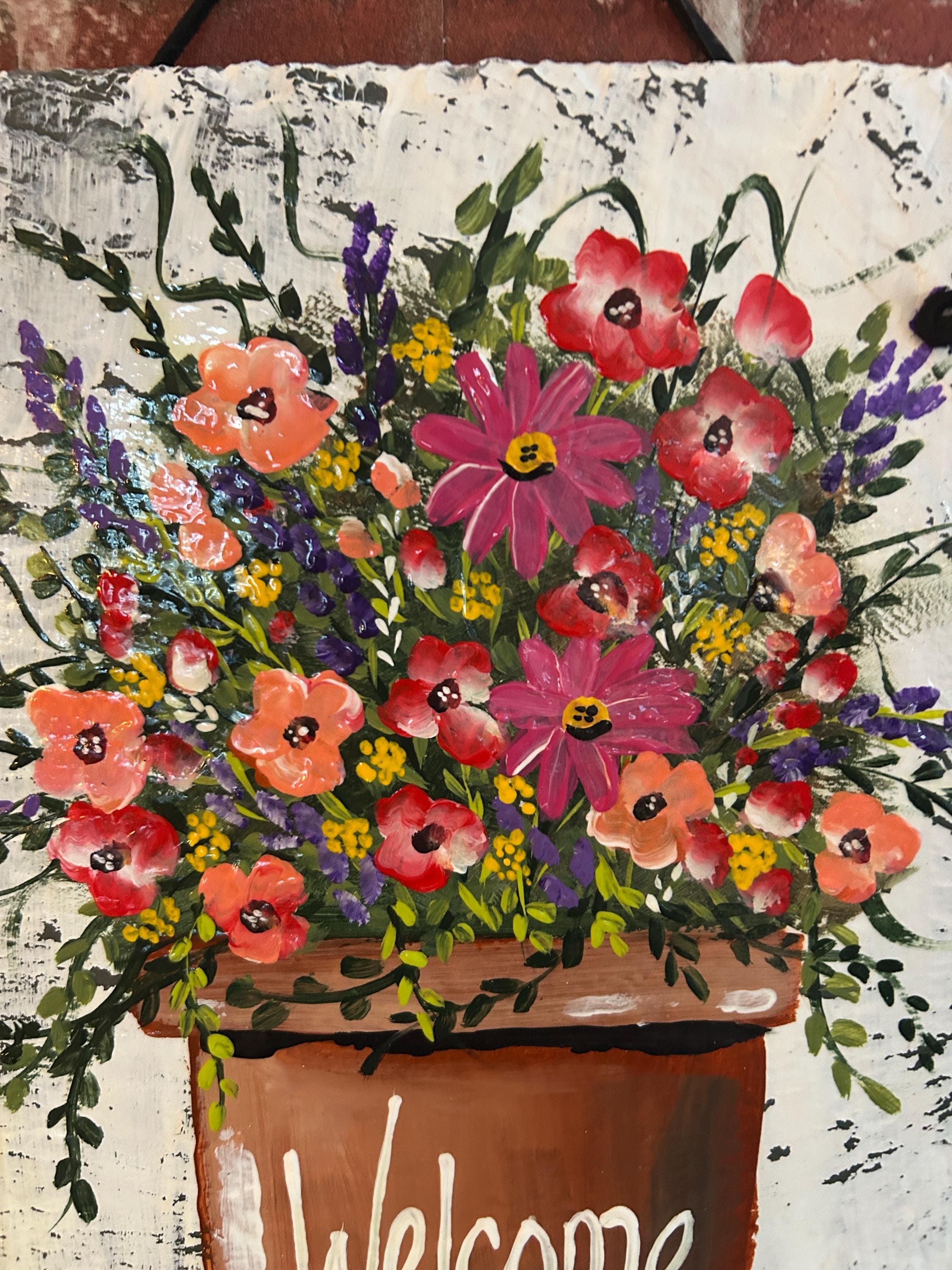 Hand Painted Slate sign, Spring Welcome sign, Front door Slate, Spring Slate Sign, door hanger, Spring slate, Slate welcome plaque