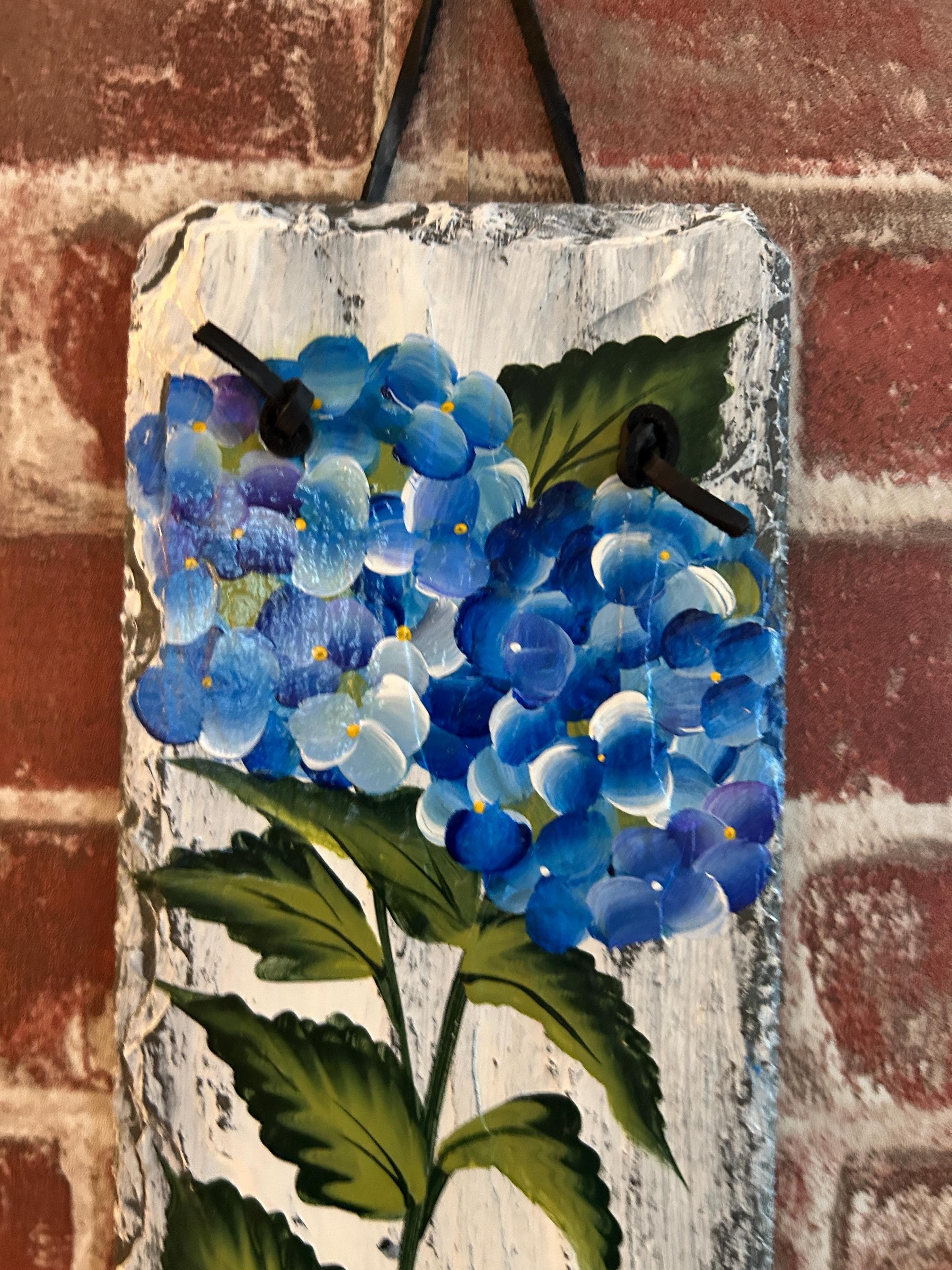 I hand select each slate and thoroughly clean and prepare them to meet my quality standards and become ready to paint. They are heavy and sturdy. Can be hung outdoors as well as inside.