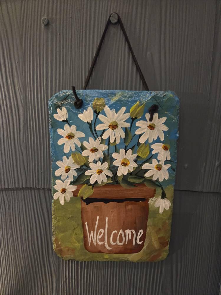 Painted slate welcome sign, slate sign, welcome plaque, Porch decor, door hanger, welcome sign for apartment, small slate sign