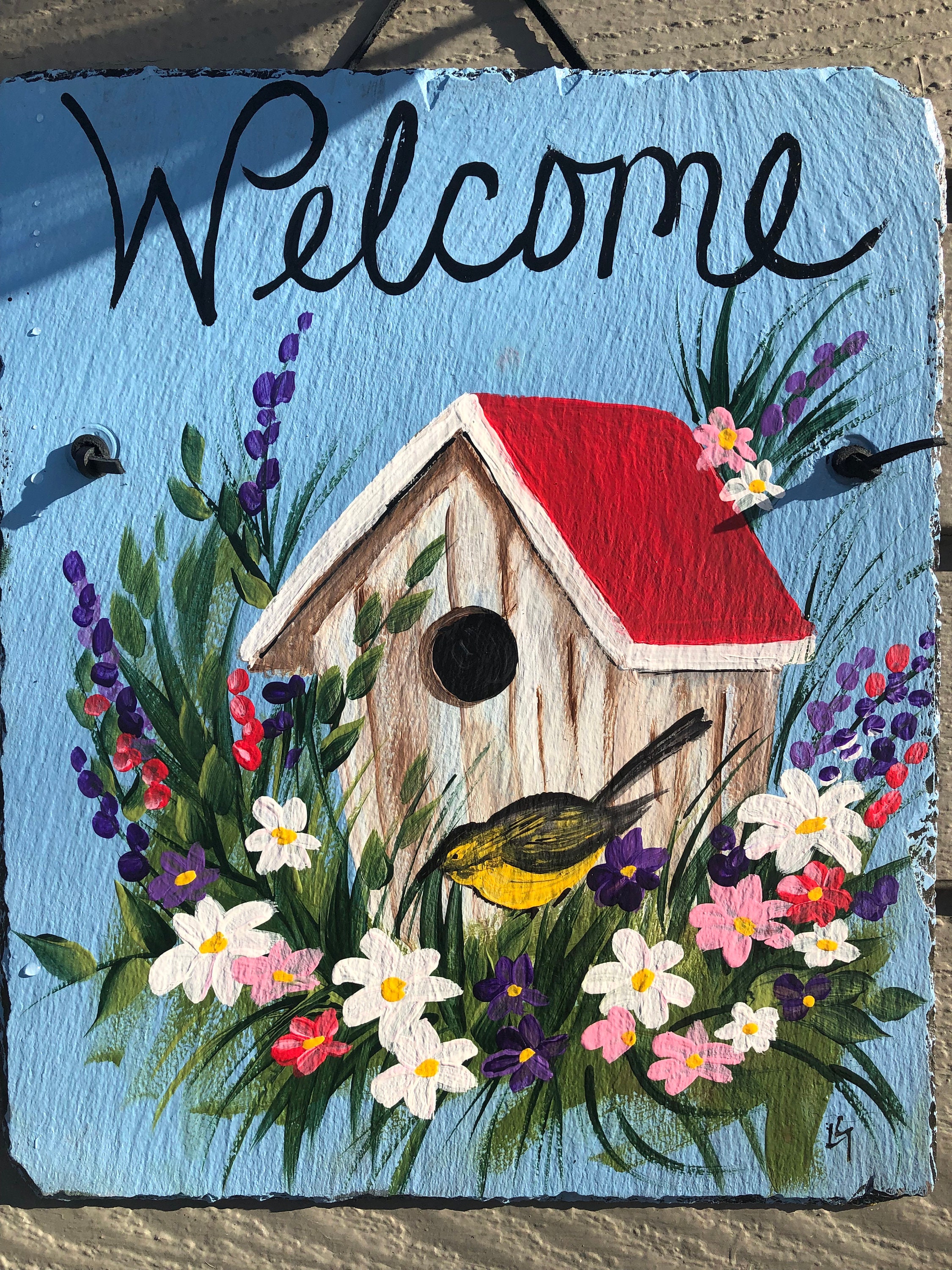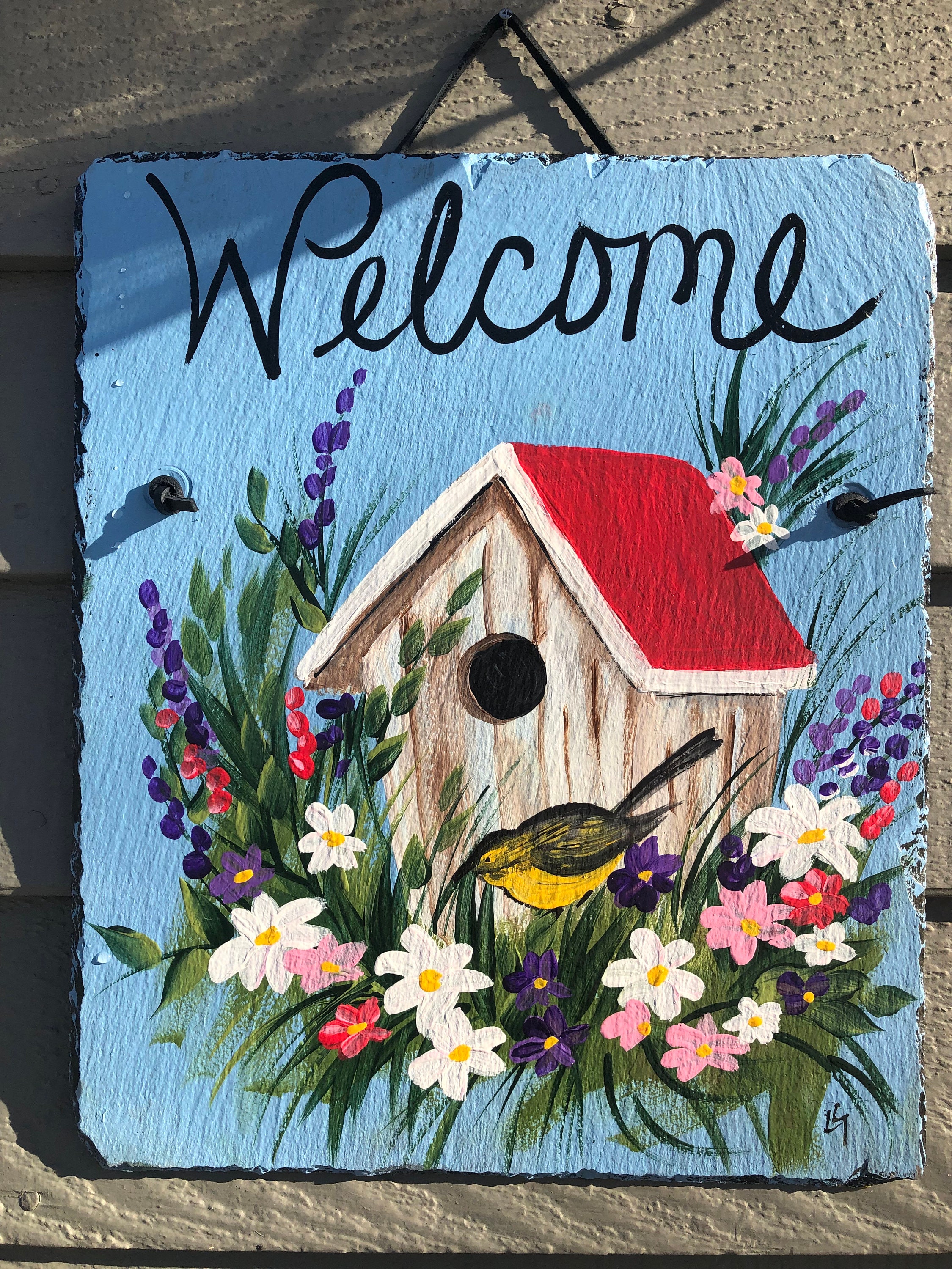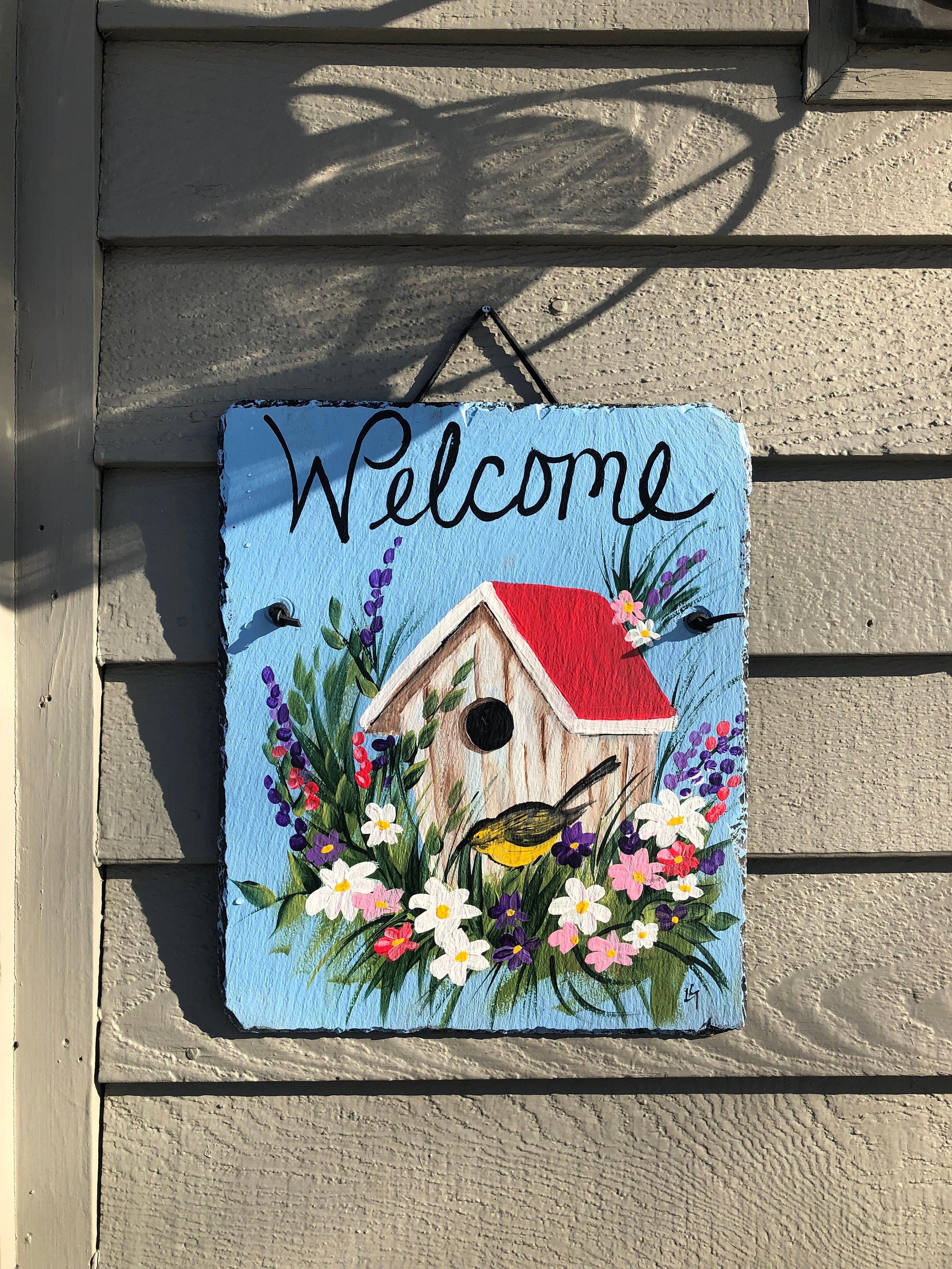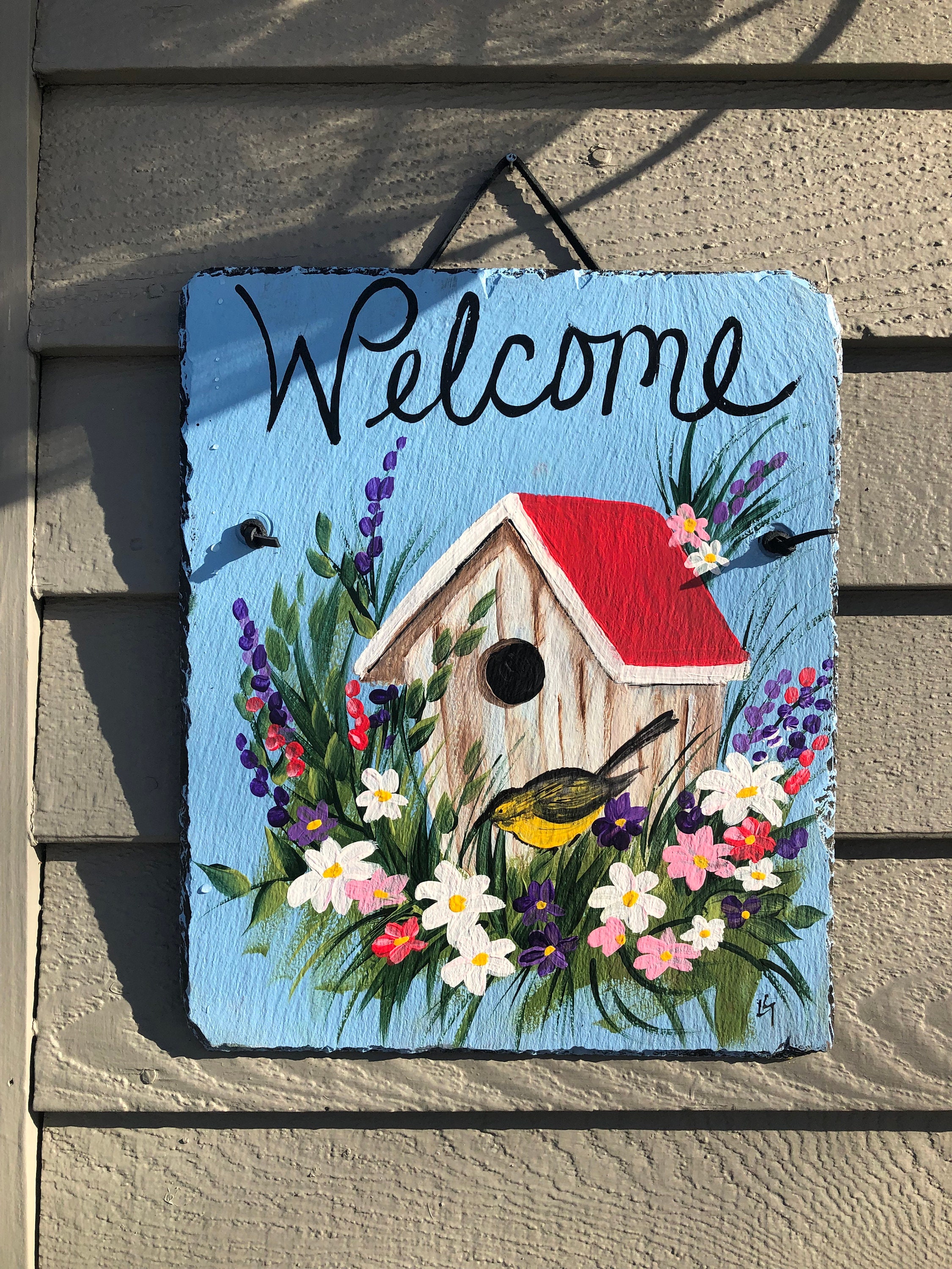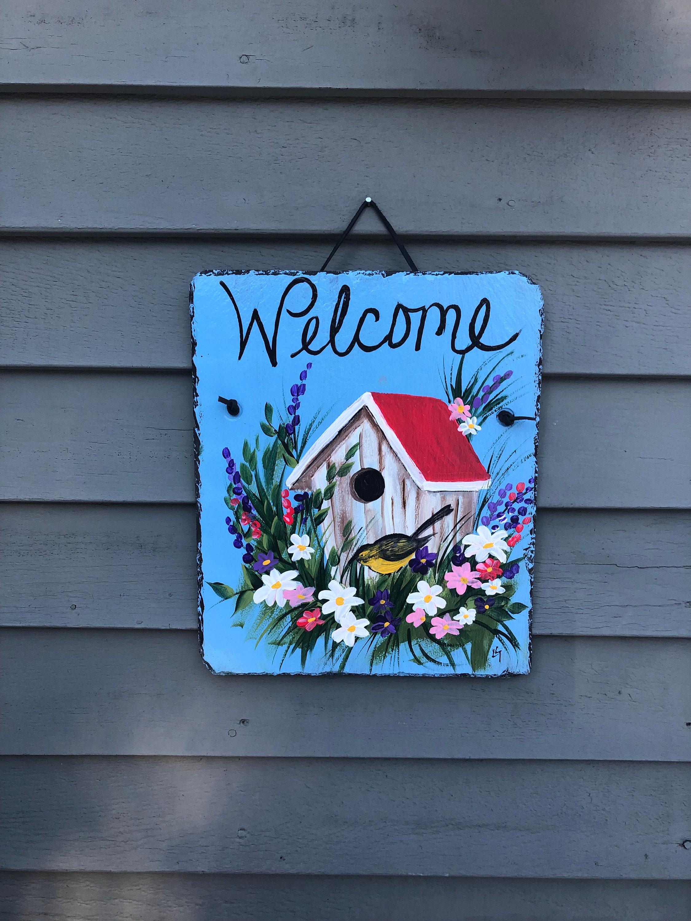 Hand Painted Slates-Front door decoration, Slate door hanger, spring door hanger, Yard Art, Front Door decor, door sign, Garden decor, mom gift, porch decor