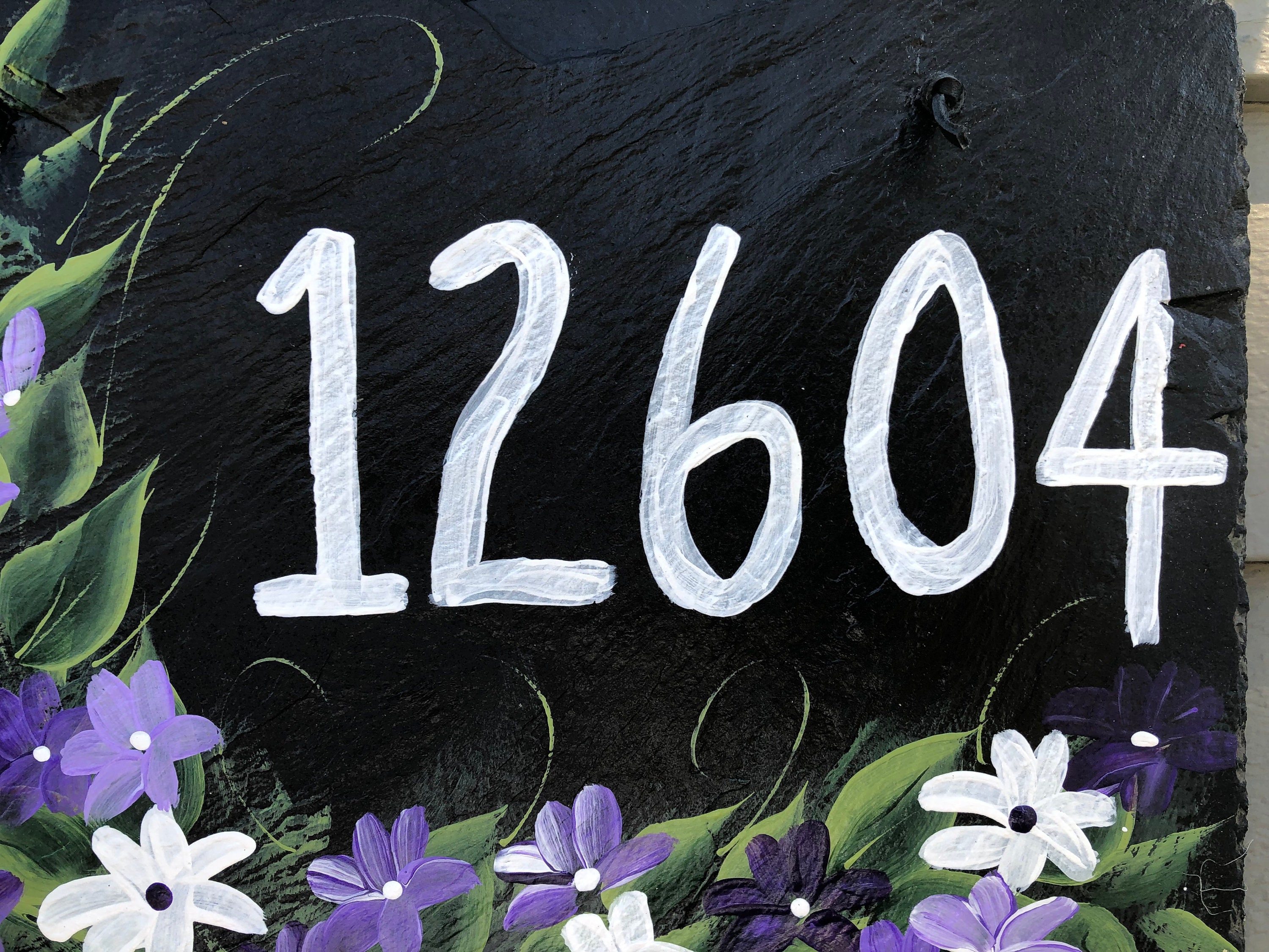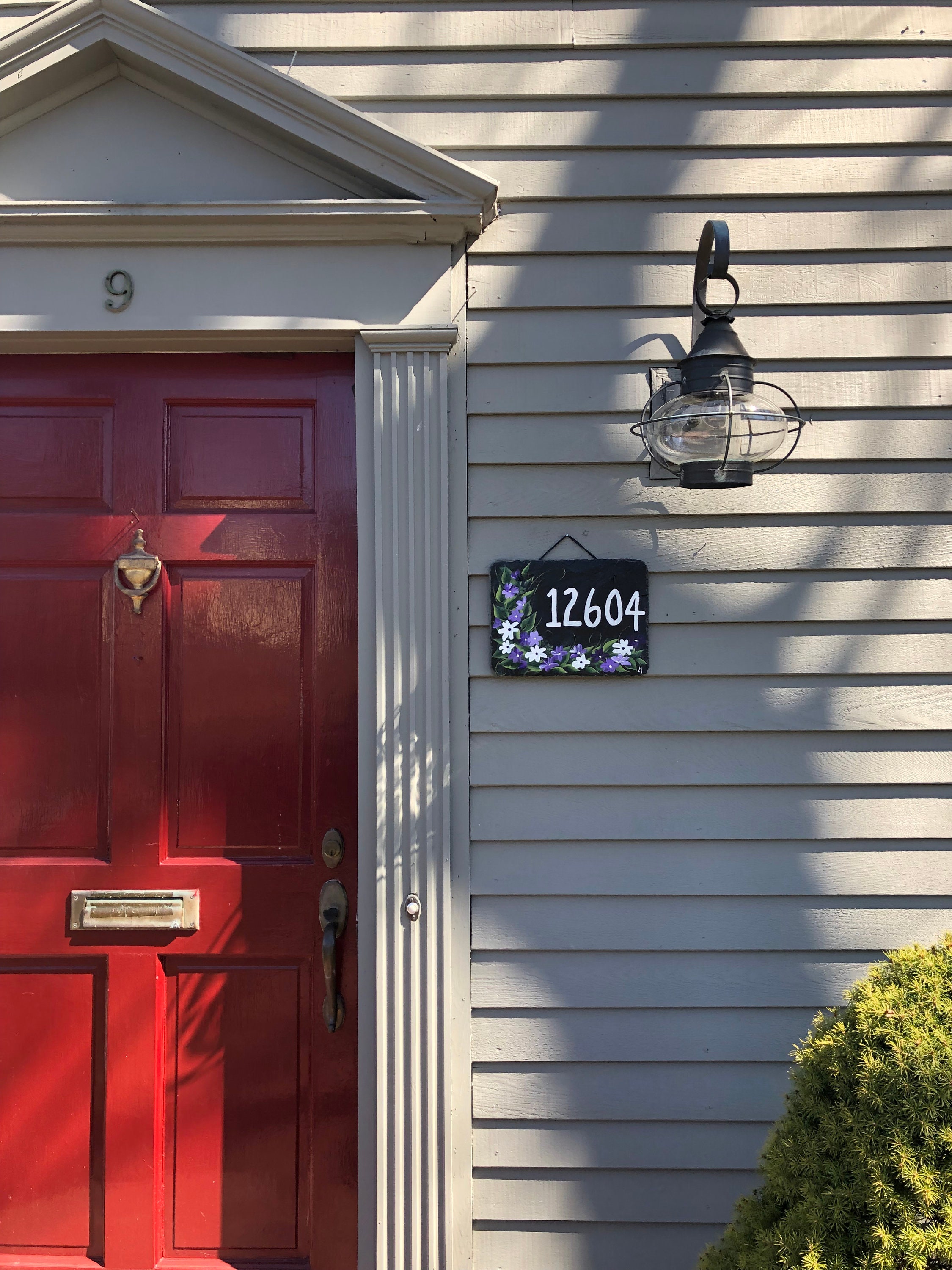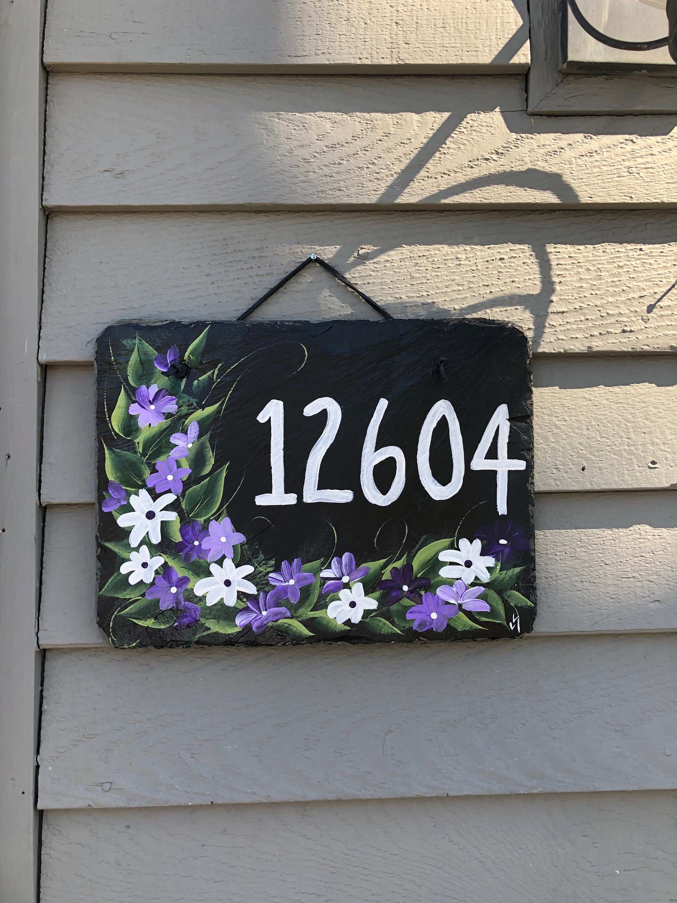 Spring House Number Sign, Painted Slate address sign, Tulips Welcome Sign, House number plaque, door hanger, Painted slate