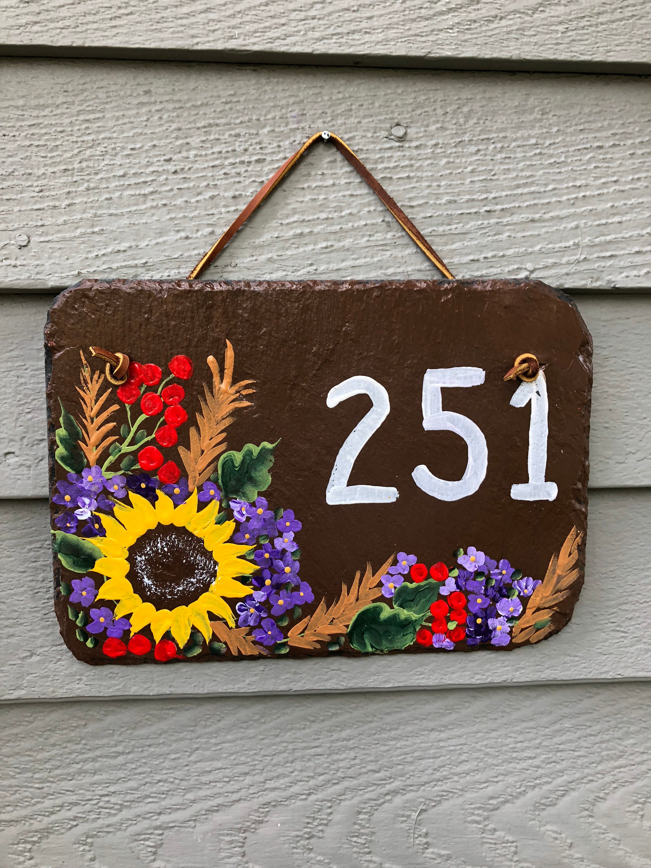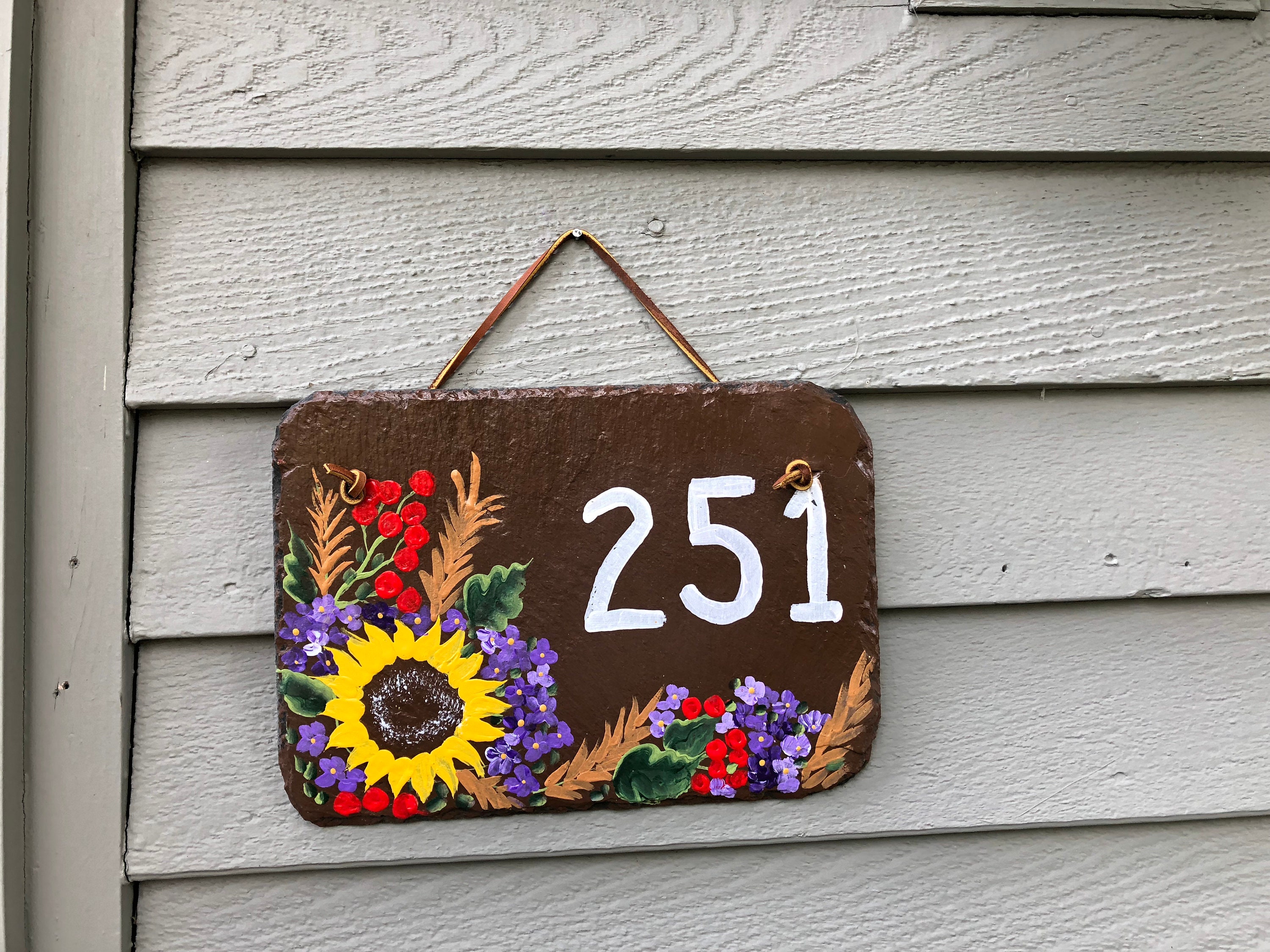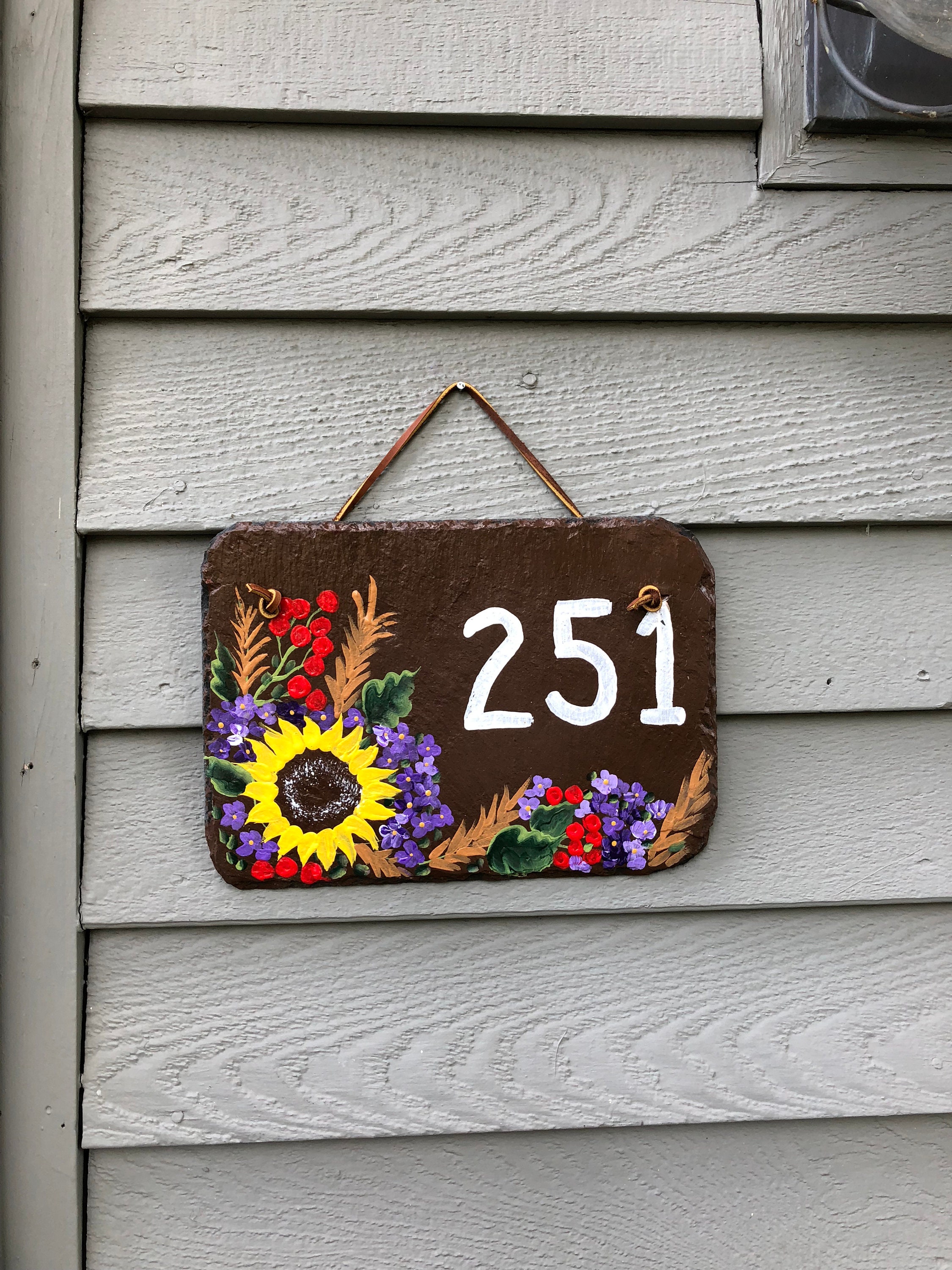 Custom Hand Painted Slate Address Sign, House Number sign, House number plaque, Door hanger, Address sign for house, Address plaque*** MAKE A NOTE ON ORDER WHAT HOUSE NUMBER YOU WANT PAINTED ON SLATE****
