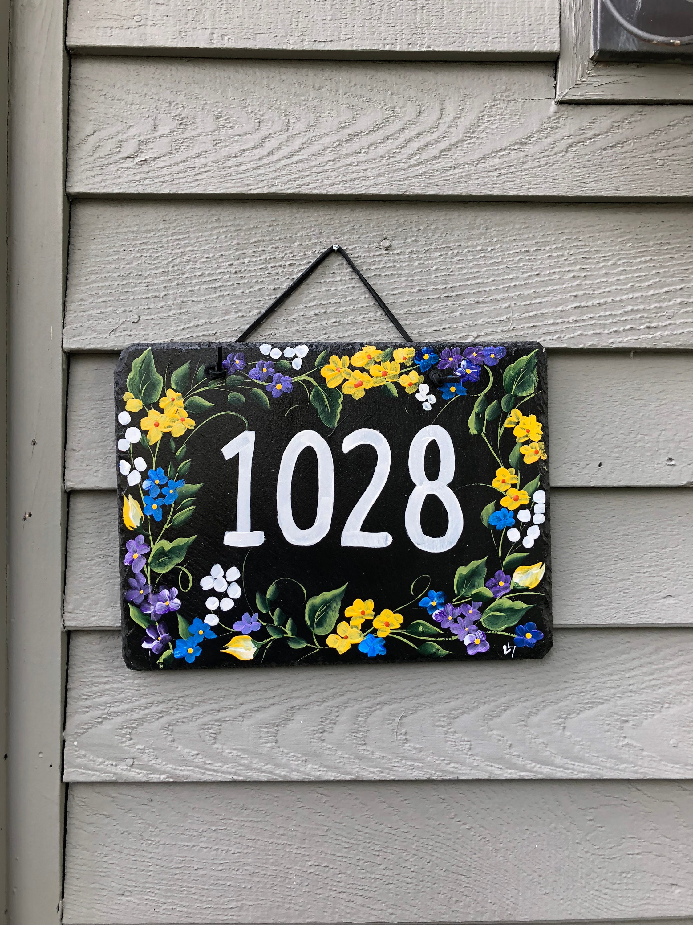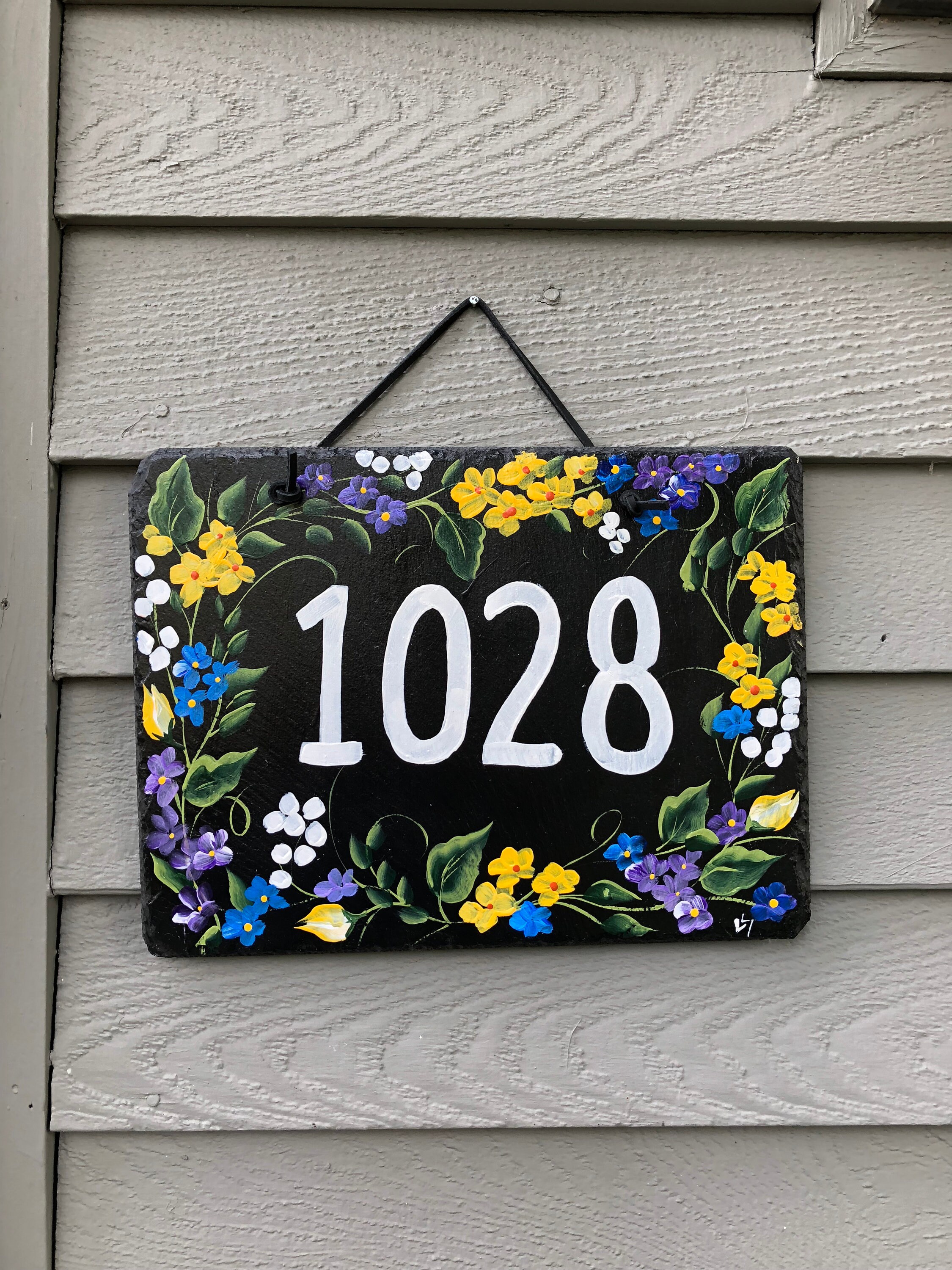 Custom Hand Painted Slate Address Sign, House Number sign, House number plaque, Door hanger, Address sign for house, Address plaque*** MAKE A NOTE ON ORDER WHAT HOUSE NUMBER YOU WANT PAINTED ON SLATE****