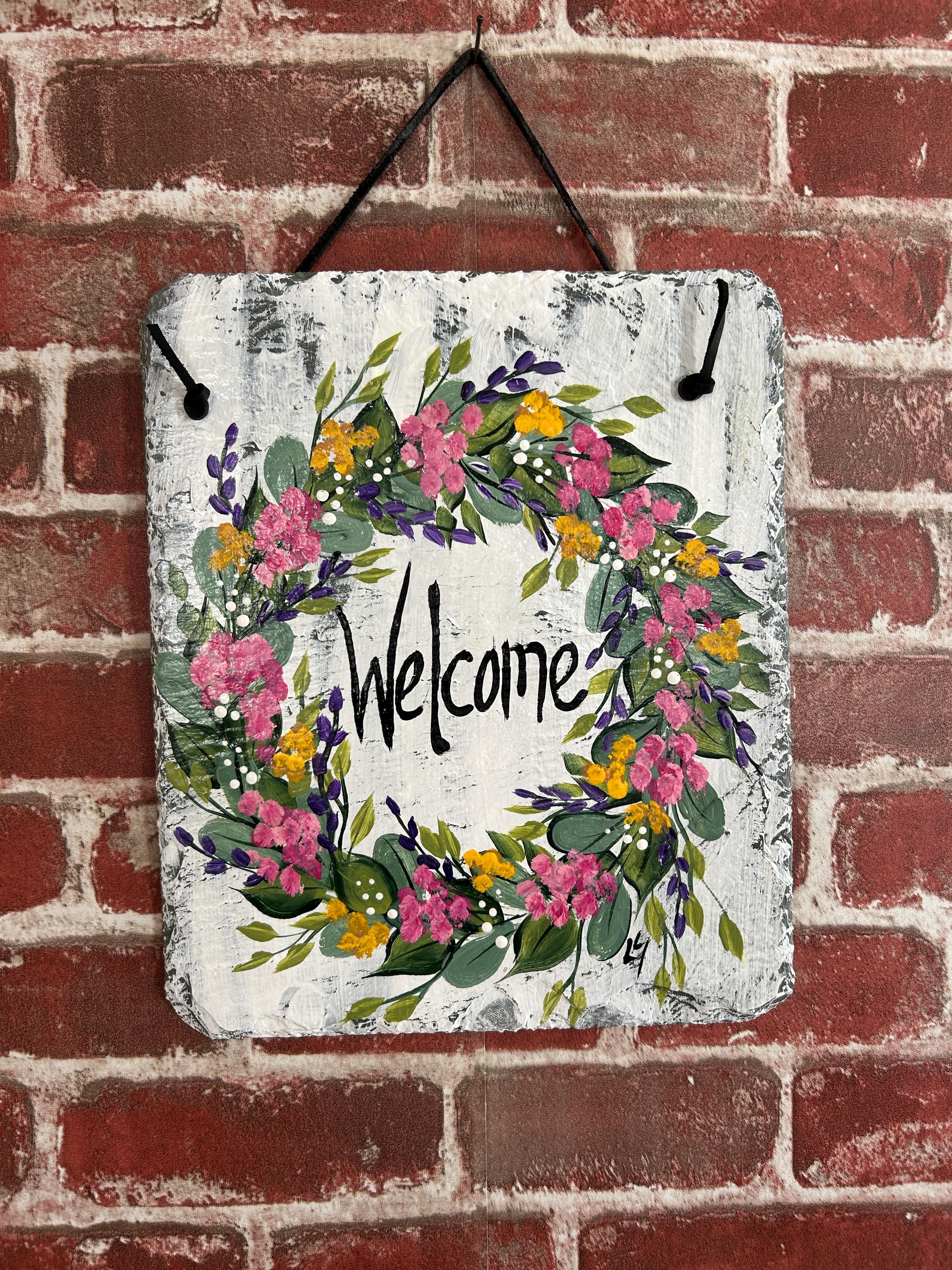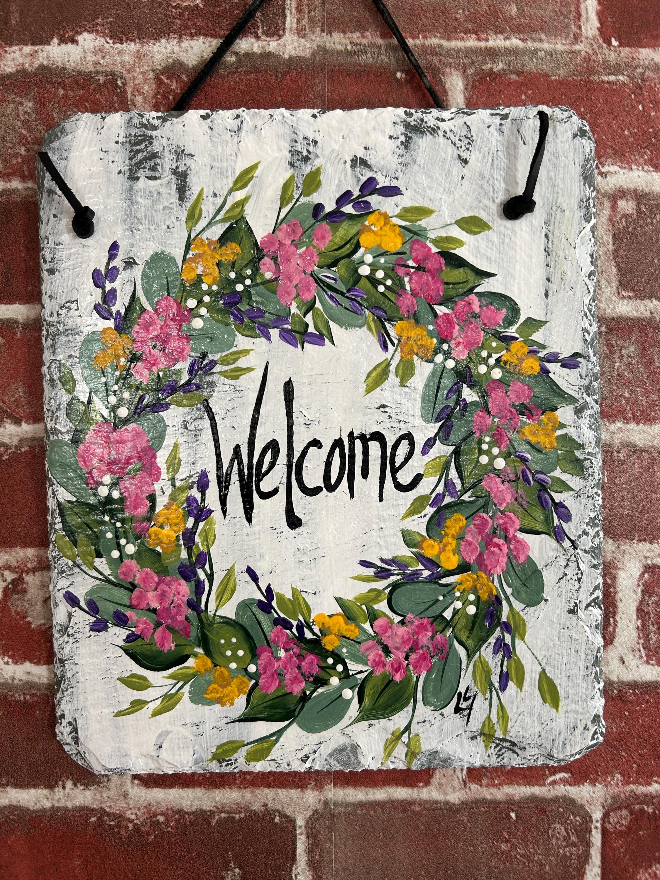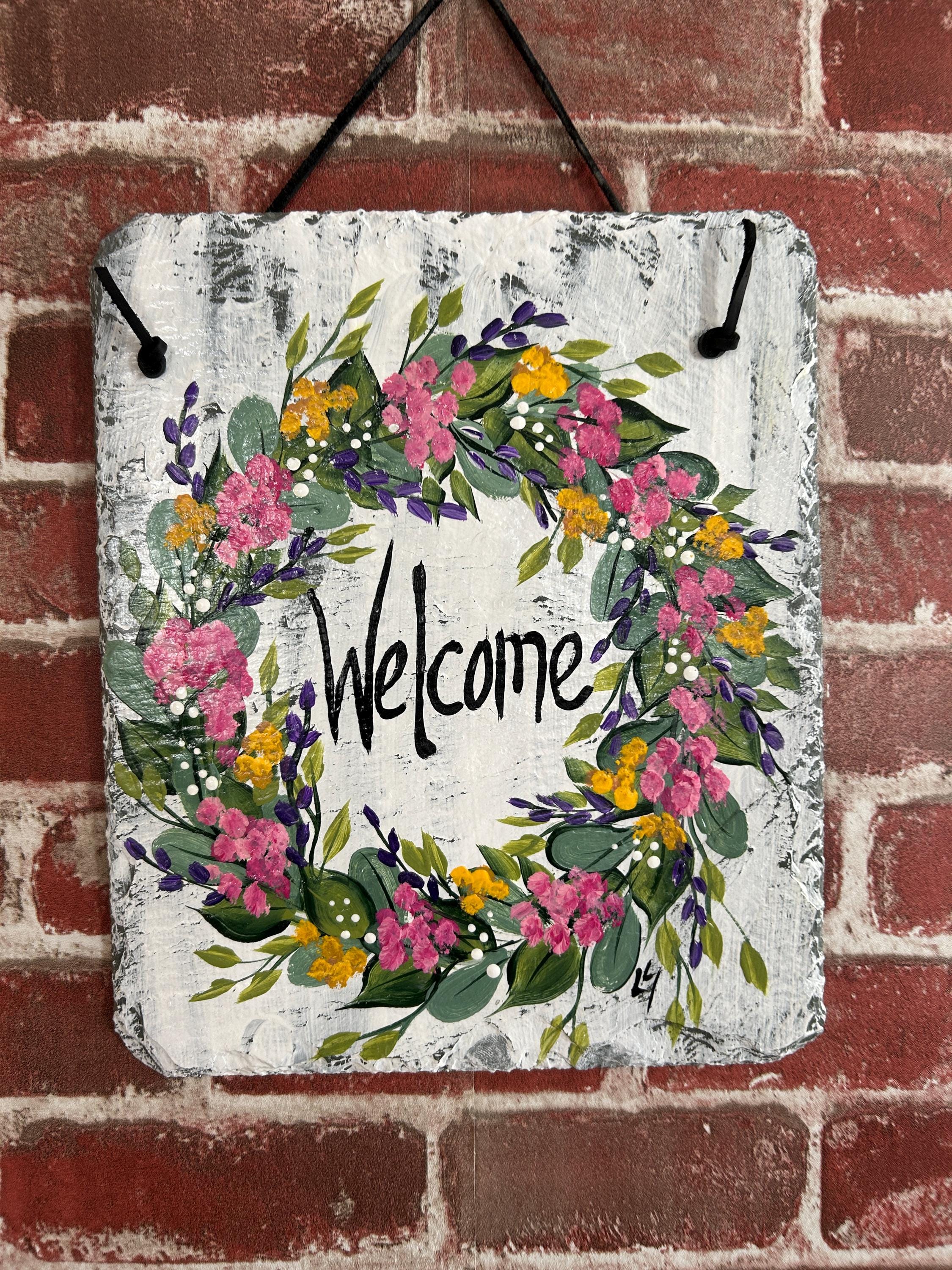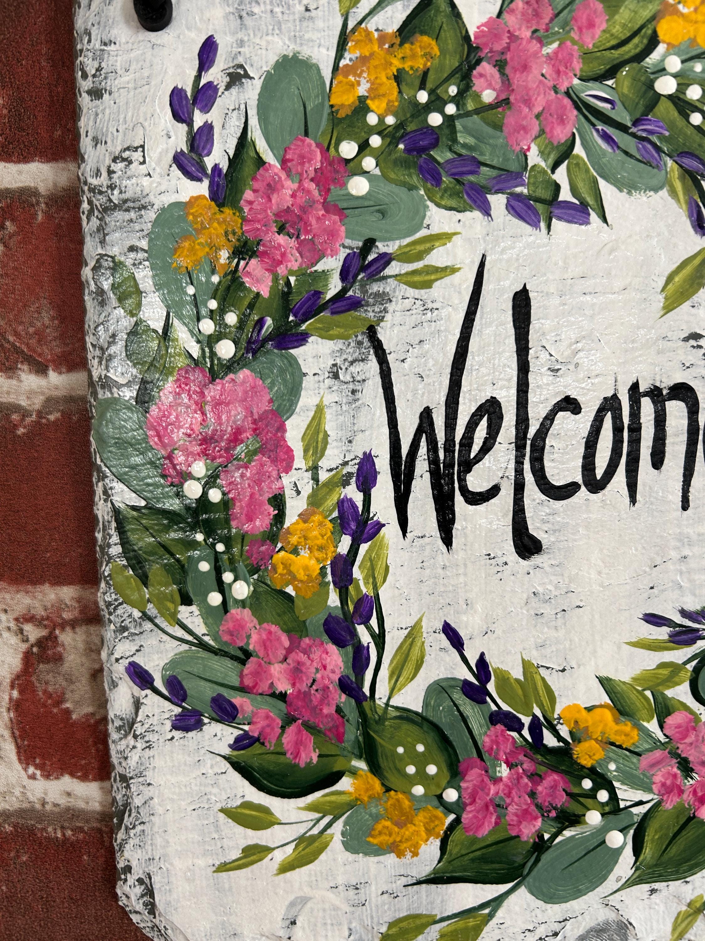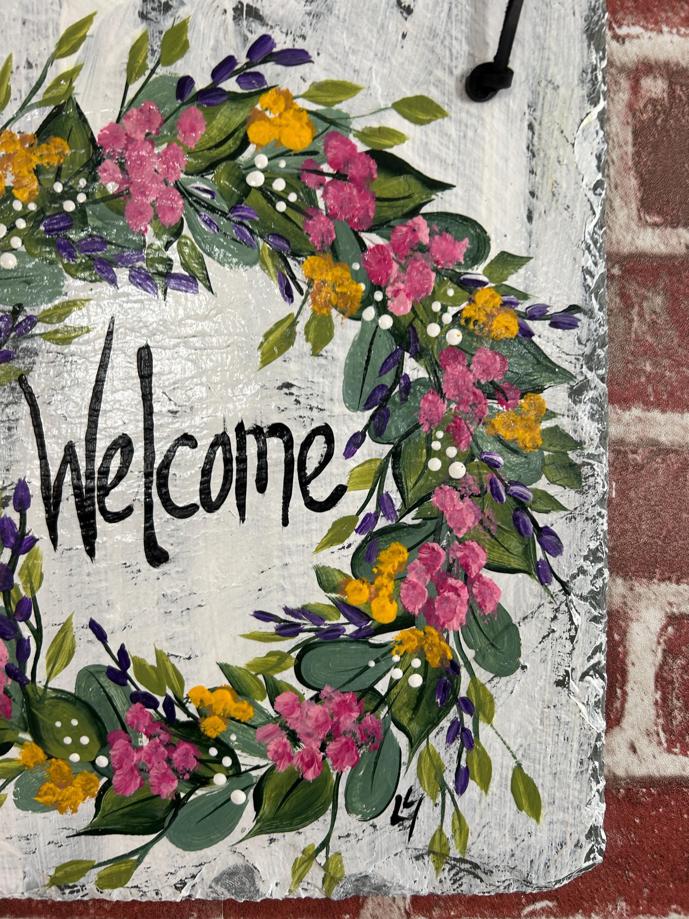 Hand Painted Slate sign, Spring Welcome sign, Front door Slate, Spring Slate Sign, door hanger, Spring slate, Slate welcome plaque