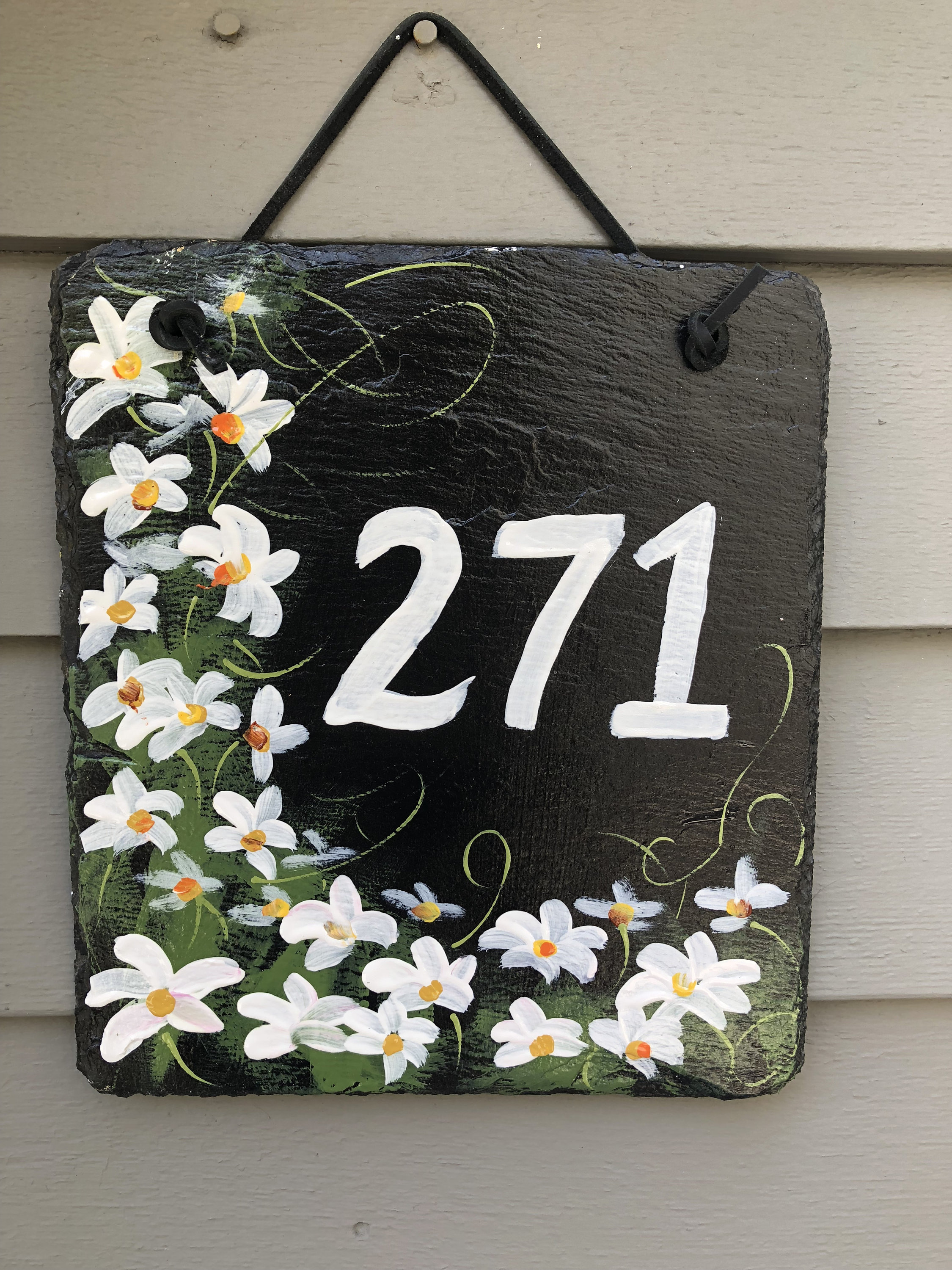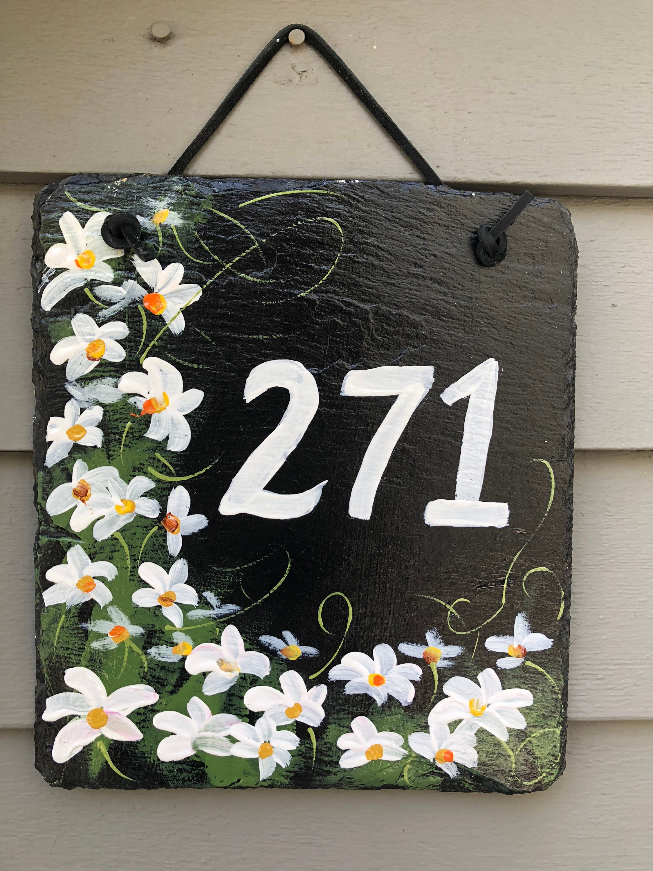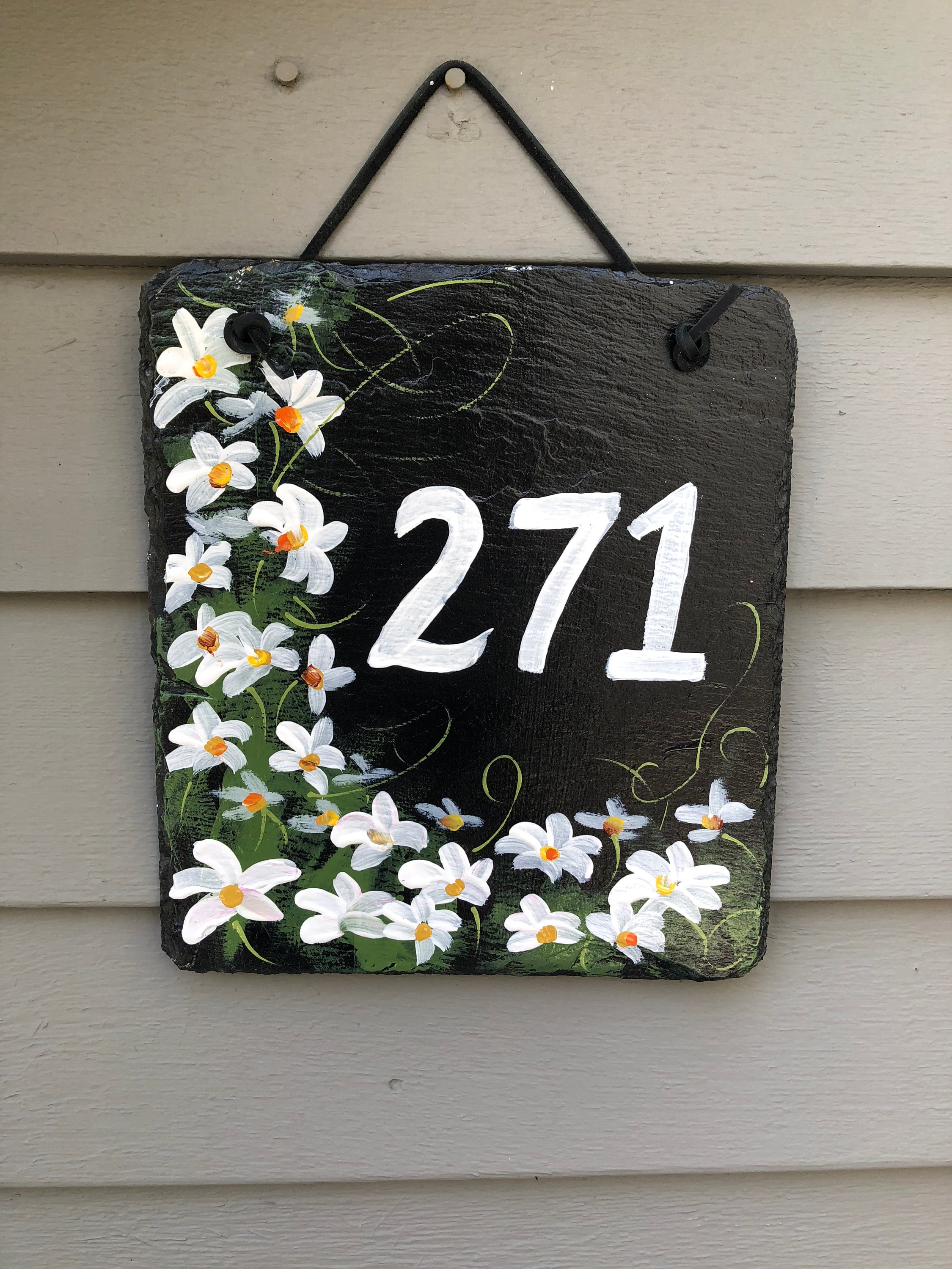 Custom Hand Painted Slate Address Sign, House Number sign, House number plaque, Door hanger, Address sign for house, Address plaque*** MAKE A NOTE ON ORDER WHAT HOUSE NUMBER YOU WANT PAINTED ON SLATE****
