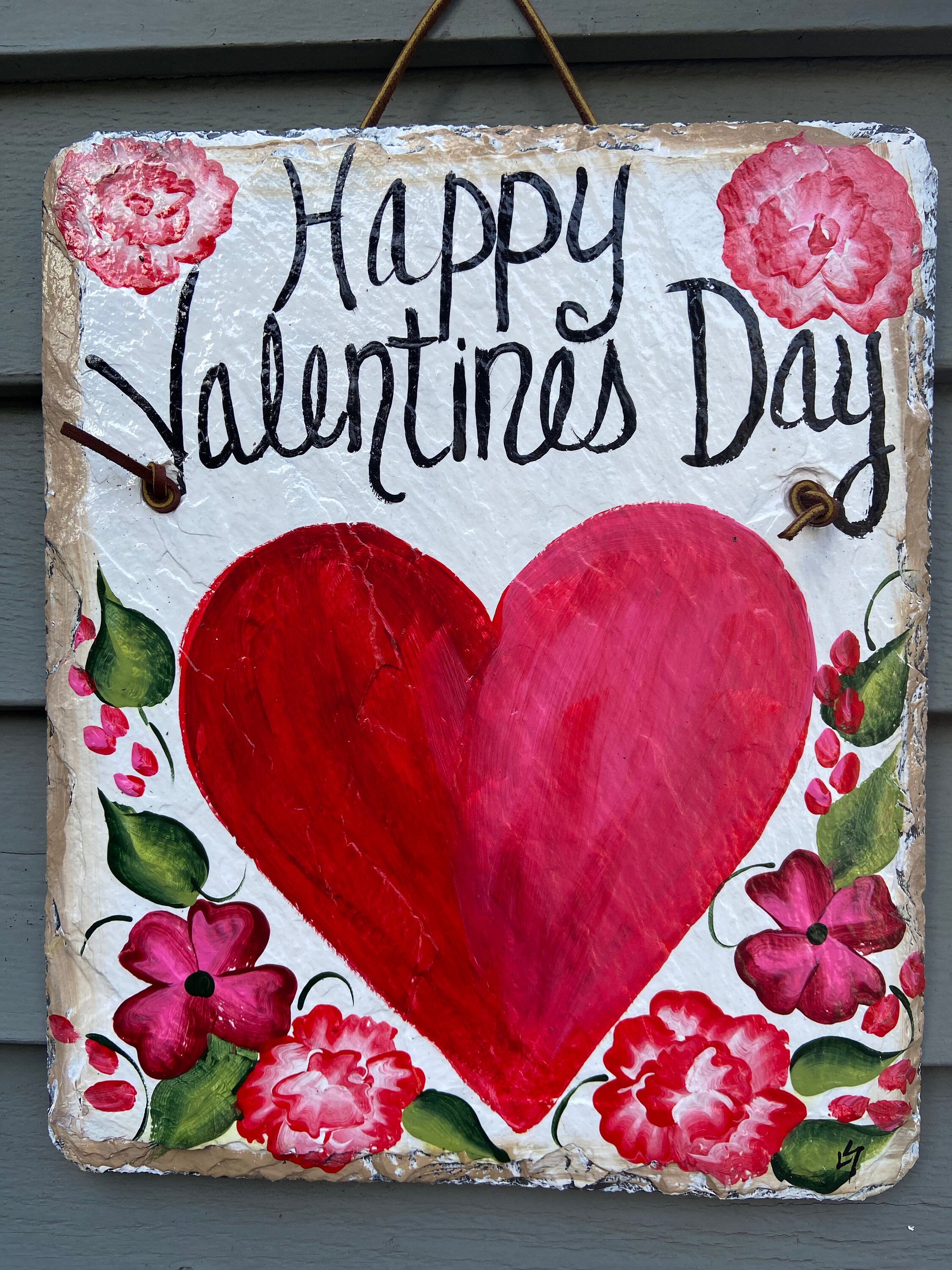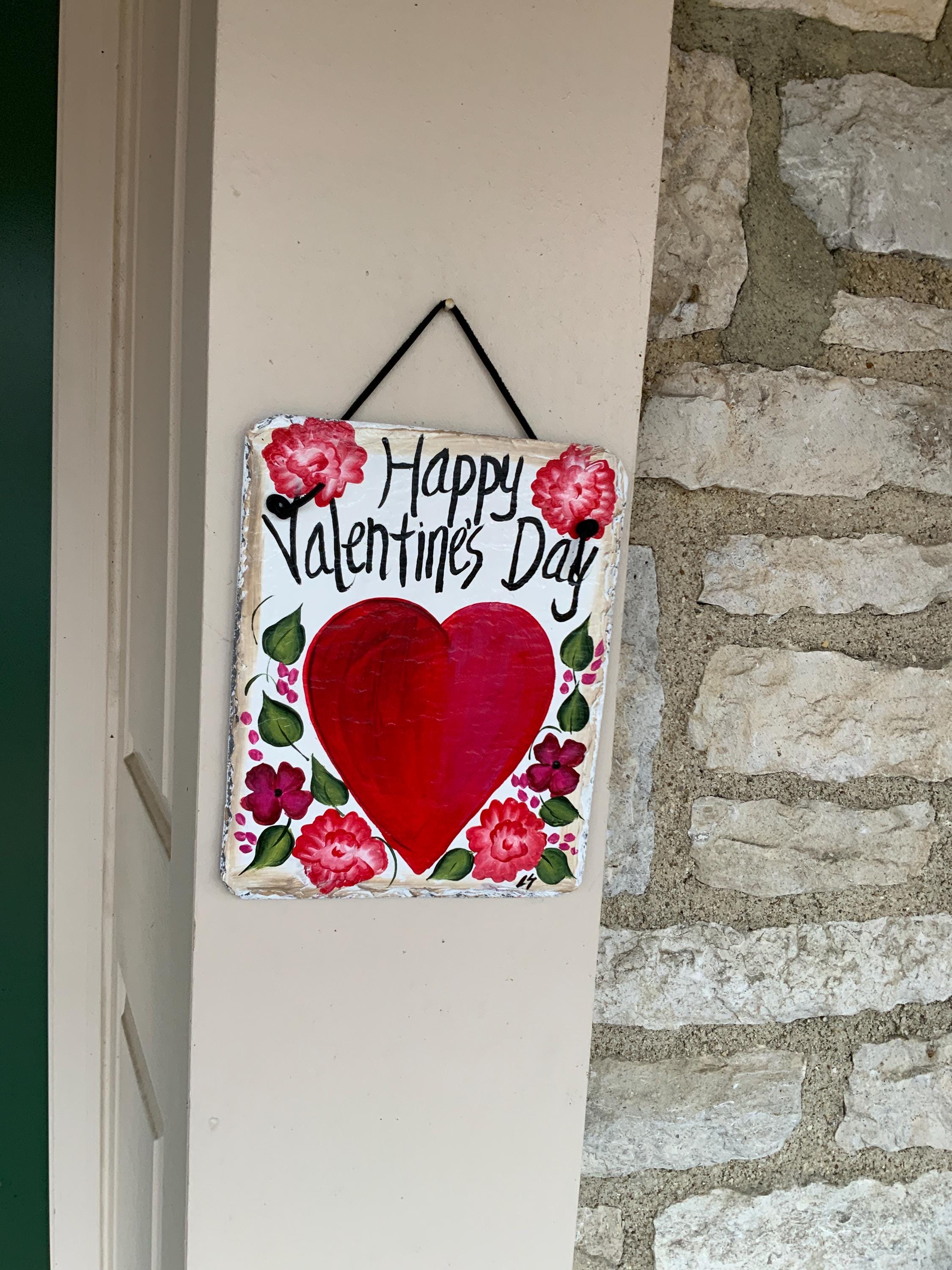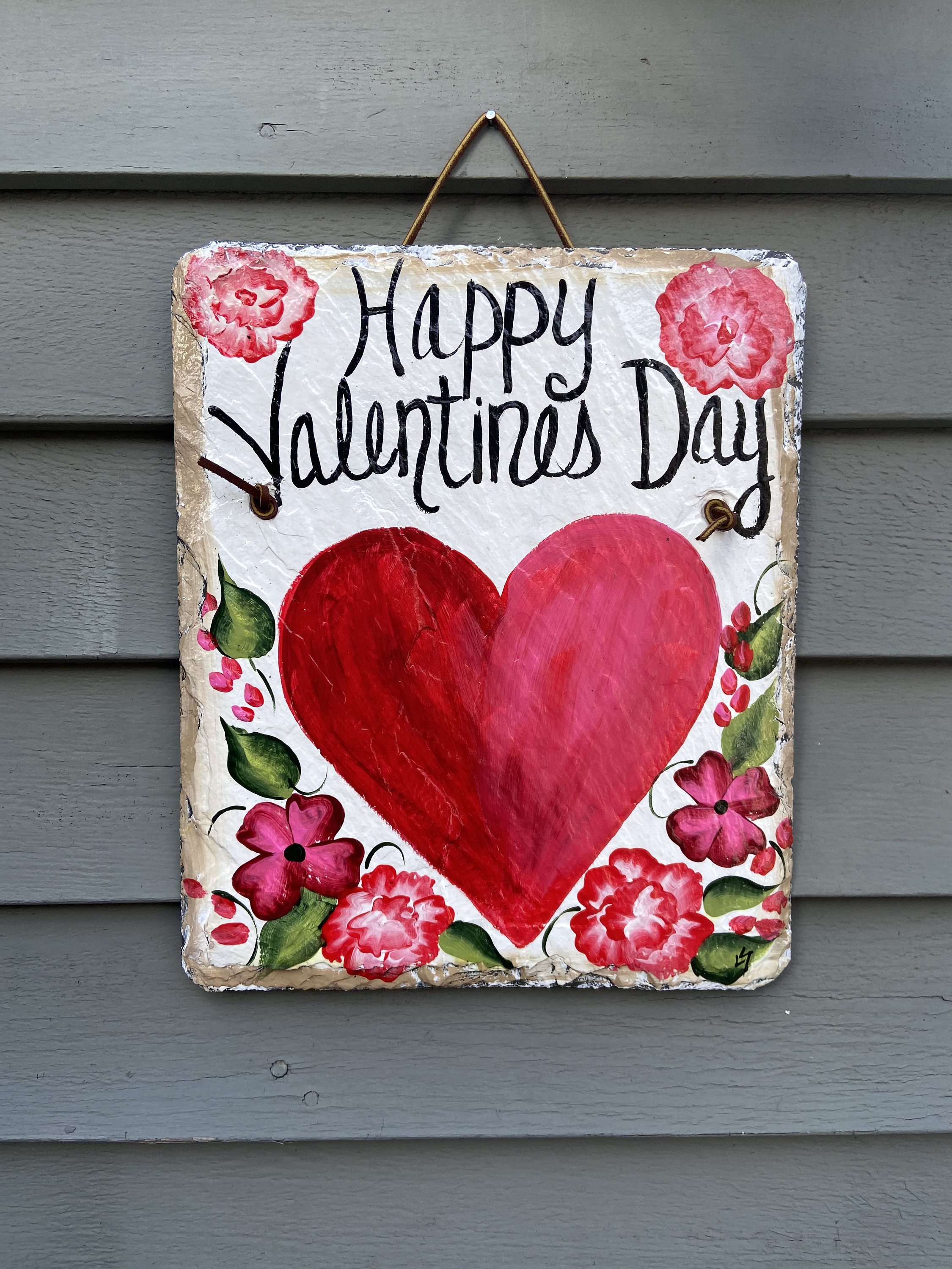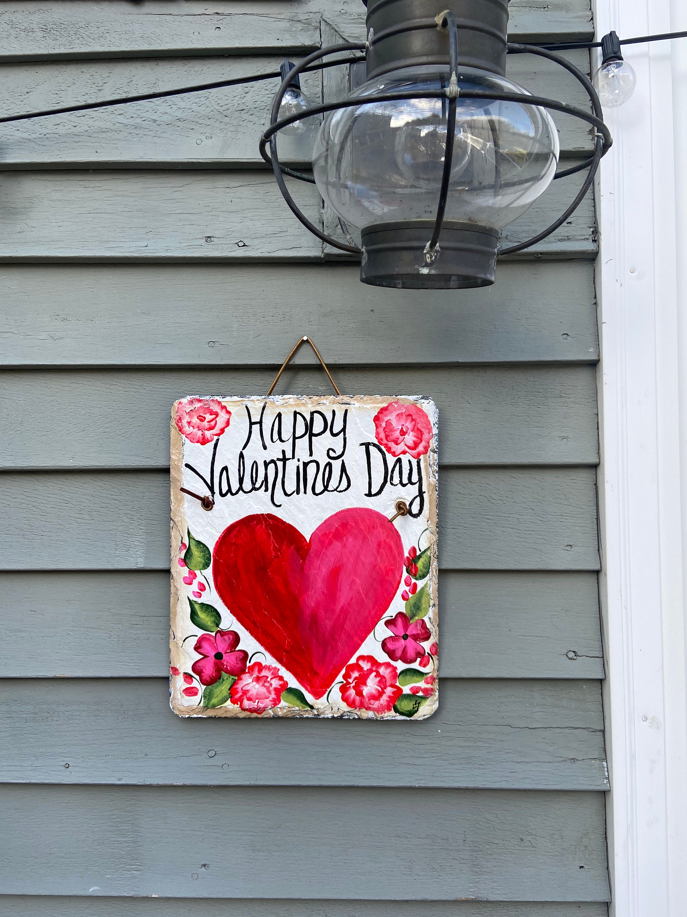 Valentine's Day Slate Heart door hanging, Front door decor, Hand painted slate plaque, 10x12 recycled roof slate, Welcome sign