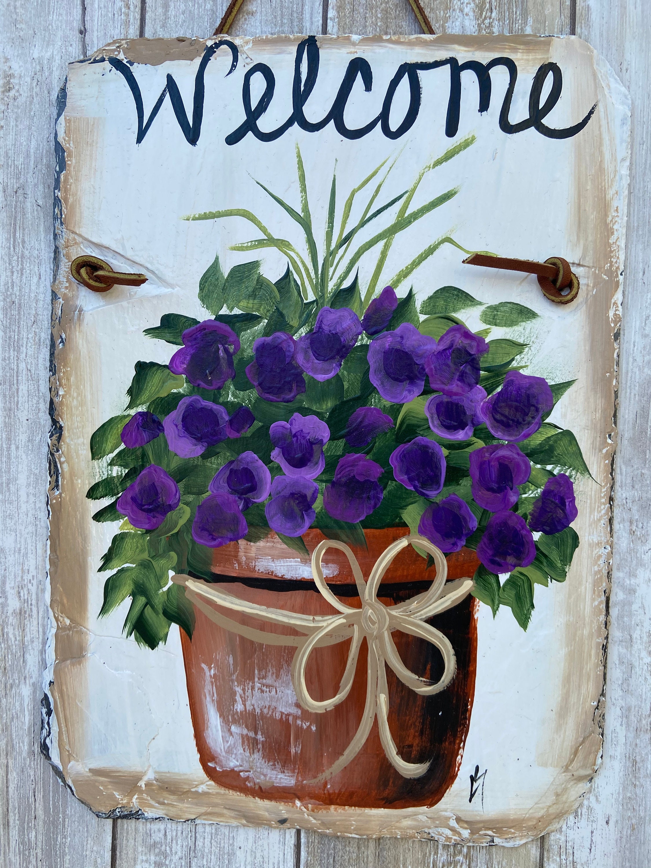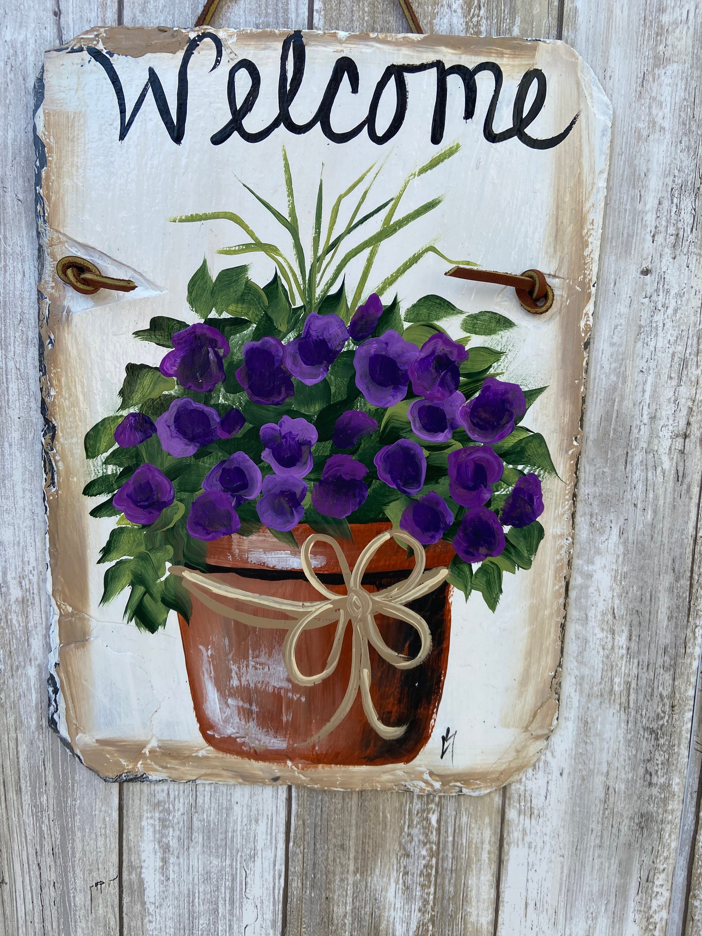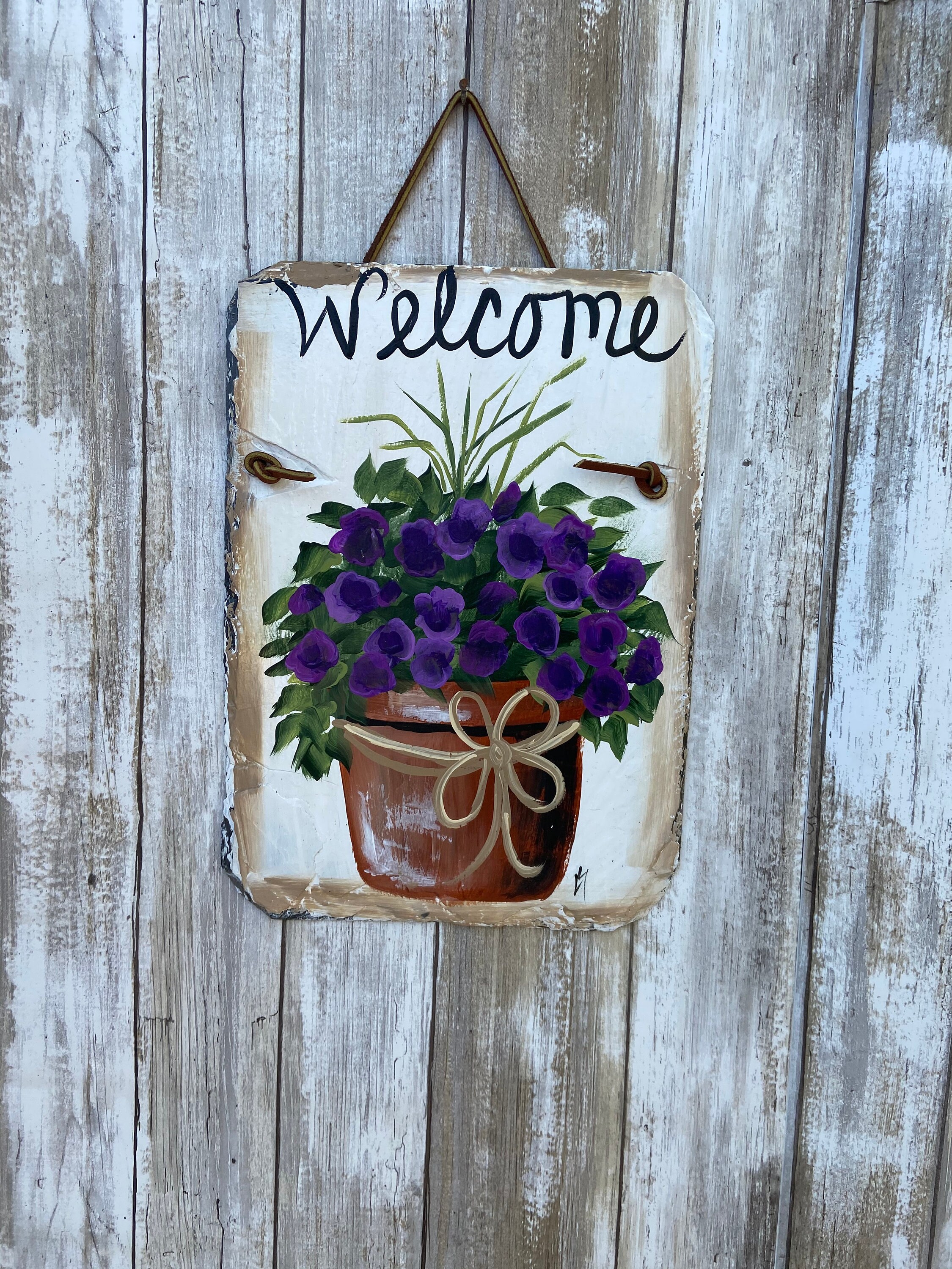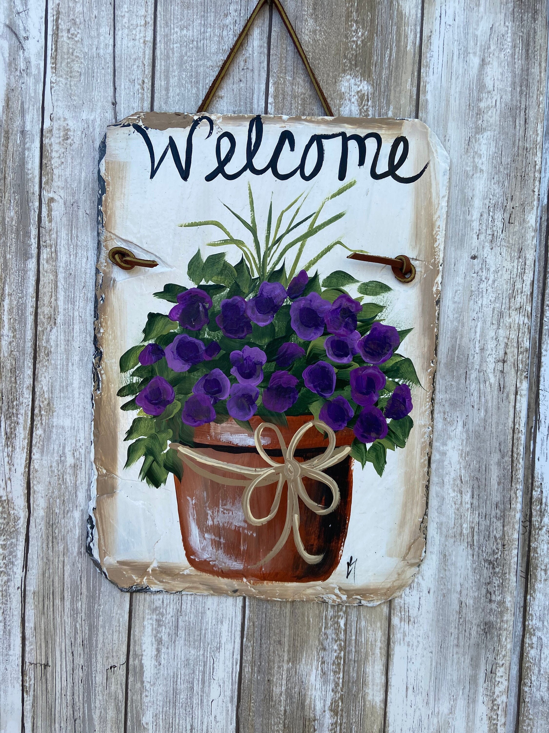 Hand Painted Slate Welcome Sign, Welcome sign, Garden decoration, outdoor decor, deck decor, Door hanging, Door decor, painted slate sign